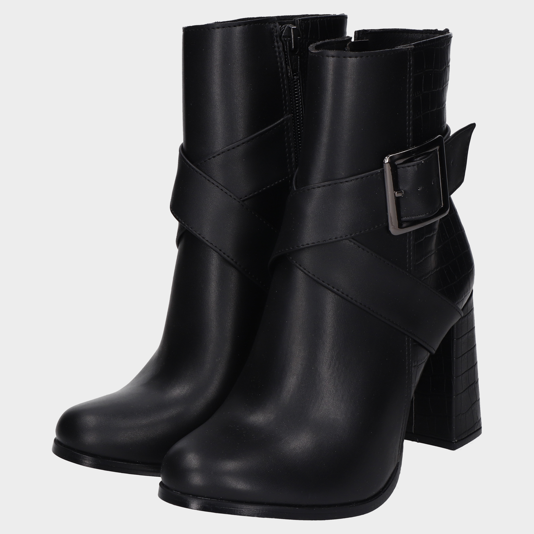 Bota Dama 09-R 11050 Negro Botines Negros Con Hebilla Y Tacón Texturizado Estilo Que Impone....