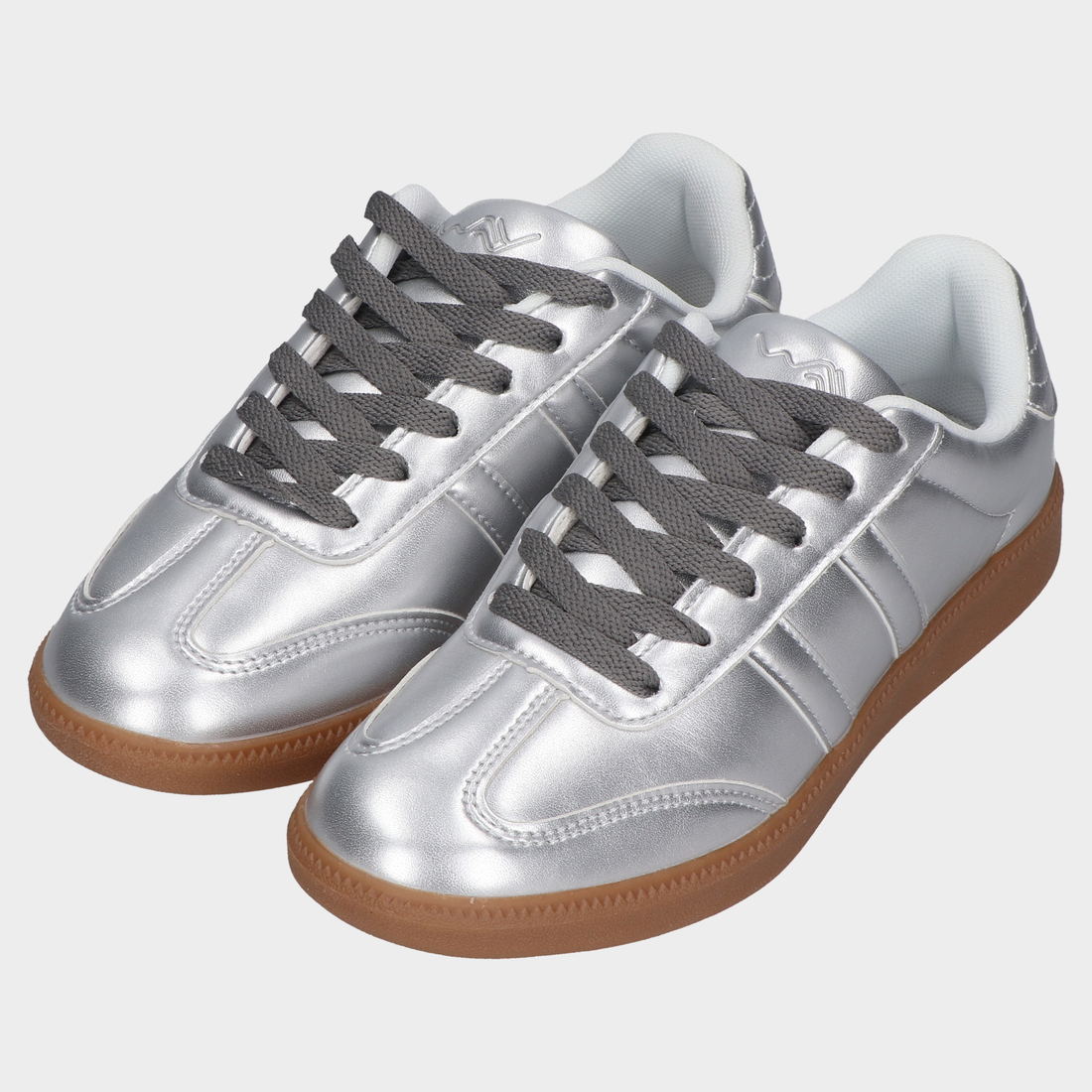 Tenis Casual Dama 102-Bp-D2214320 Plata ?? Tenis Plata Metálico Con Suela Café Y Diseño Clásico...