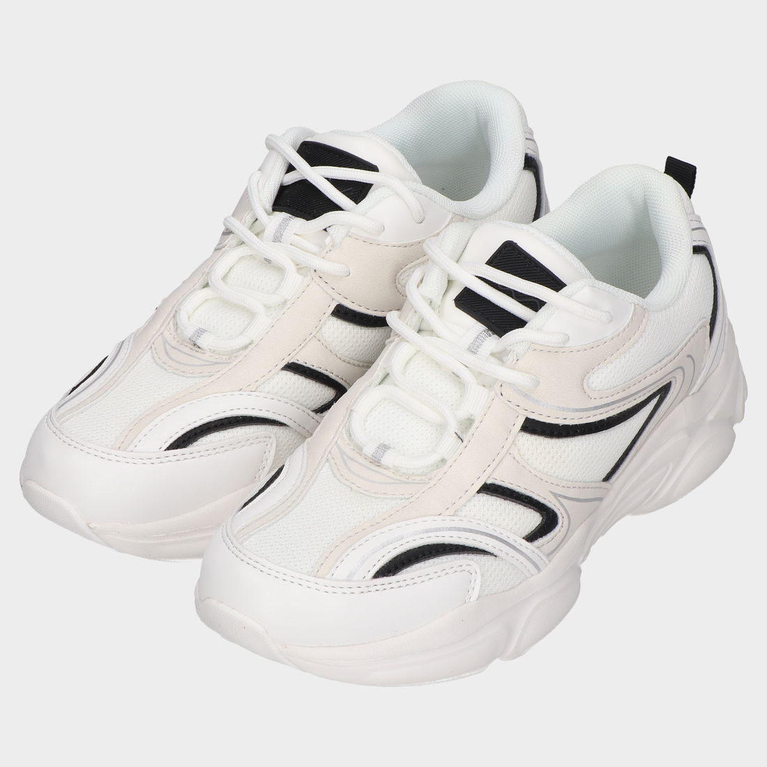 Tenis Deportivo Dama 102-Bp-D2217660 Blanco ? Tenis Blancos Con Detalles Negros Y Suela Chunky Diseño...