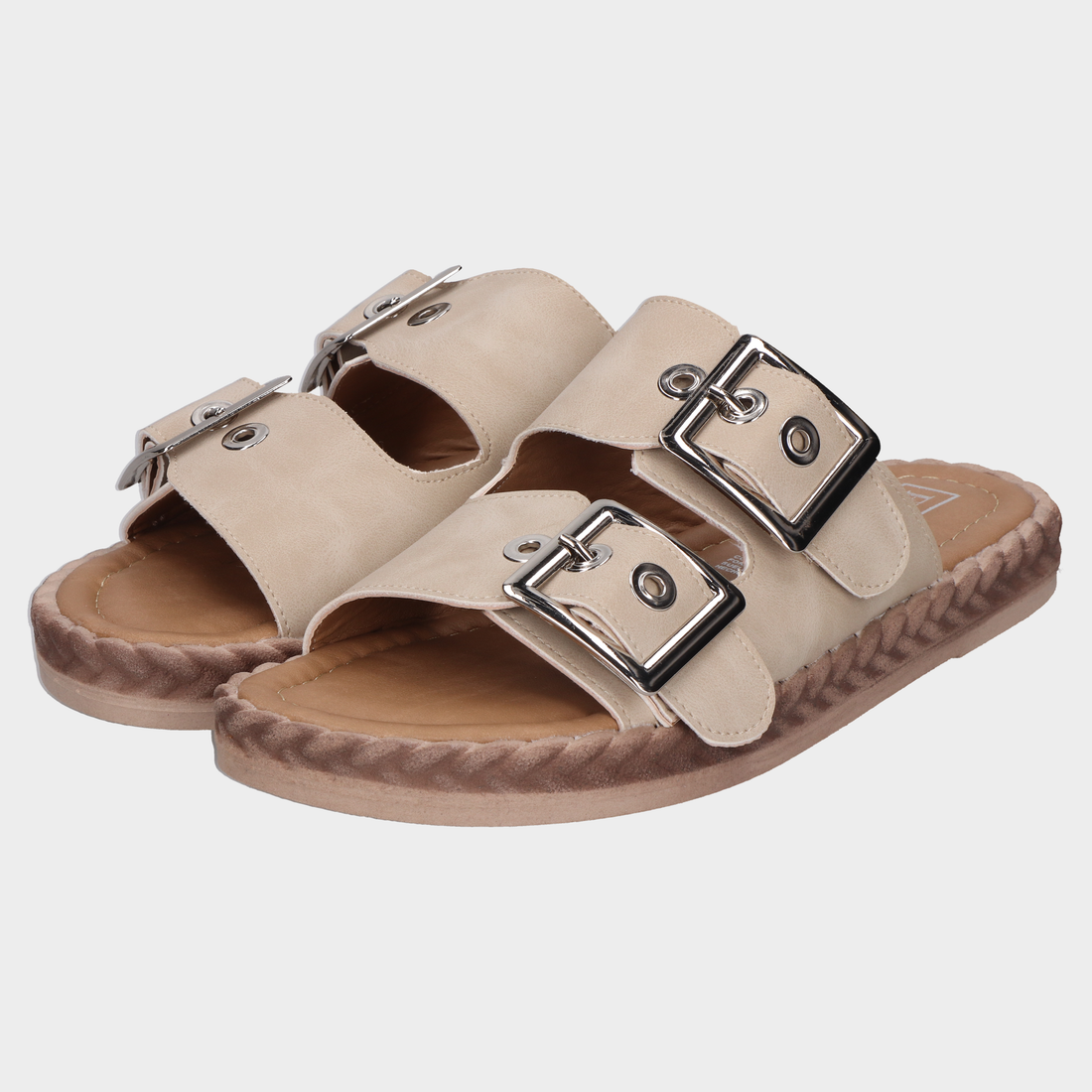Sandalia Dama 41-Fg420 Lino Sandalias Beige Con Hebillas Metálicas Y Suela Trenzada Comodidad Con Estilo...