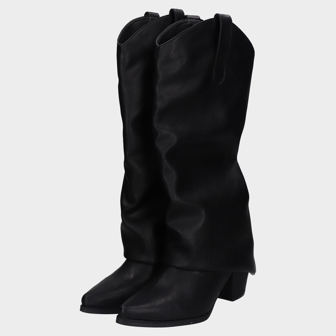Bota Dama 41-Fg6020 Negro Botas Negras Altas Con Tacón Bloque Y Diseño Slouchy Estilo Audaz...