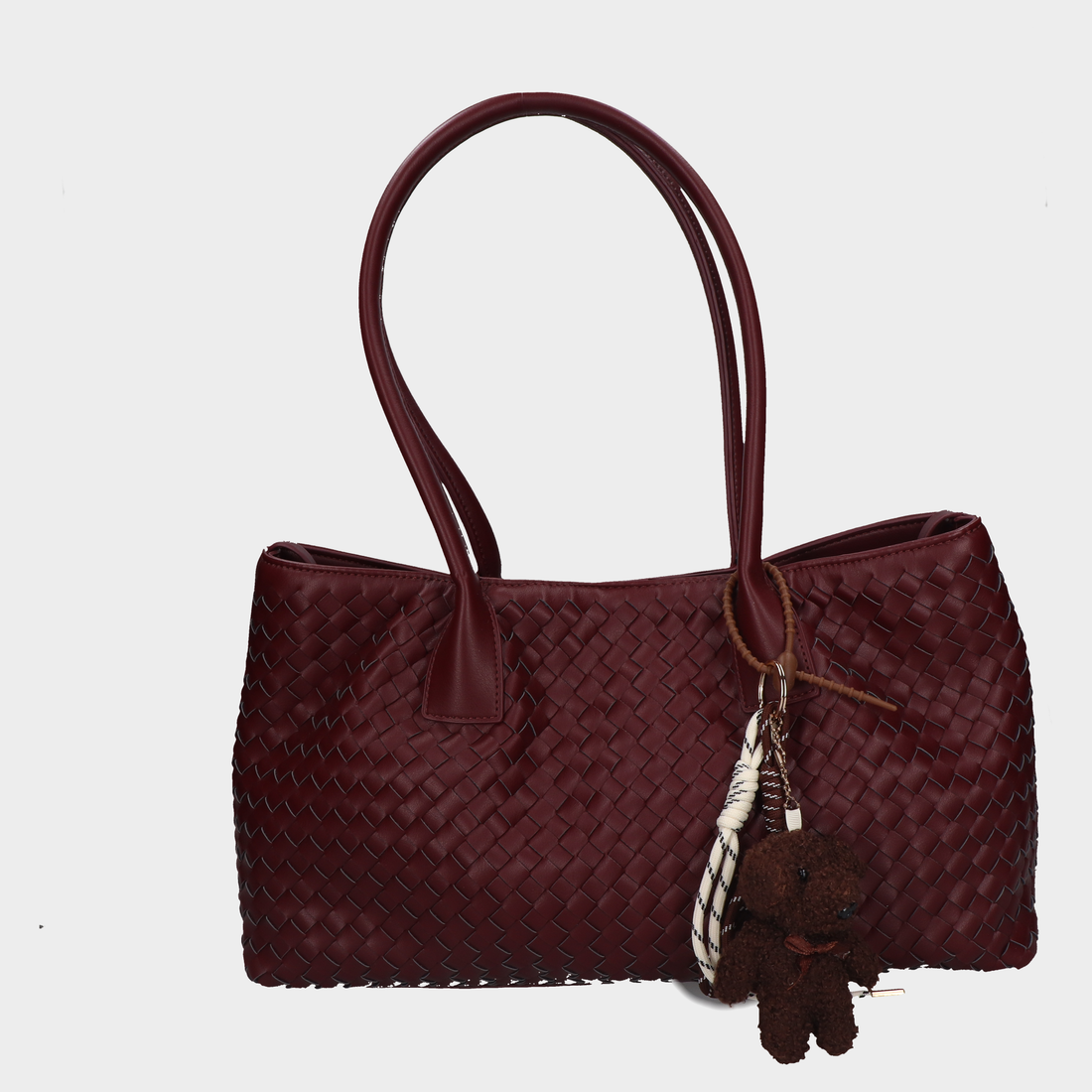 Bolso De Mano Dama 10-B31513-T Wn ?? Bolsa Shopper Tejida Burdeos Con Adorno De Osito...