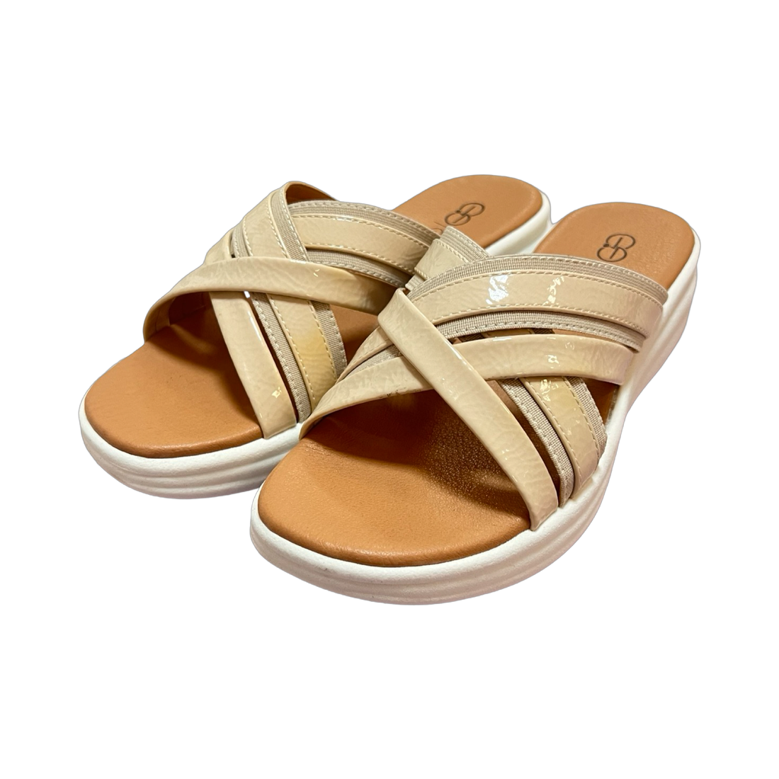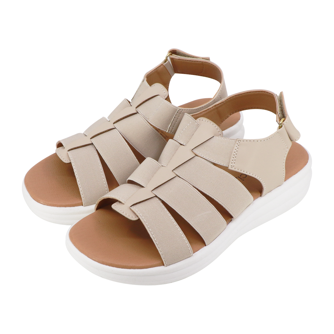 Sandalia Plataforma Dama 14-1710 Cha/Beig Lindas Sandalias En Color Beige, Diseño En Tiras Cruzada Tipo...