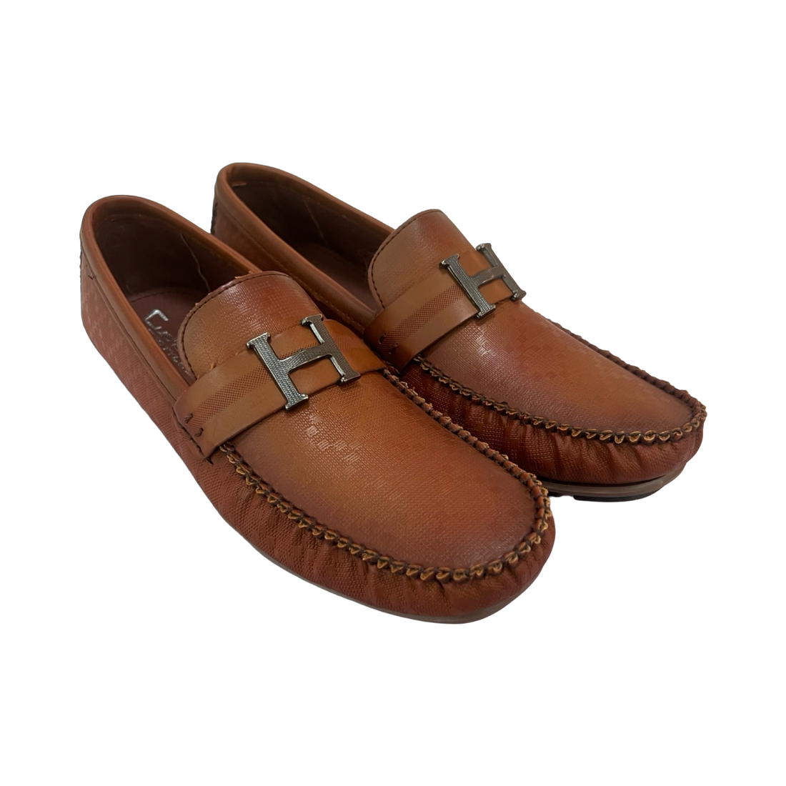 Mocasin Caballero 11-Cs7707 Miel Mocasín Color Café, Diseño Al Frente Con Una H En Metal...