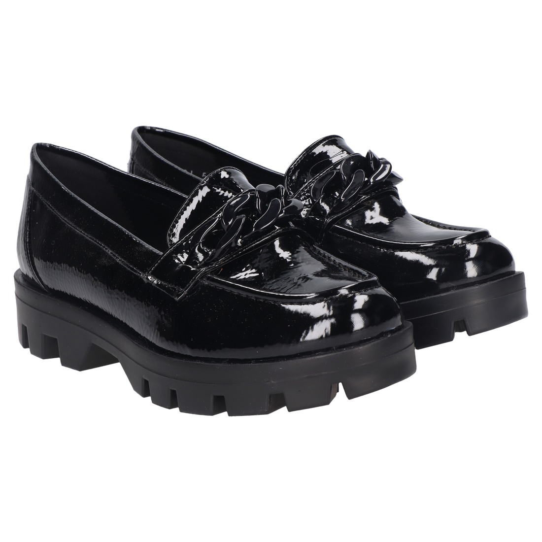 Mocasin Dama 05-3821 Ch/Negro Un Calzado De Piso, Tipo Choclo En Color Charol Negro, Con...