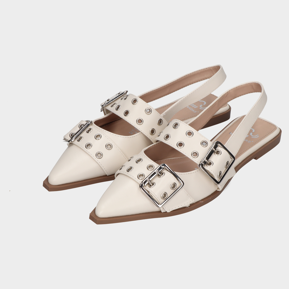 Balerina Dama 30-N69219 Latte ? Slingbacks Off-White Con Hebillas Plateadas Y Punta Fina Diseño Contemporáneo...