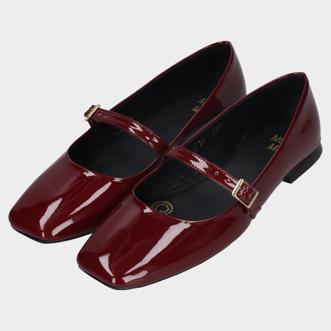 Balerina Dama 79-280 Ch.Vino ?? Mary Janes Burdeos Con Punta Cuadrada Y Hebilla Dorada Diseño...