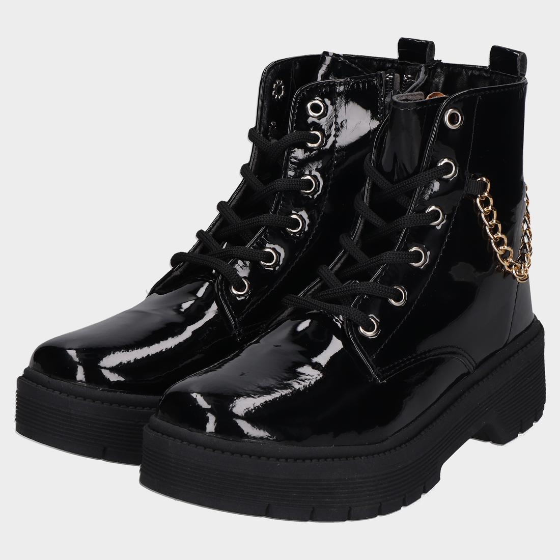 Botin Dama 65-Muss-870 Chngo Botas Combat Negras Con Cadena Dorada Y Acabado Brillante Actitud Que...