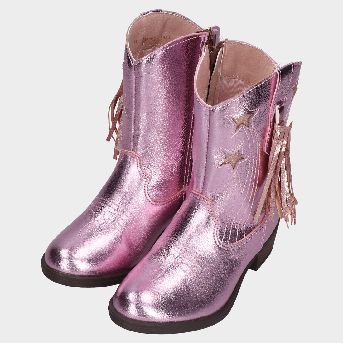 Bota Vaquera Dama 102-J-251082 Pink ?? Botas Vaqueras Infantiles Rosa Metálico Con Estrellas Y Flecos...