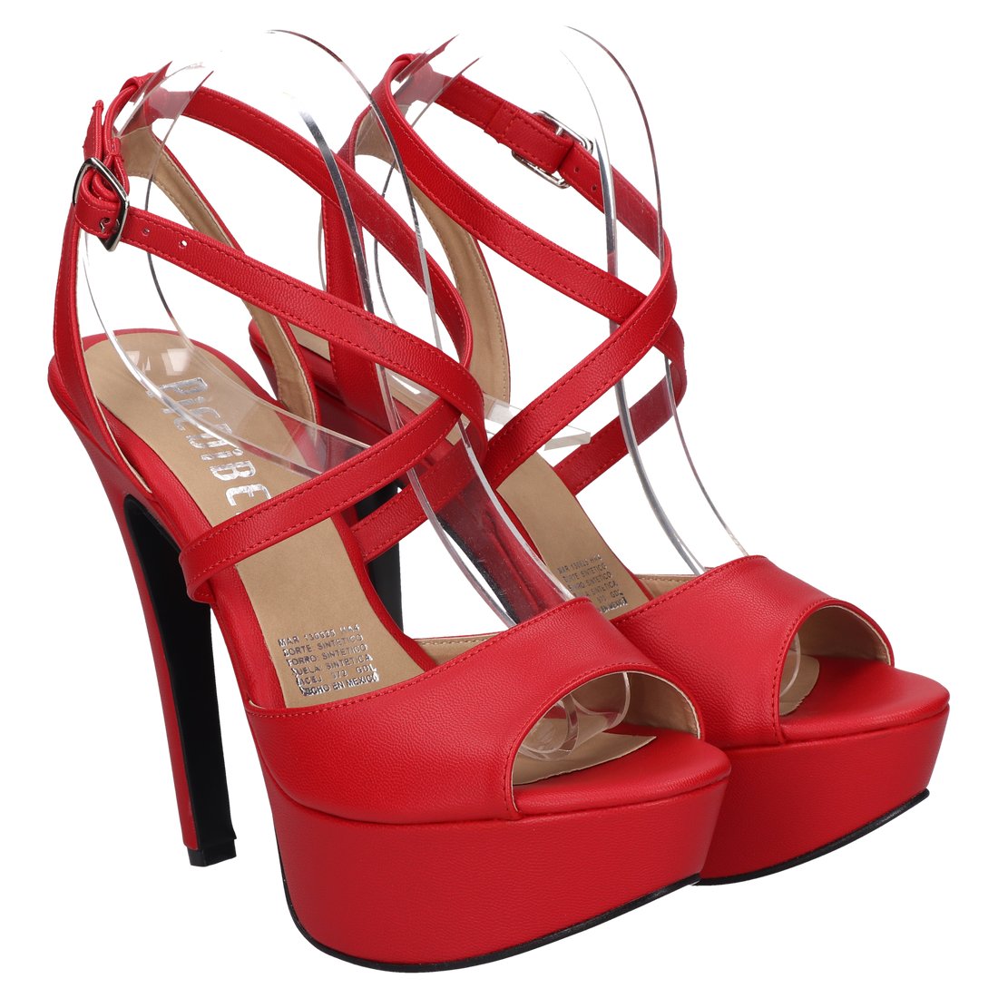 Sandalia De Tacon Dama 111-46608Cabsal Salsa Hermosos Tacones En Color Rojo, Diseño En Cinta Cruzada...