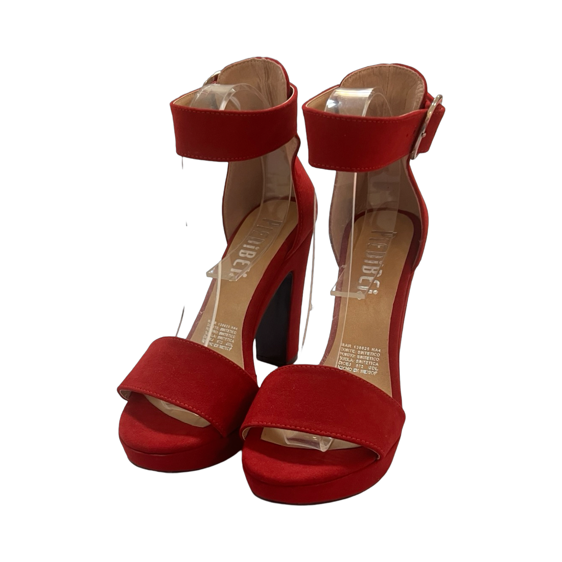 Sandalia De Tacon Dama 111-4707Drzroj Rojo Hermosas Sandalias En Color Rojo Aterciopelado, Con Tacón Alto...