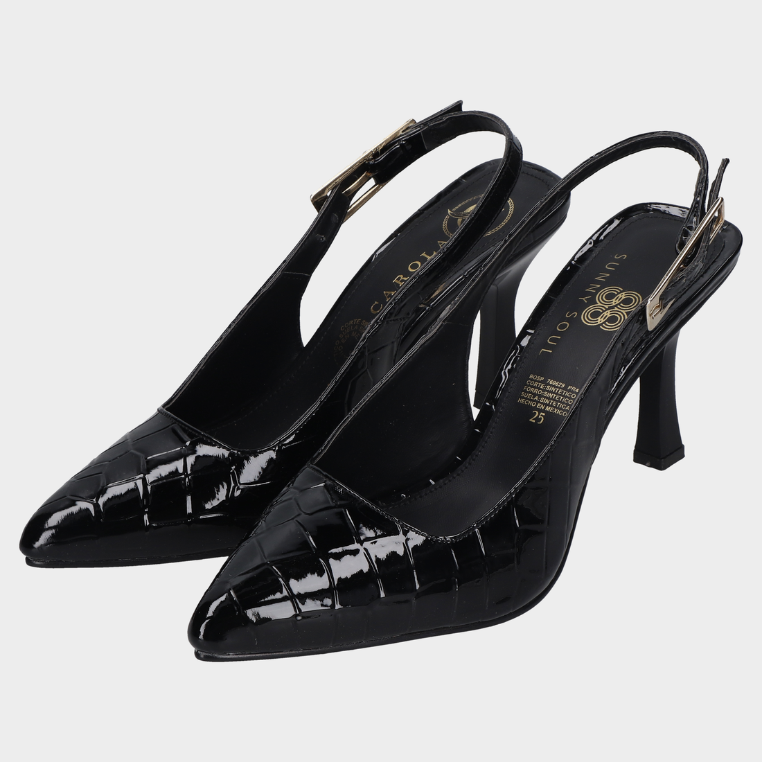 Sandalia Tacon Dama 118-C-760 Conegro ?? Slingbacks Negros Con Textura Cocodrilo Y Tacón Medio Diseño...