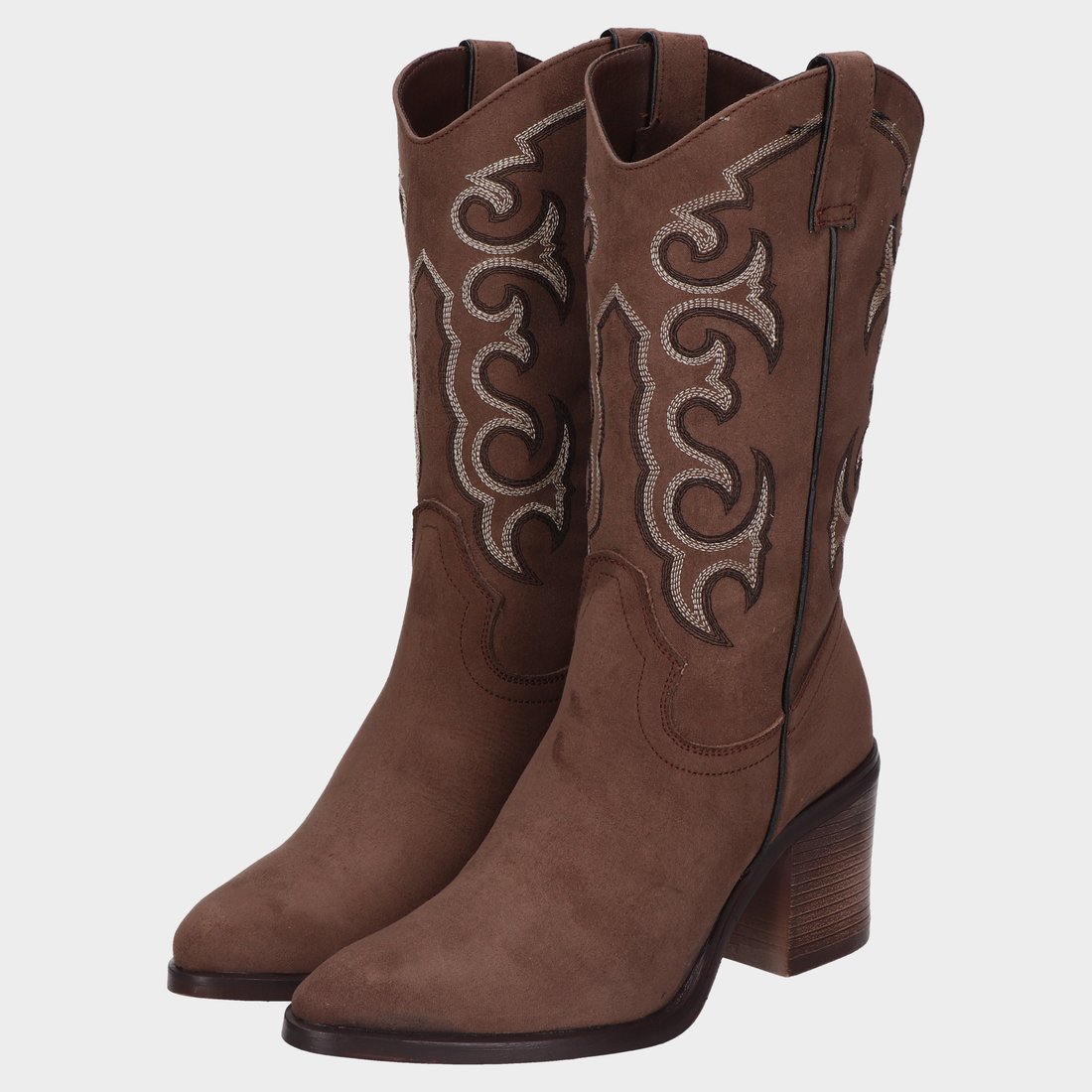 Bota Dama 50-B748601 Cafe Botas Cowboy Café Con Bordado Tradicional Y Tacón Apilado Autenticidad Que...