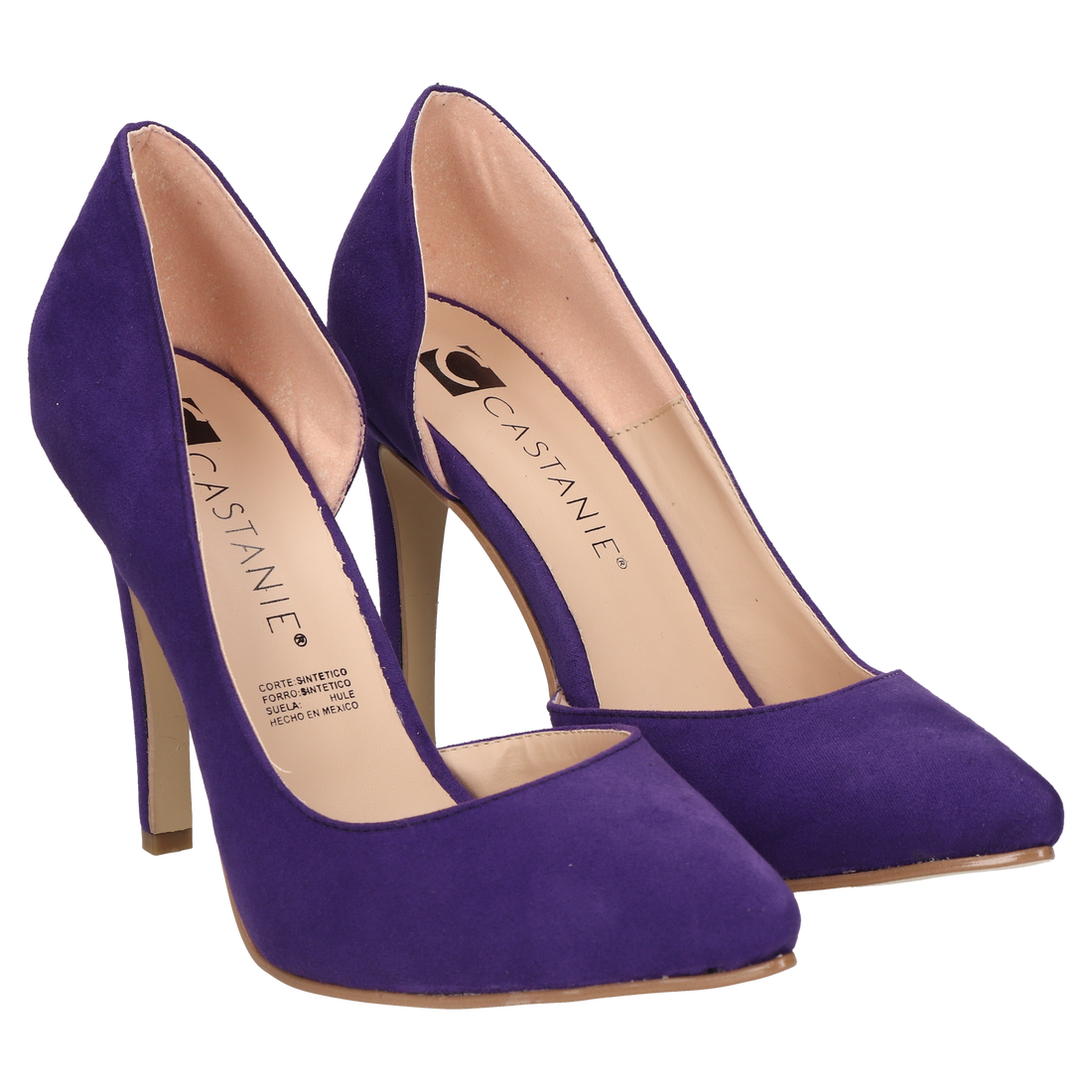 Zapatilla Dama 15-M13716 Morado Hermosos Tacones En Color Morado Tipo Ante, Tacón Alto Delgado Con...