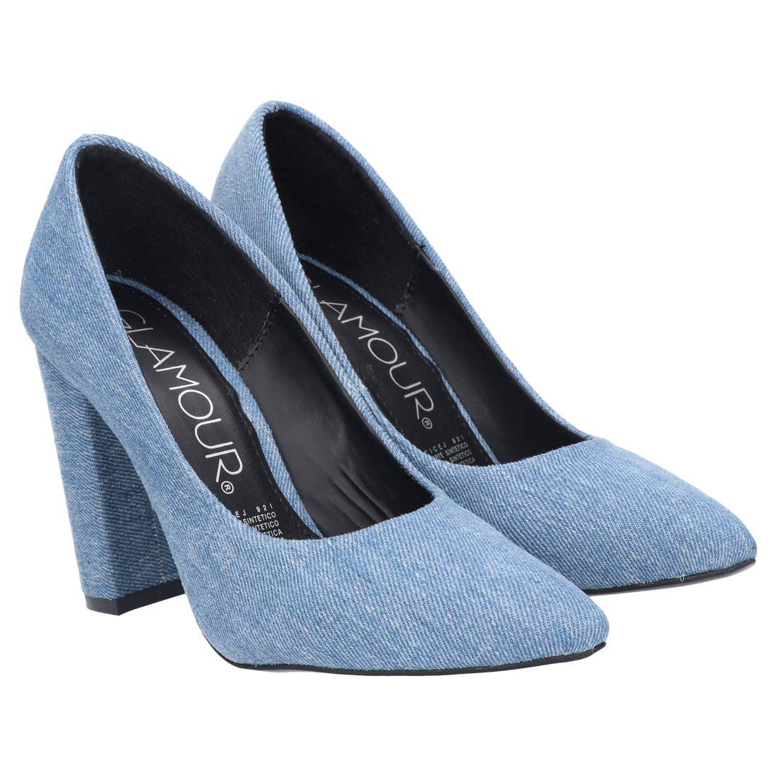 Zapatilla Dama 75-201-7 Mezclilla Hermosos Tacones En Color Mezclilla Con Tacón Alto Ancho. Ideal Para...