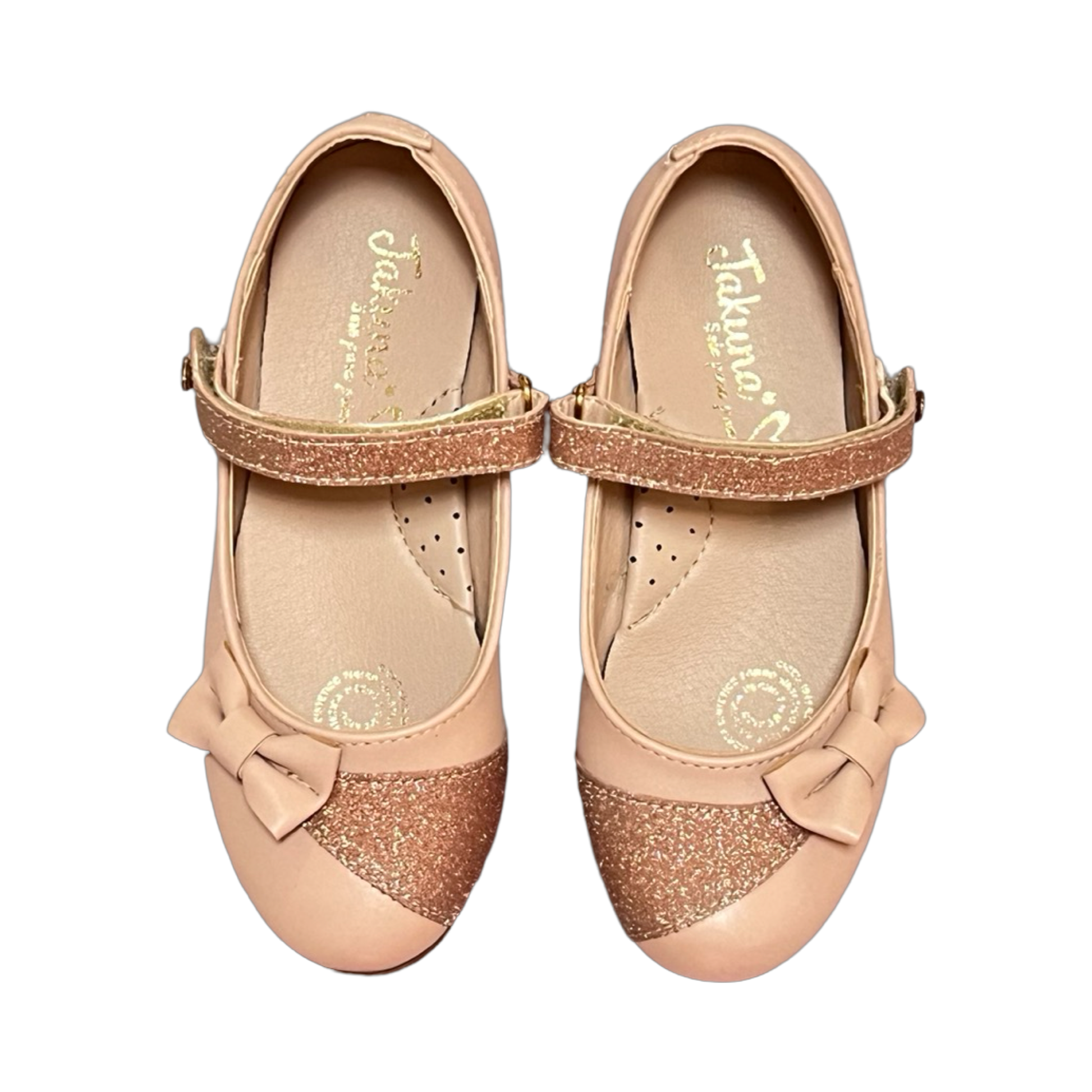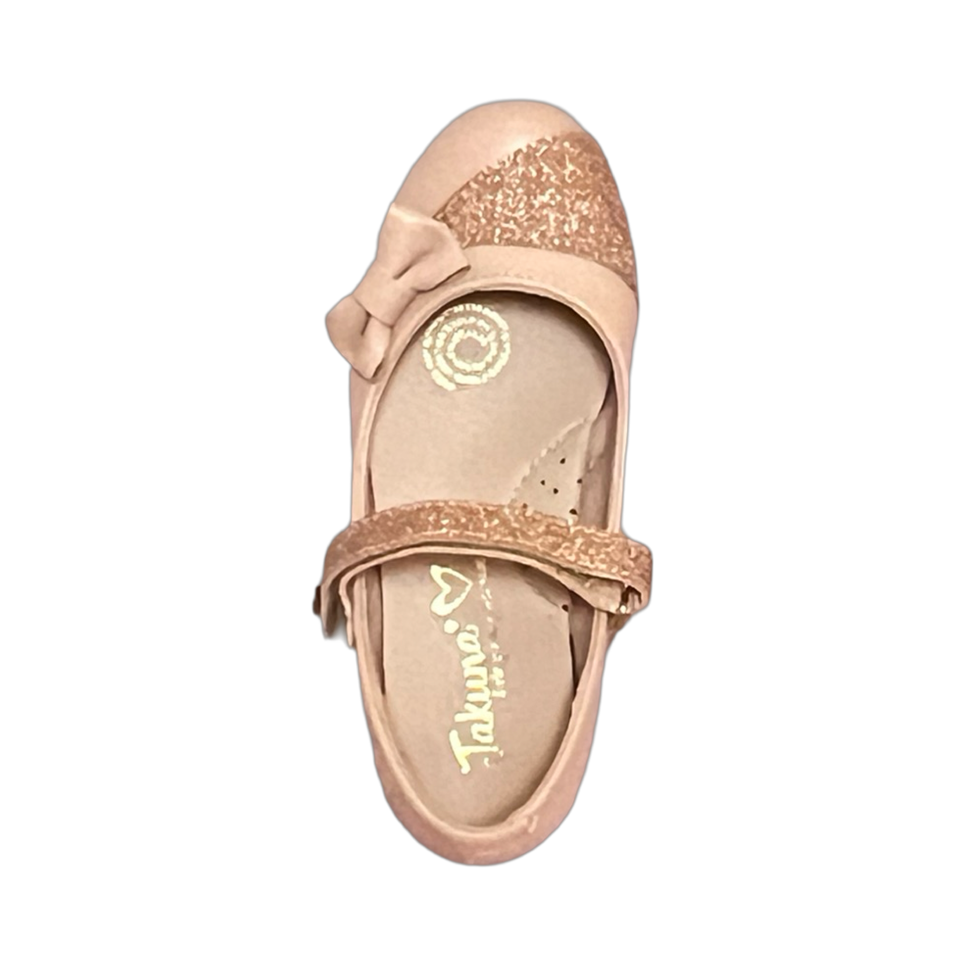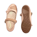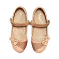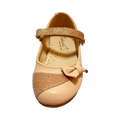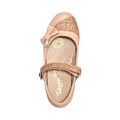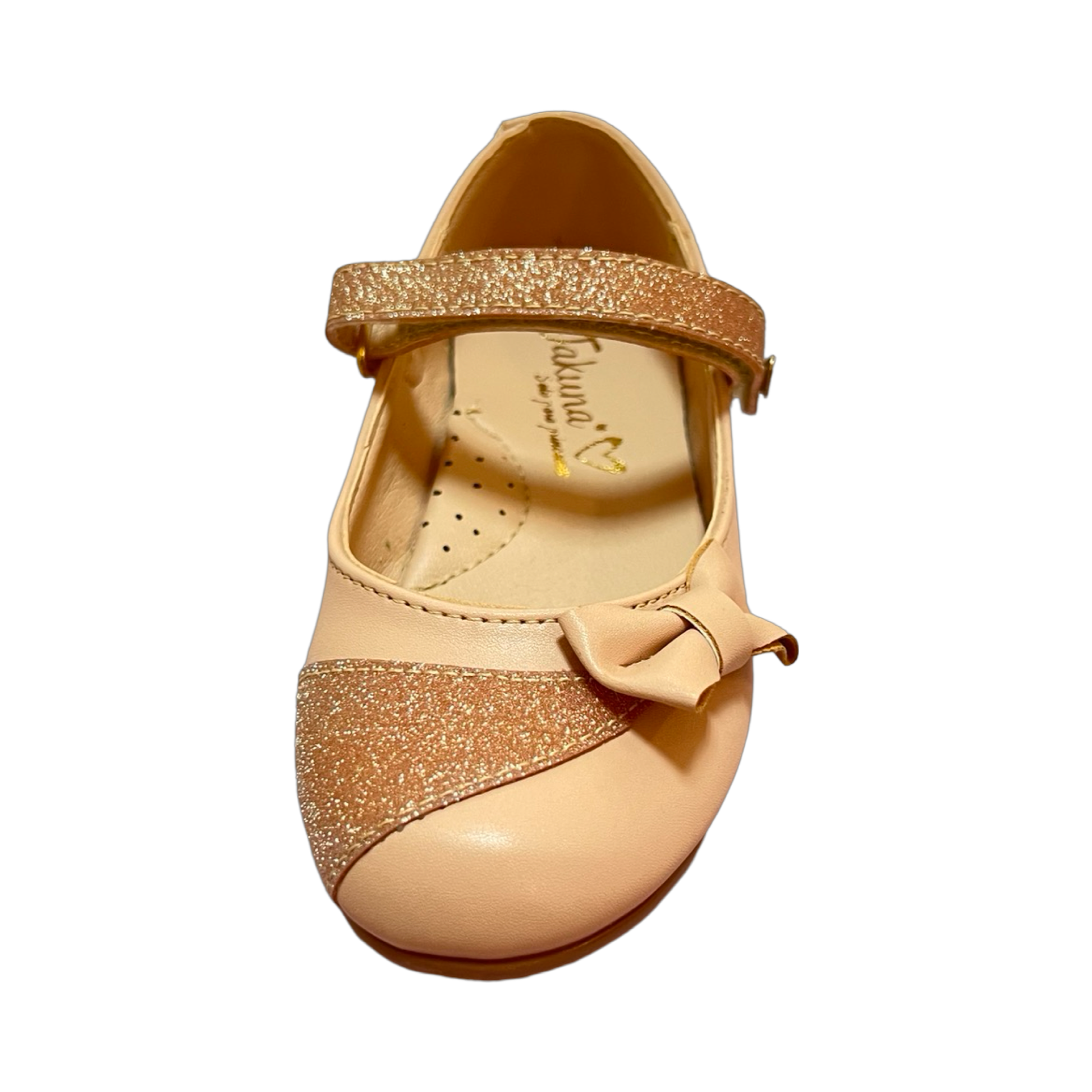 Balerina Infantil Niña 102-J-24812 Maquilla Calzado De Vestir, Tipo Flats En Color Nude Con Detalles Metálicos Y Adorno Lateral En Moño, Con Ajuste En Velcro. Ideal Para Un Evento Formal. Marca Jakuna.