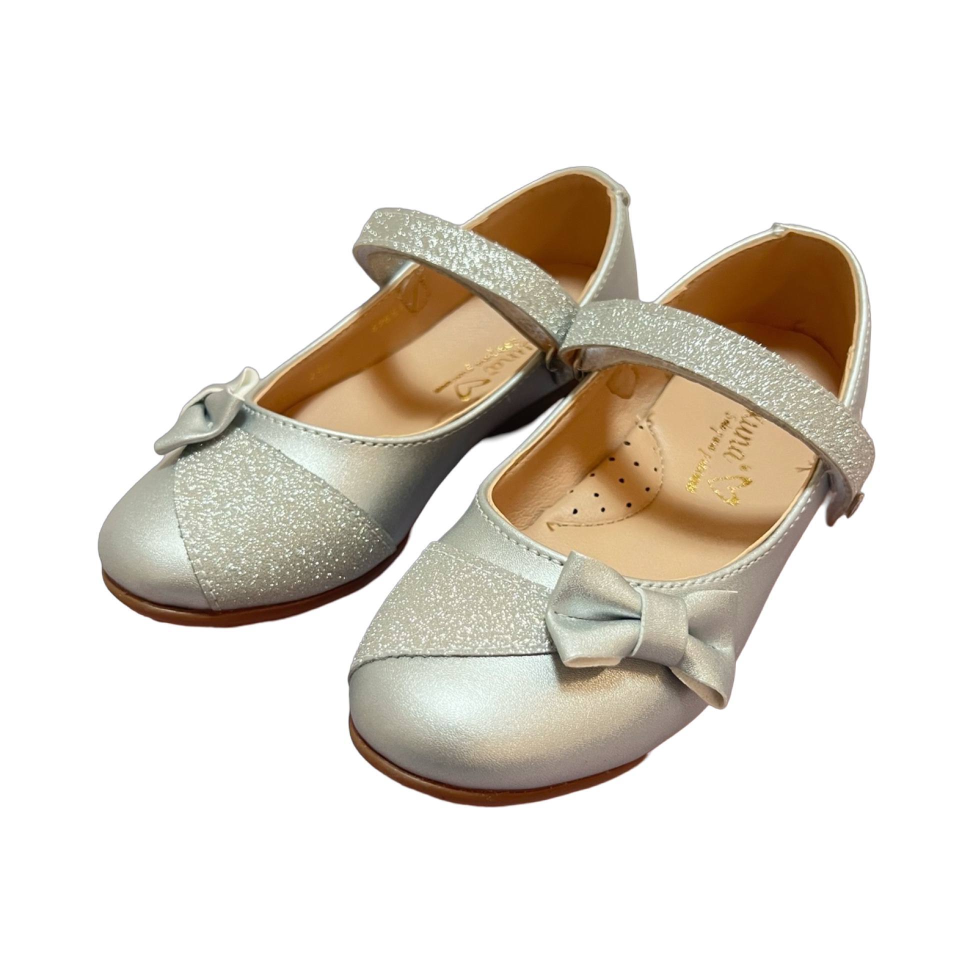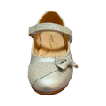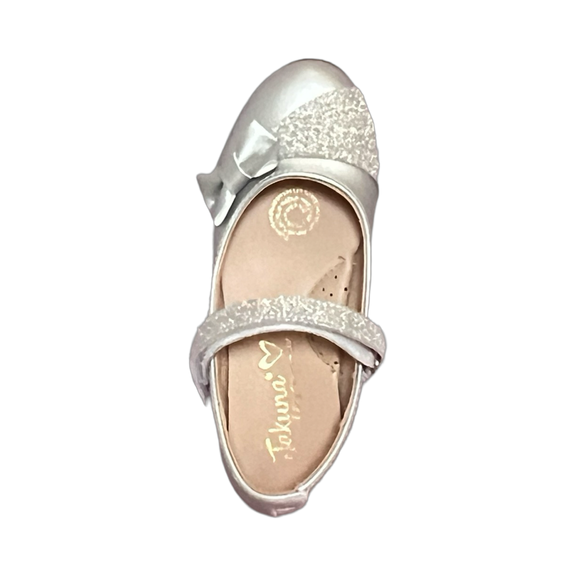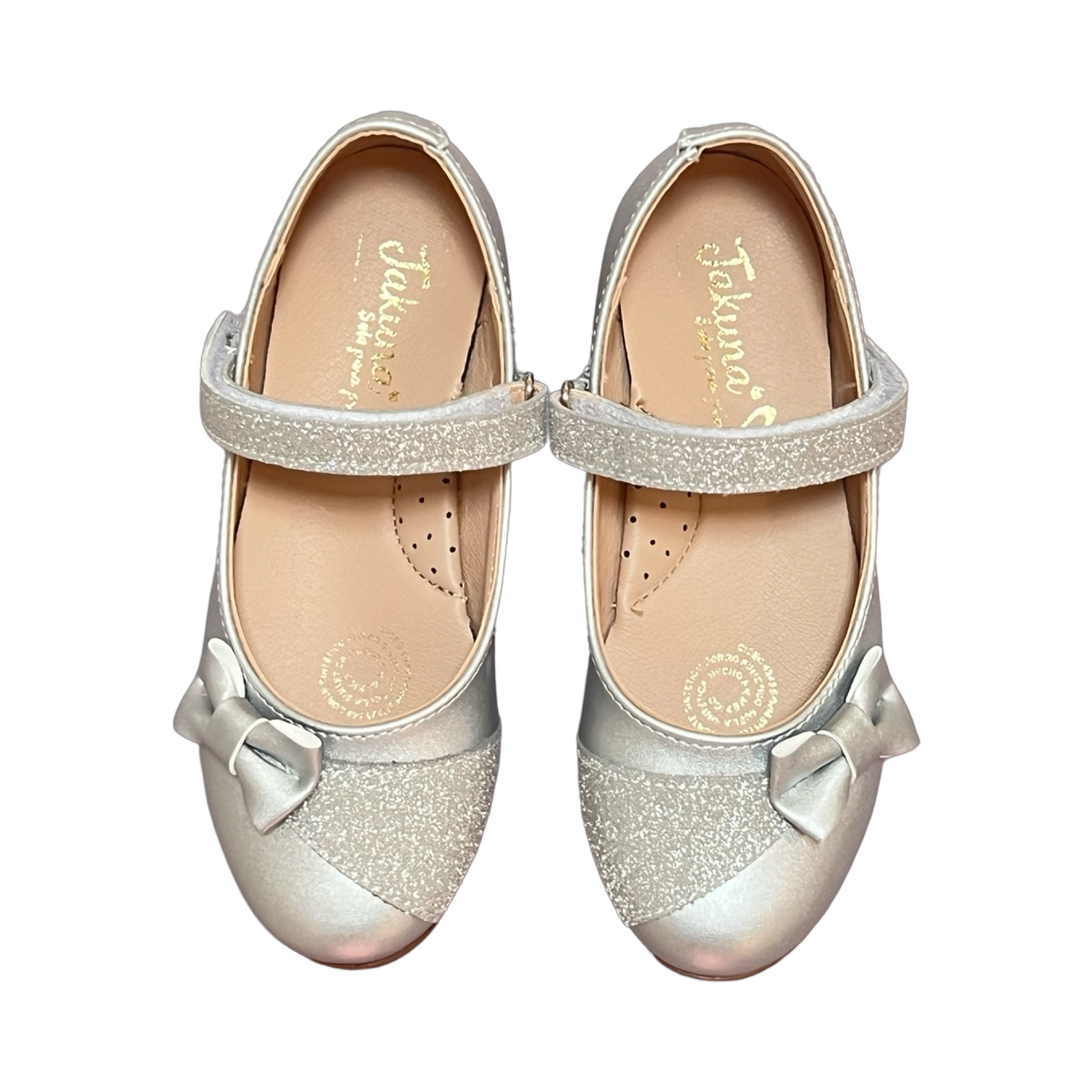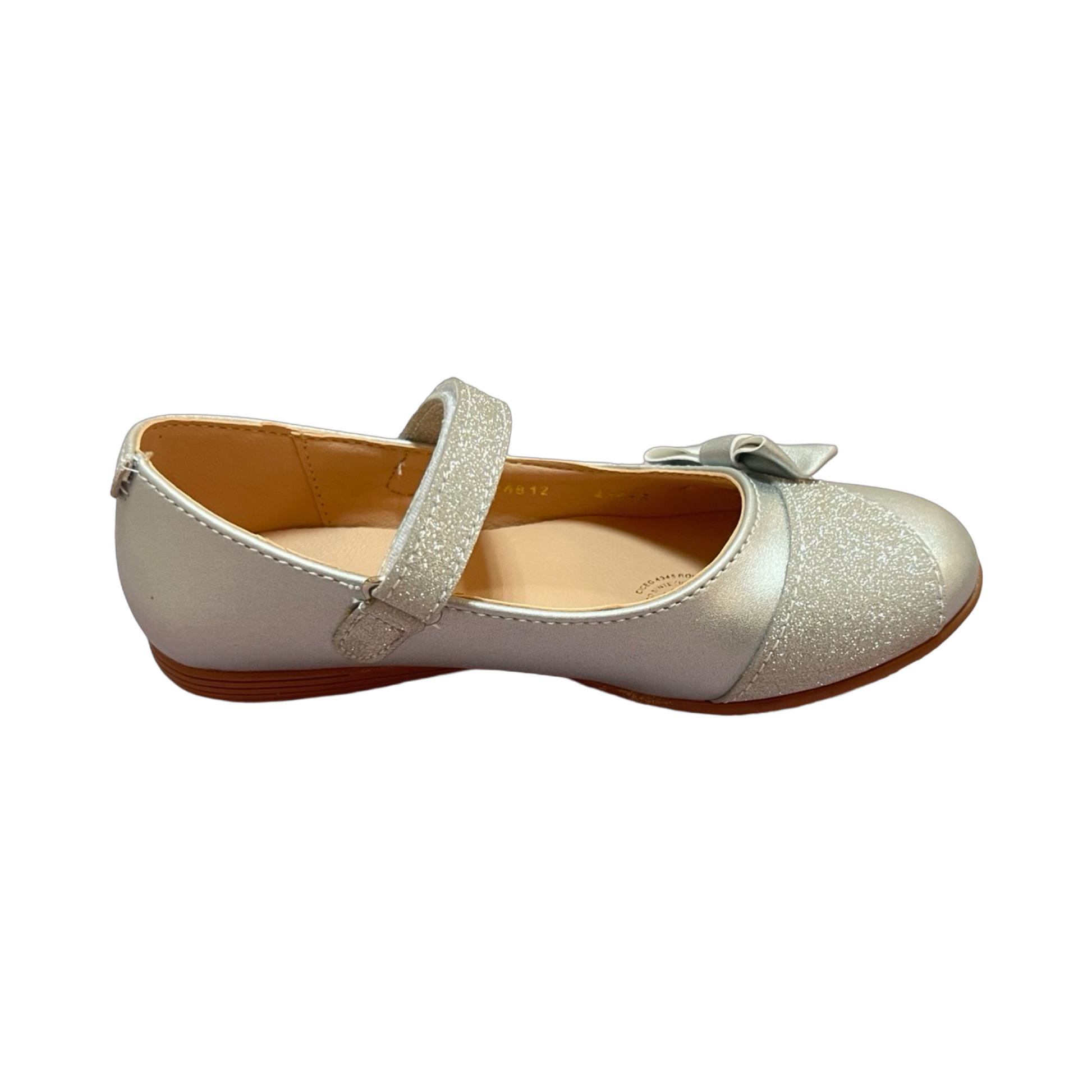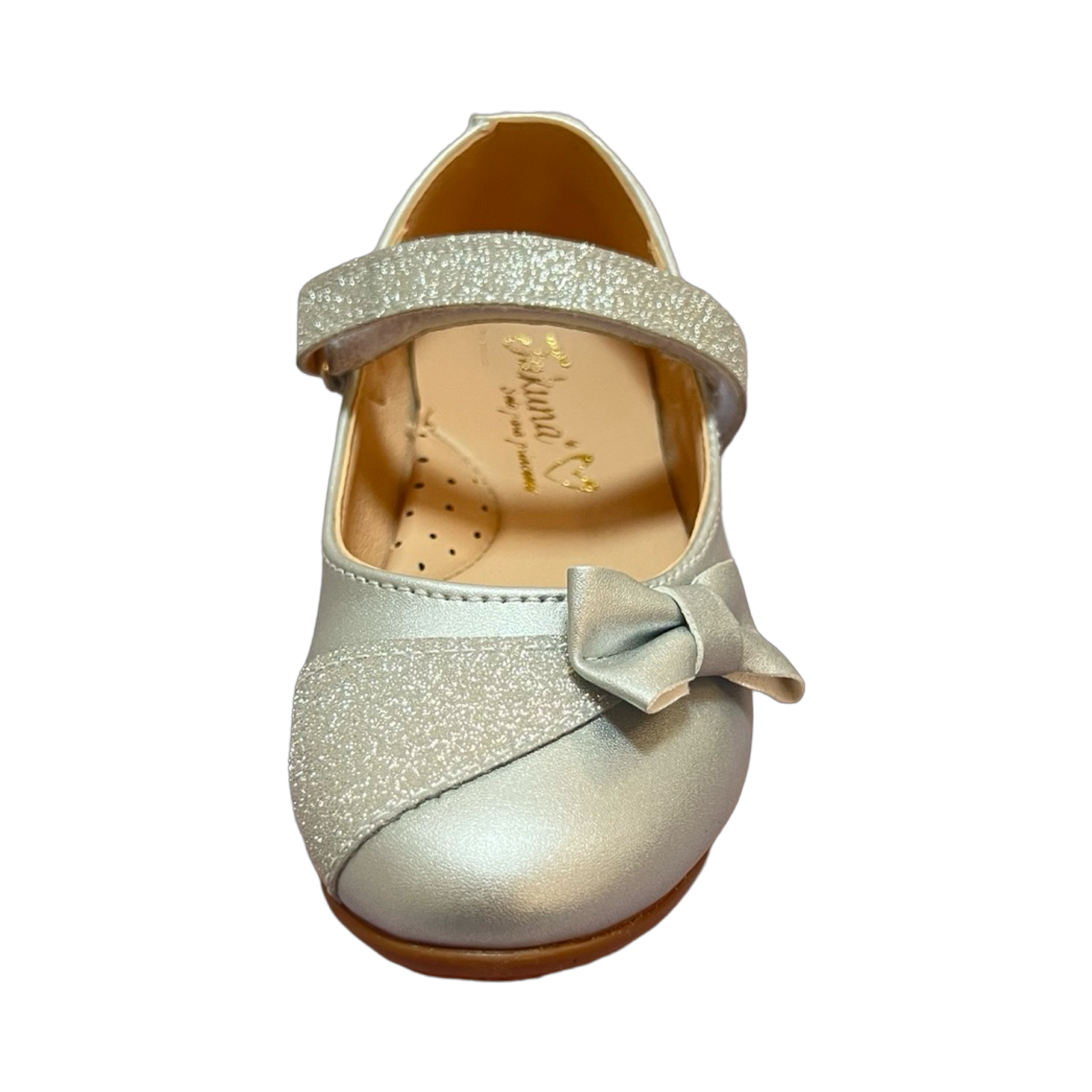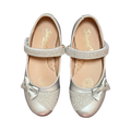 Balerina Infantil Niña 102-J-24812 Plata Calzado De Vestir, Tipo Flats En Color Plata Con Detalles Metálicos Y Adorno Lateral En Moño, Con Ajuste En Velcro. Ideal Para Un Evento Formal. Marca Jakuna.