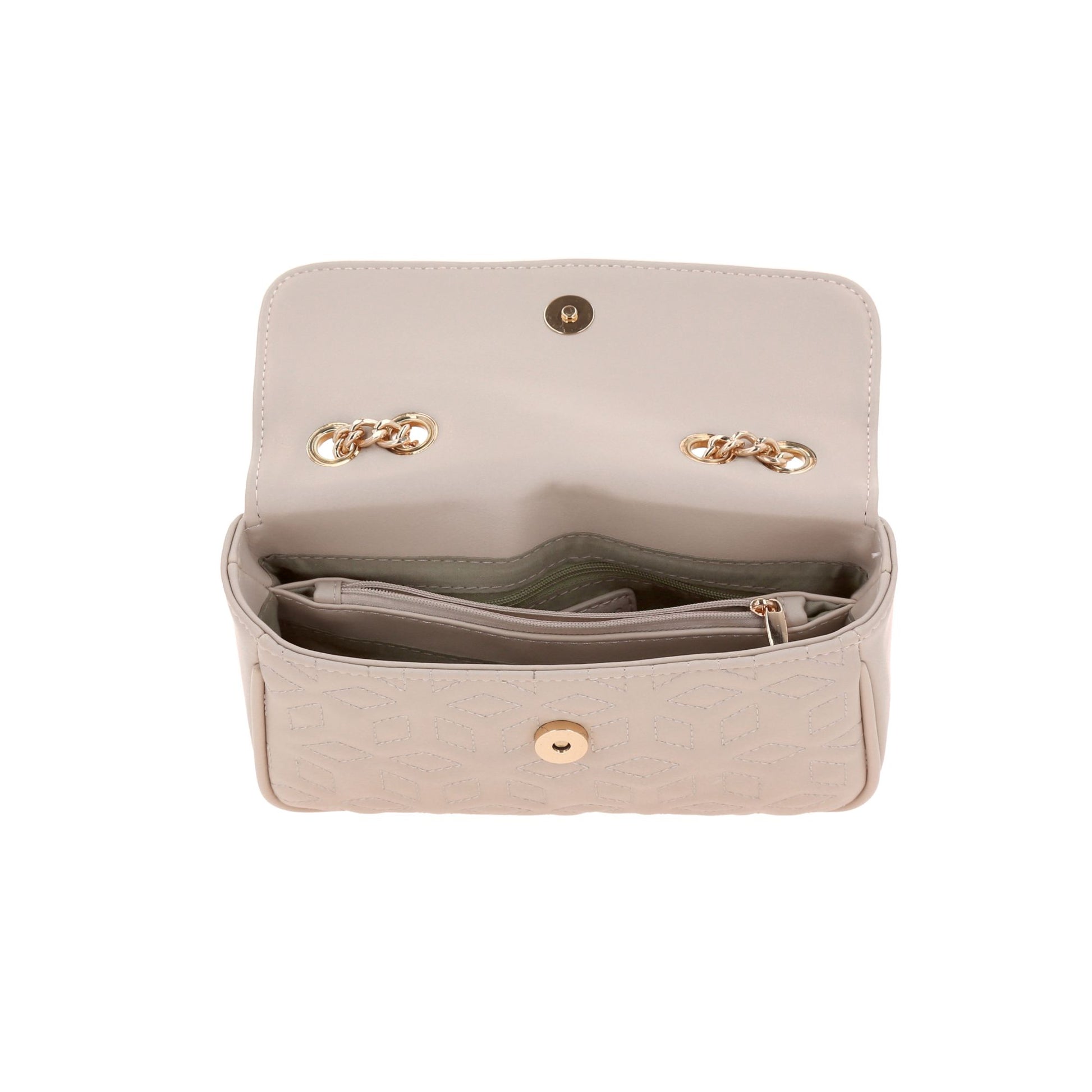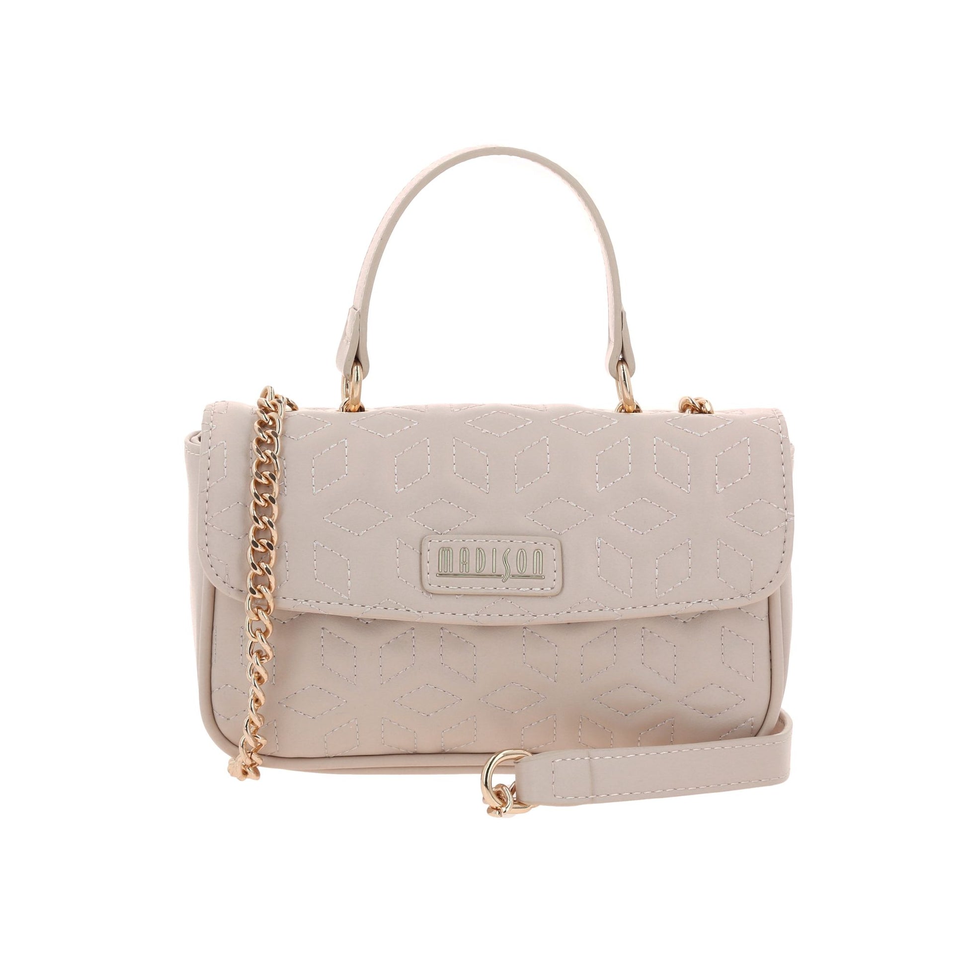 Bolsa Dama 109-Ch-Md25101-E Beige ?? Bolso Beige Con Diseño Acolchado Y Detalles Dorados Diseño Sofisticado Con Acento Moderno. Este Bolso Beige Con Patrón Acolchado Geométrico Combina Asa Superior, Correa Con Cadena Dorada Y Solapa Frontal Con Etiqueta Metálica De Marca. Su Estética Elegante Y Compacta Lo Convierte En Pieza Versátil Para Atuendos Casuales Chic, Looks Urbanos O Conjuntos Semi-Formales Con Estilo Femenino Y Contemporáneo. Un Accesorio Que Transmite Lujo Discreto, Frescura Y Personalidad Vibrante. Descubre Más Modelos Que Celebran El Diseño Premium Con Acabados Distintivos Y Funcionalidad Diaria.