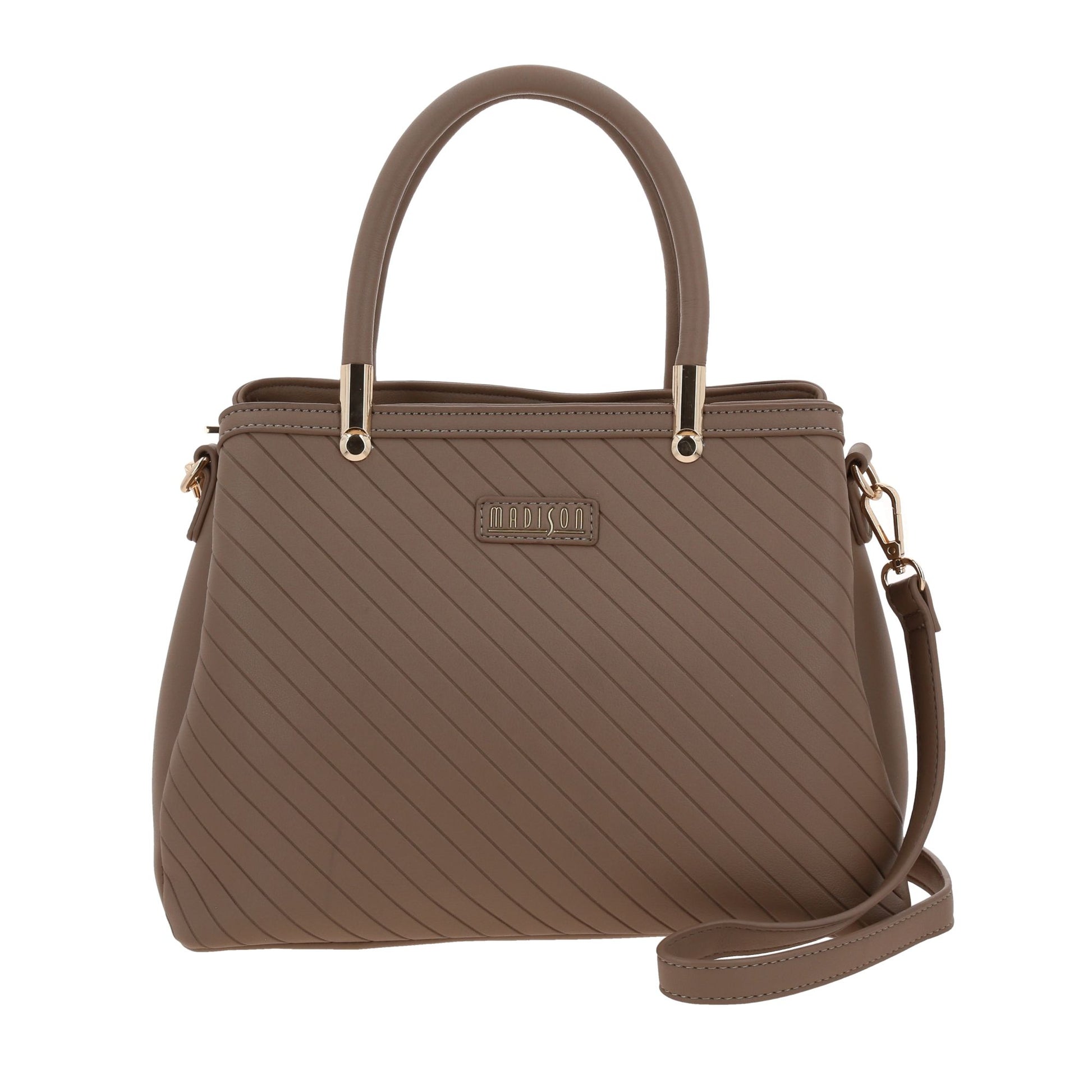 Bolsa Dama 109-Ch-Md25103-B Cafe ?? Bolso Taupe Con Textura Diagonal Y Detalles Dorados Diseño Sofisticado Con Acento Moderno. Este Bolso Taupe Con Líneas Diagonales Texturizadas Combina Asas Redondeadas, Correa Desmontable Para Mayor Versatilidad Y Herrajes Dorados Que Aportan Un Toque Elegante. La Placa Metálica Frontal Con El Nombre De La Marca Refuerza Su Carácter Premium. Su Estética Estructurada Lo Convierte En Pieza Versátil Para Atuendos Casuales Chic, Looks Urbanos O Conjuntos Semi-Formales Con Estilo Contemporáneo. Un Accesorio Que Transmite Frescura, Lujo Discreto Y Personalidad Vibrante. Descubre Más Modelos Que Celebran El Diseño Premium Con Acabados Distintivos Y Funcionalidad Diaria.