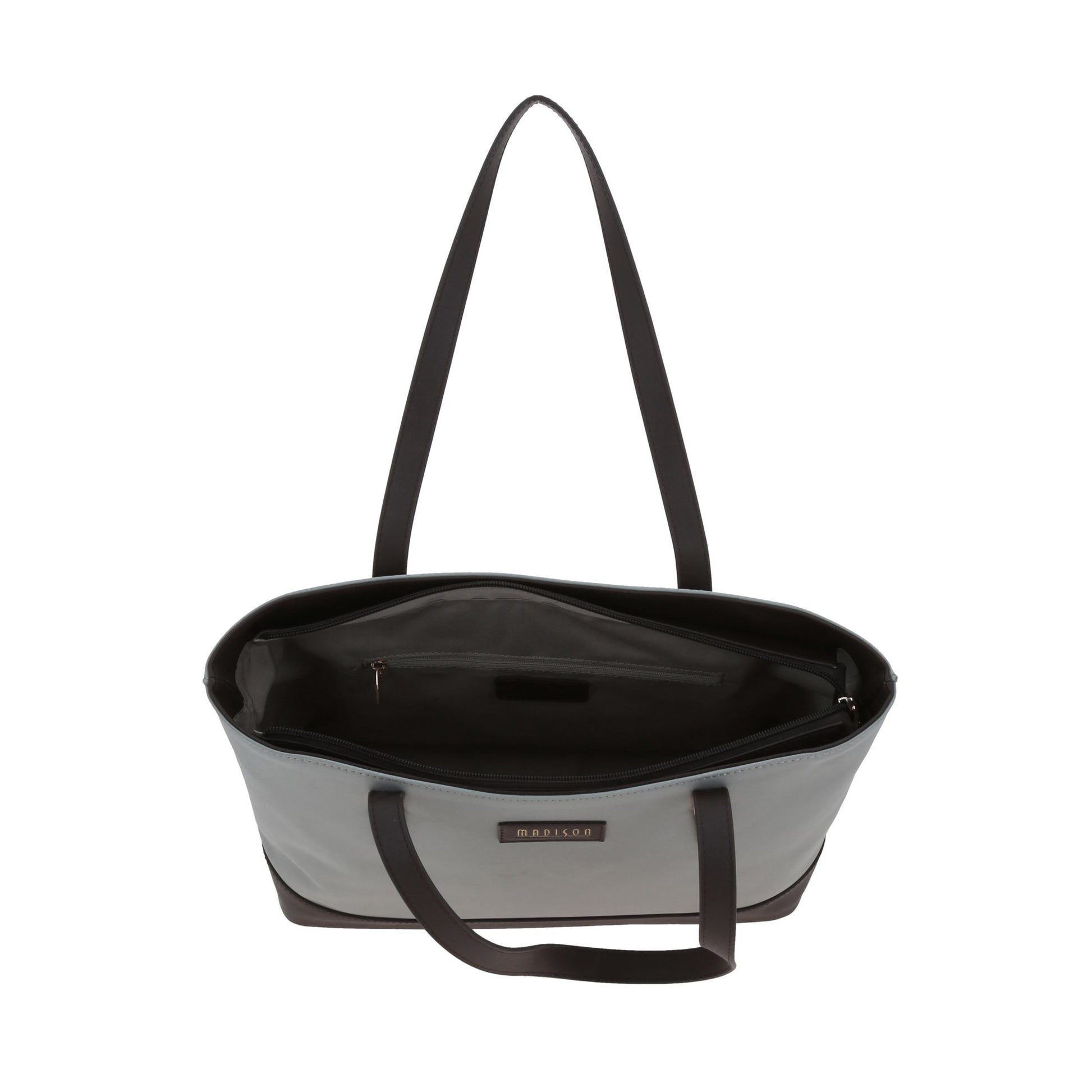 Bolsa Dama 109-Ch-Md25118-2 Gris ?? Tote Gris Minimalista Con Detalles Café Diseño Sofisticado Con Acento Moderno. Este Bolso Tipo Tote Combina Cuerpo En Tono Azul Suave Con Base Y Asas En Contraste Café, Herrajes Metálicos Y Placa Frontal De Marca En Dorado Que Refuerza Su Carácter Premium. Su Estética Estructurada Y Minimalista Lo Convierte En Pieza Versátil Para Atuendos Casuales Chic, Looks Urbanos O Conjuntos Semi-Formales Con Estilo Contemporáneo. Un Accesorio Que Transmite Frescura, Elegancia Discreta Y Personalidad Vibrante. Descubre Más Modelos Que Celebran El Diseño Premium Con Acabados Distintivos Y Funcionalidad Diaria.