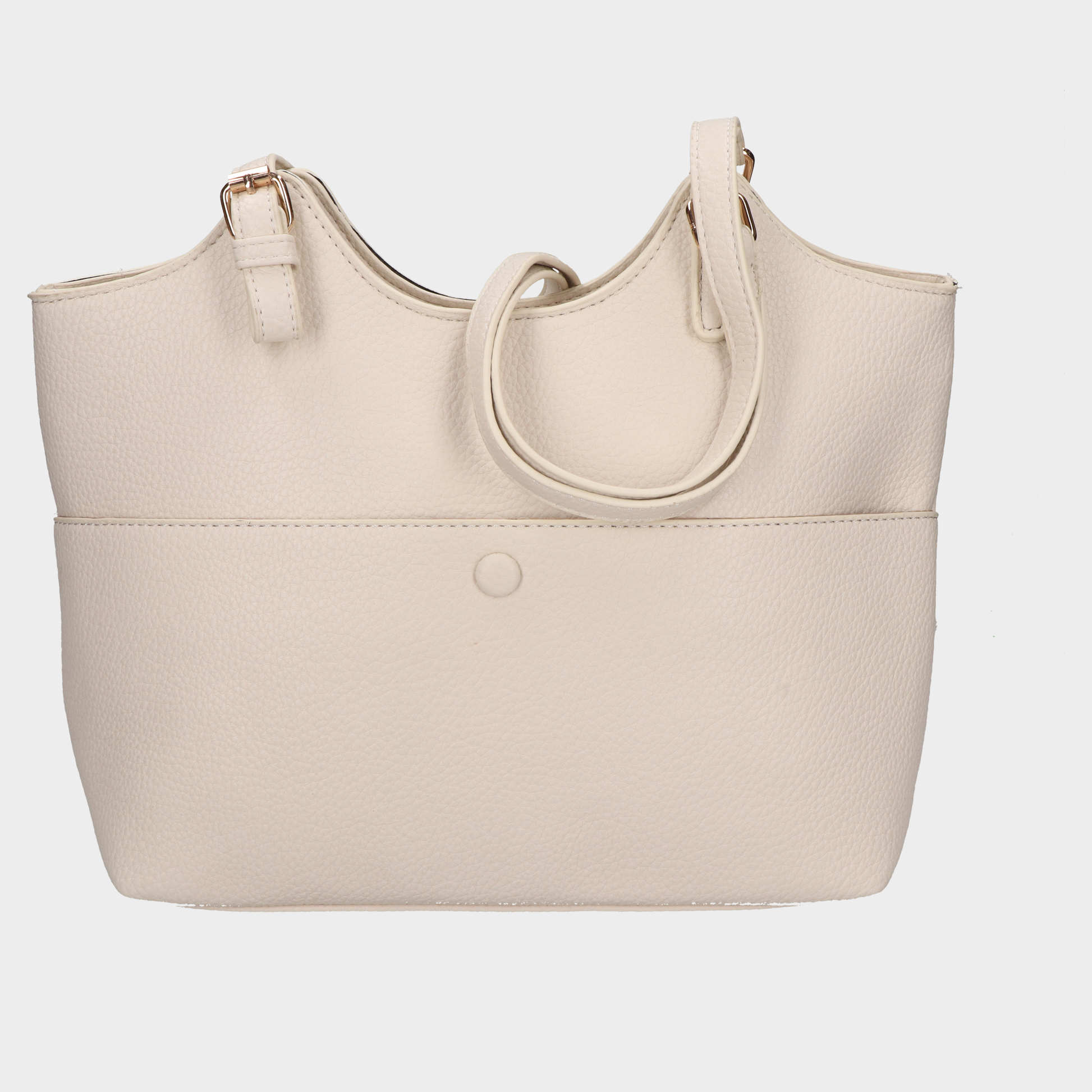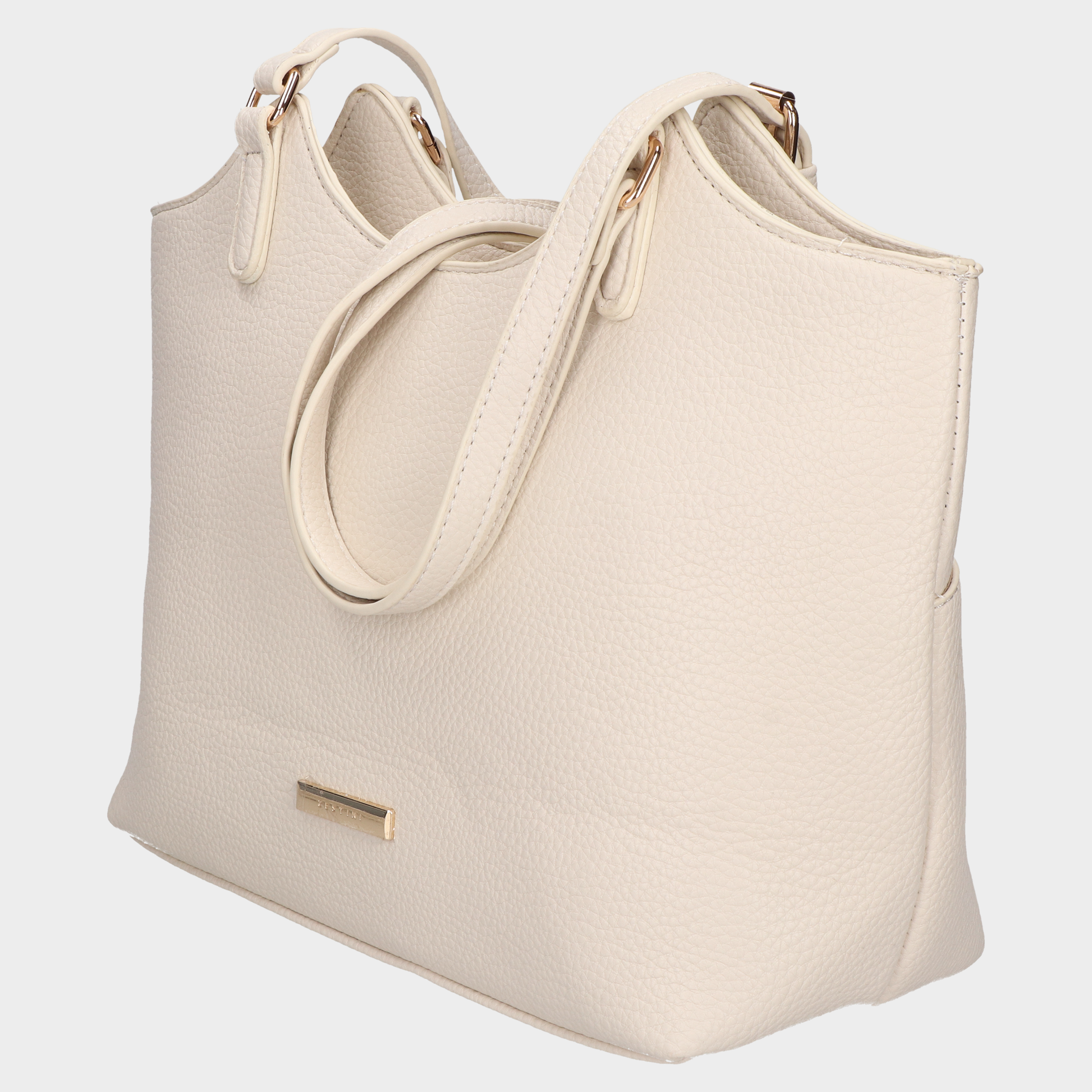 Bolsa Dama 28-Adalia4504 Bco ?? Bolsa Beige Con Diseño Estructurado Y Asa Doble Elegancia Funcional Para El Día A Día. Esta Bolsa En Tono Beige Claro Combina Textura Tipo Piel, Diseño Estructurado Y Doble Asa Firme, Además De Correa Larga Desmontable Para Llevarla Al Hombro O Cruzada. El Detalle Metálico Frontal Con Branding Aporta Un Toque Sofisticado, Ideal Para Atuendos Casuales, De Oficina O Como Pieza Neutra Que Combina Con Todo. Un Accesorio Que Transmite Orden, Estilo Y Versatilidad. Descubre Más Modelos Que Celebran El Diseño Contemporáneo Con Carácter Visual Y Funcionalidad.