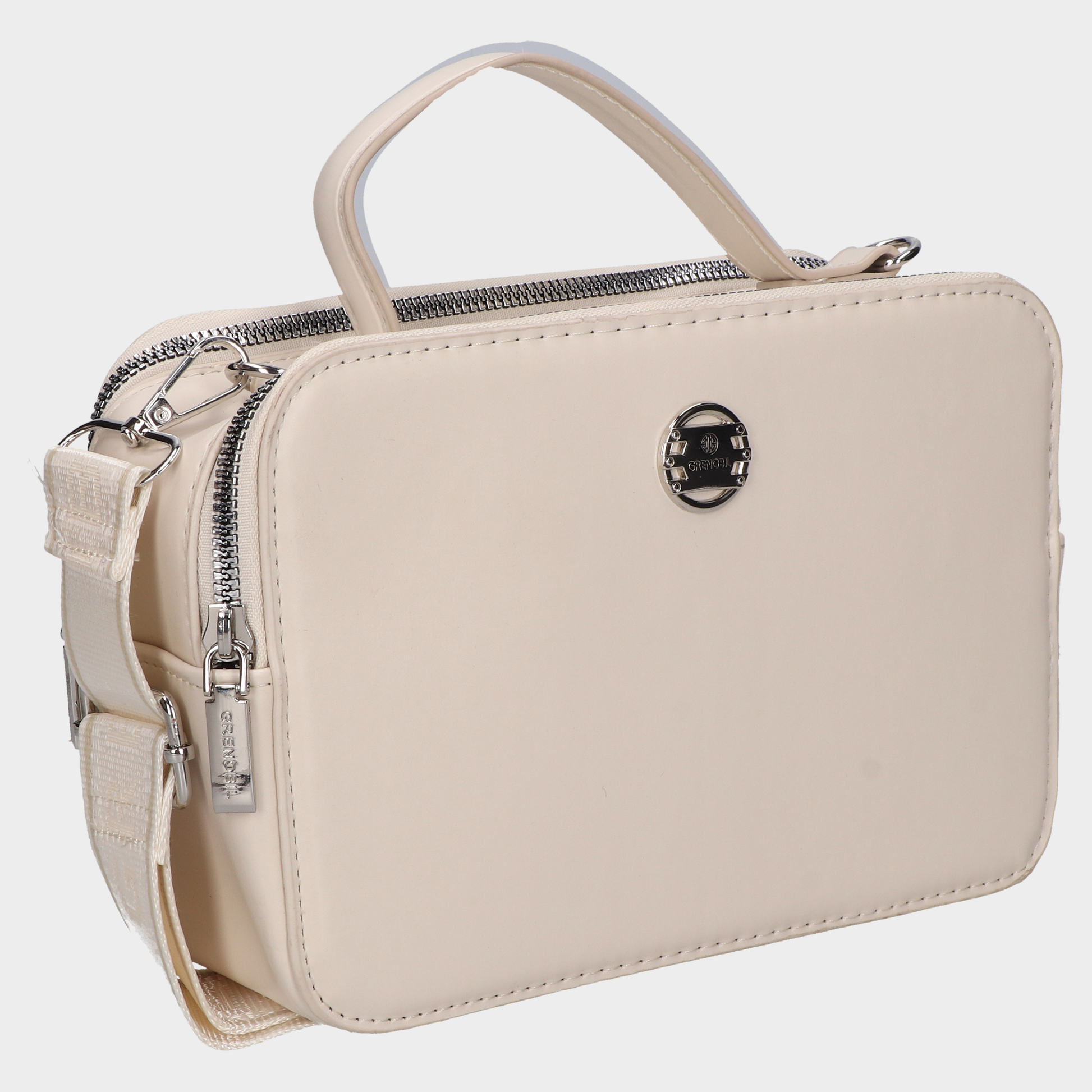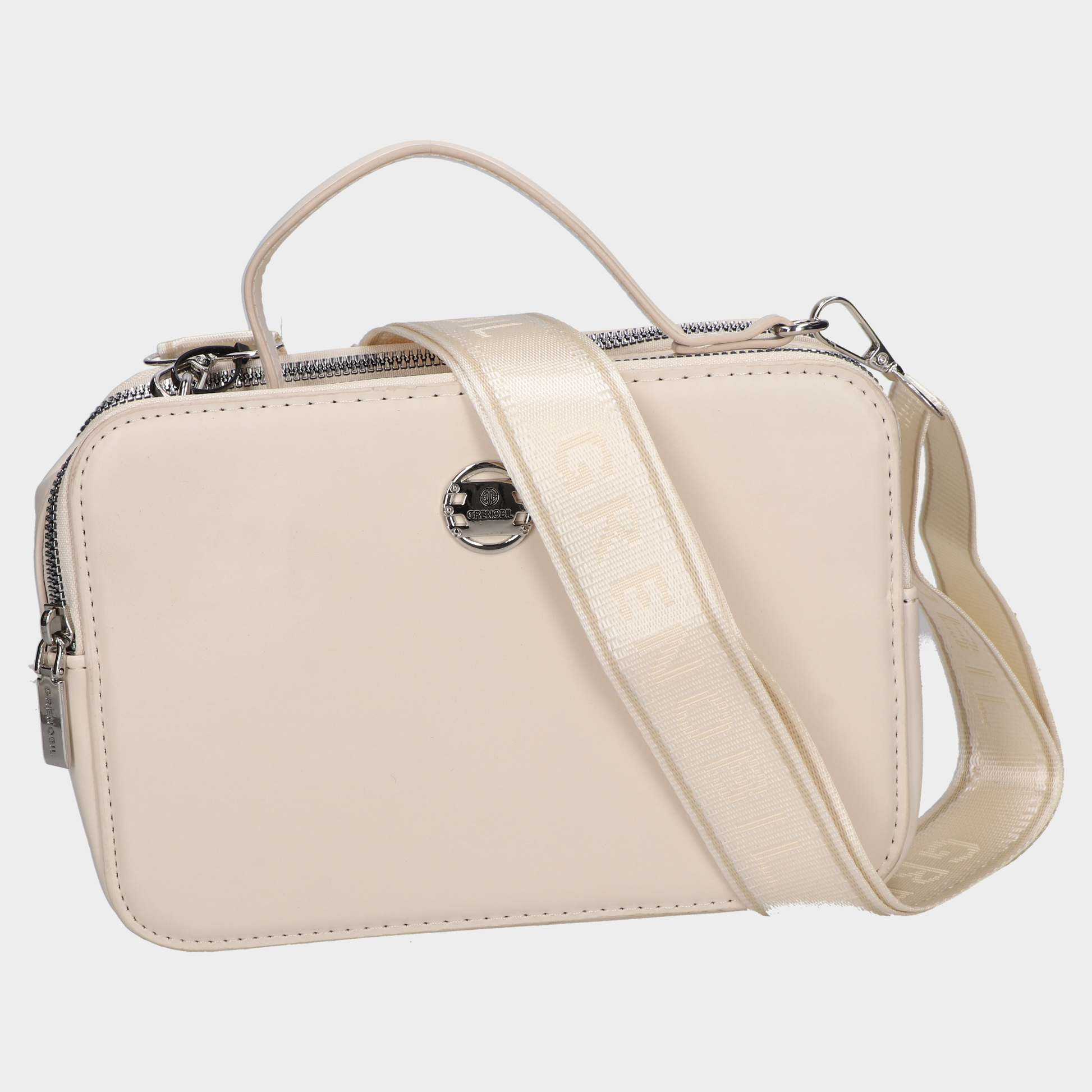 Bolso Cross Body Dama 28-Grb20091 Hso ?? Bolsa Cuadrada Crema Con Asa Y Correa Largas Diseño Limpio Con Estructura Funcional. Esta Bolsa Cuadrada En Tono Crema Combina Cuerpo Rígido, Asa Superior Y Correa Larga Desmontable Con Textura Satinada Y Branding En Relieve. El Broche Metálico Circular Al Frente Aporta Un Toque Moderno, Mientras Que Su Tamaño Compacto La Hace Ideal Para Uso Diario, Eventos Informales O Como Pieza Neutra En Looks Urbanos. Un Accesorio Que Transmite Sofisticación, Orden Y Versatilidad. Descubre Más Modelos Que Celebran El Diseño Contemporáneo Con Estética Refinada