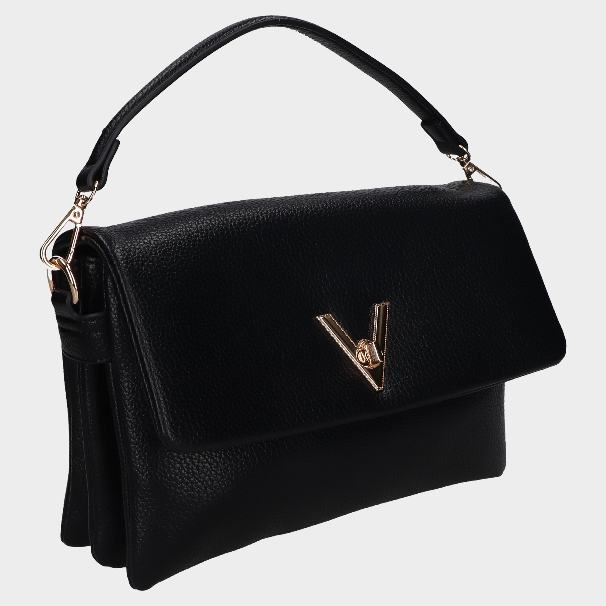 Bolso Messenger Dama 10-A20676-T Bk ?? Bolsa Negra Con Asa Firme Y Solapa Con Detalle Metálico Diseño Clásico Que Atrae Las Miradas. Esta Bolsa Negra Estructurada Combina Asa Corta Firme, Solapa Delantera Y Broche Metálico En Forma De “V”. Es Perfecta Para Atuendos Monocromáticos, Formales O Como Pieza Sofisticada En Looks Urbanos. Incluye Correa Larga Desmontable Para Mayor Versatilidad. Un Accesorio Que Transmite Carácter, Elegancia Y Orden. Descubre Más Modelos Que Celebran La Moda Contemporánea Con Acabados Visuales De Alto Impacto.