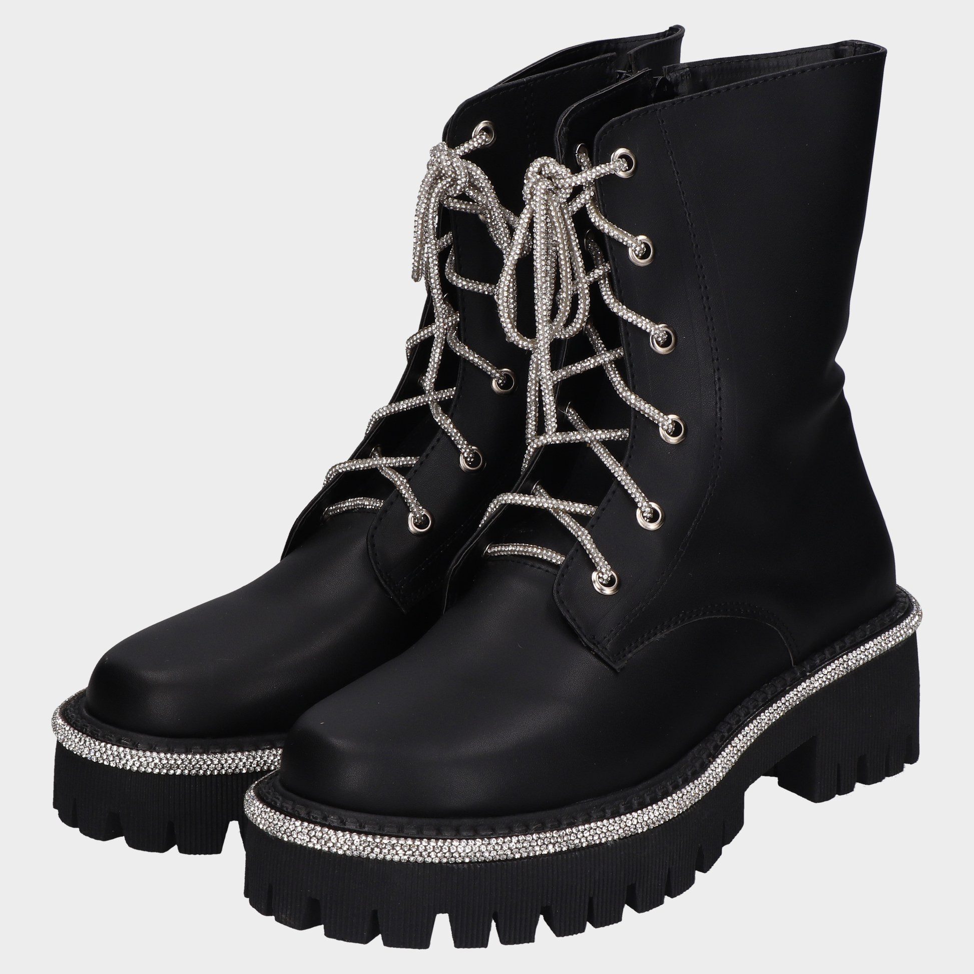 Bota Dama 08-O-2581 Negro Botas Urbanas Con Detalle Brillante Diseño Robusto Con Actitud. Estas Botas Negras Tipo Combate Combinan Funcionalidad Y Estilo En Cada Paso. Su Suela Gruesa Y Dentada Ofrece Firmeza Y Seguridad, Mientras Que Los Cordones Plateados Con Acabado Brillante Y El Contorno De Pedrería Añaden Un Toque Glam Que Transforma Cualquier Look. Ideales Para Quienes Buscan Calzado Versátil, Cómodo Y Con Personalidad. Perfectas Para Outfits Urbanos, Escolares O Casuales Con Un Giro Moderno. Descubre Más Modelos Que Elevan Tu Estilo Sin Perder Confort.