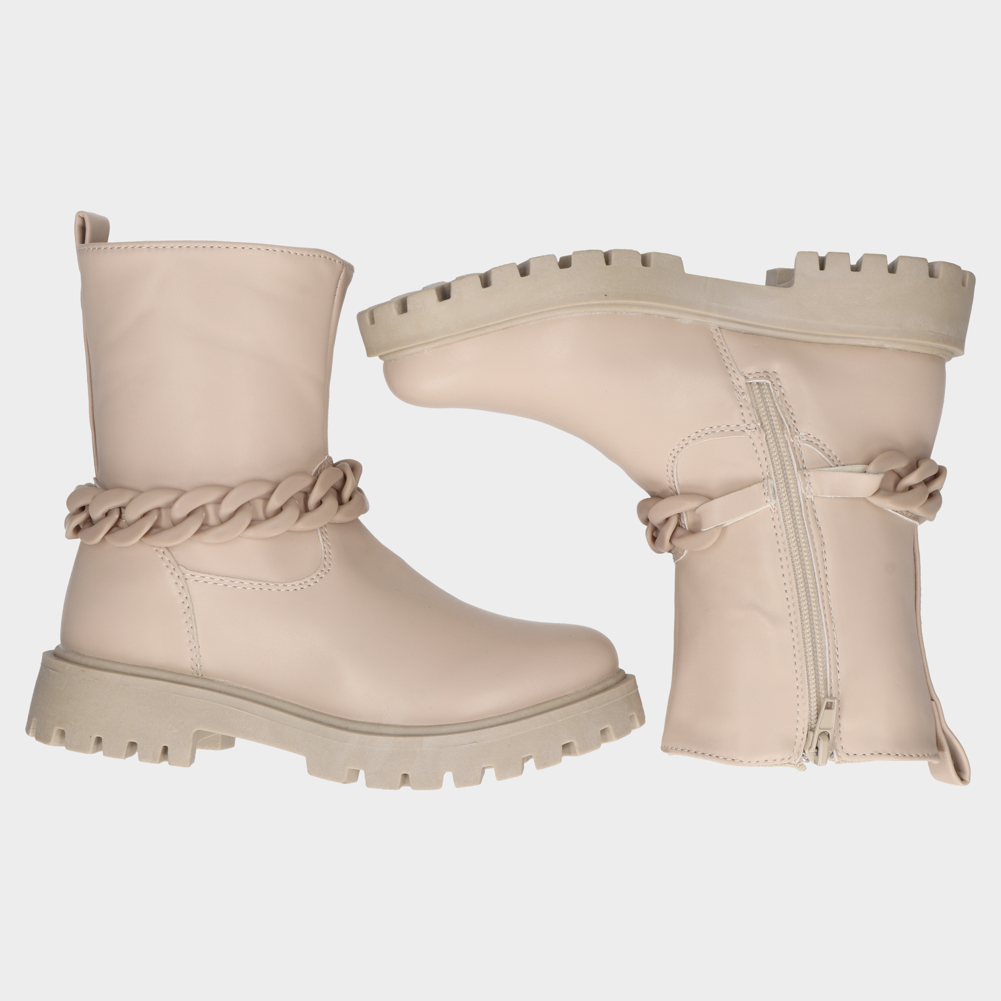 Bota Infantil Niña 102-Bp-2196001-1 Beige Marca ?? Botas Beige Con Cadena Decorativa Y Suela Chunky Minimalismo Con Actitud. Estas Botas Beige De Media Caña Combinan Diseño Limpio Y Detalles Modernos Como La Cadena Metálica En El Tobillo Y La Suela Chunky Con Tracción. El Acabado Tipo Piel Sintética Y El Cierre Lateral Aportan Funcionalidad Y Estilo, Mientras Que Su Silueta Estructurada Las Convierte En El Complemento Perfecto Para Looks Urbanos, Outfits Neutros O Combinaciones De Temporada. Un Calzado Que Equilibra Elegancia Y Fuerza Visual. Descubre Más Modelos Que Fusionan Diseño Contemporáneo Y Comodidad.