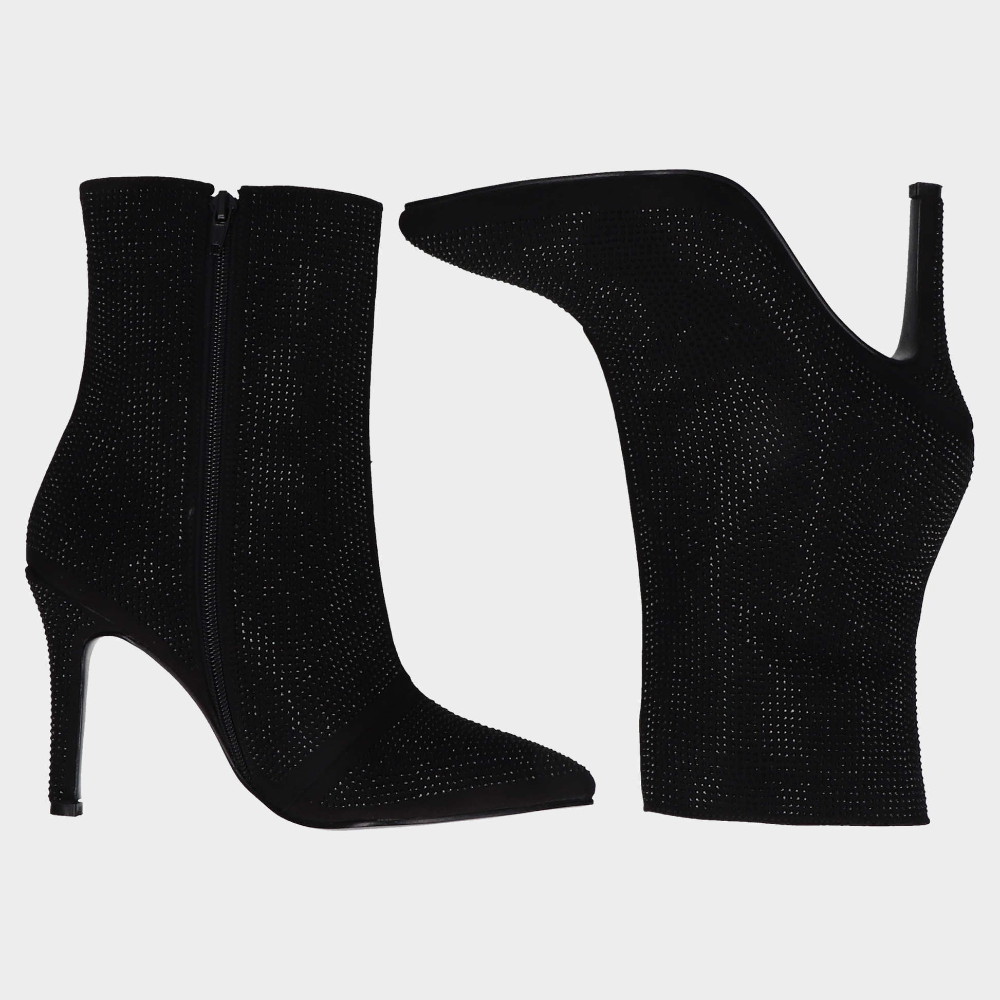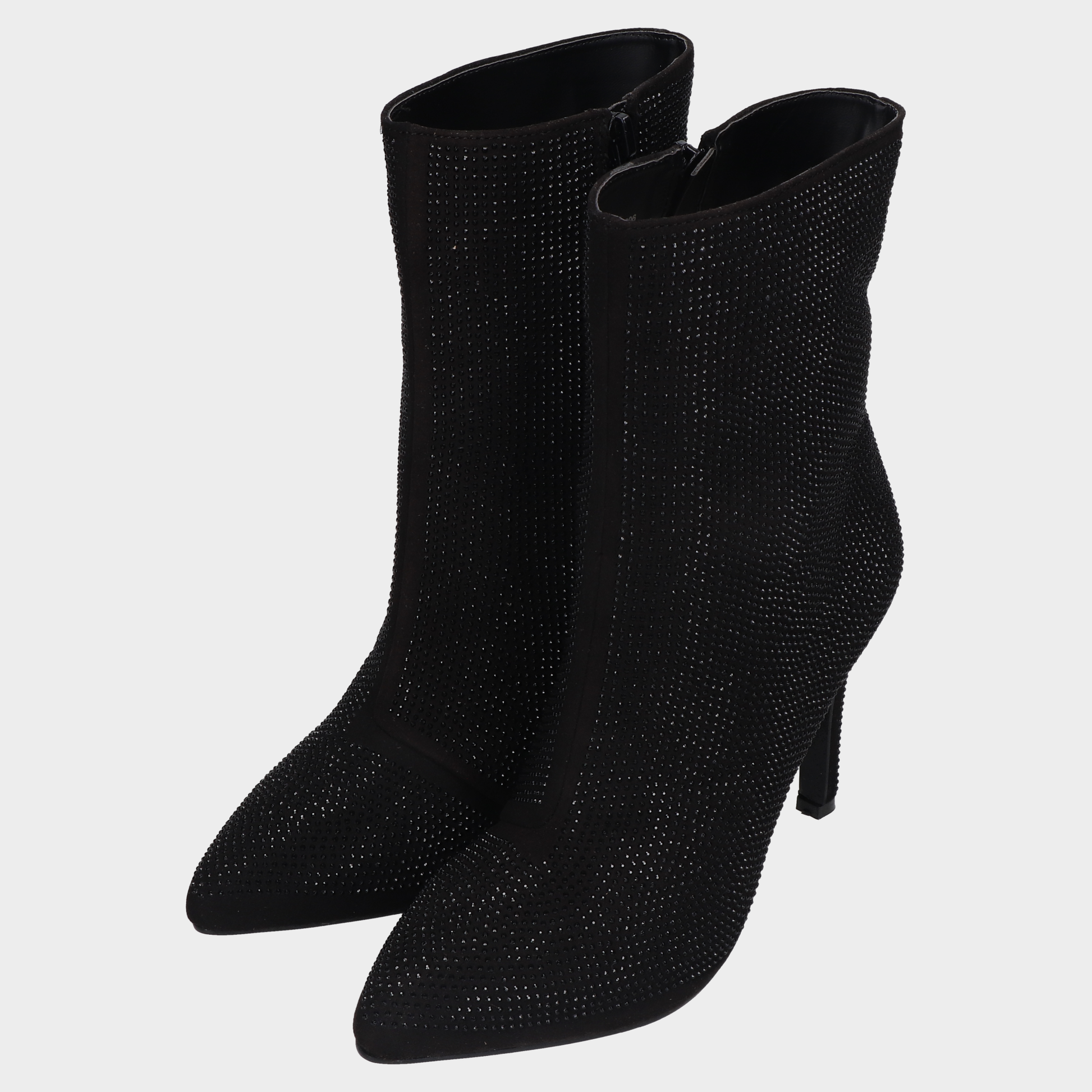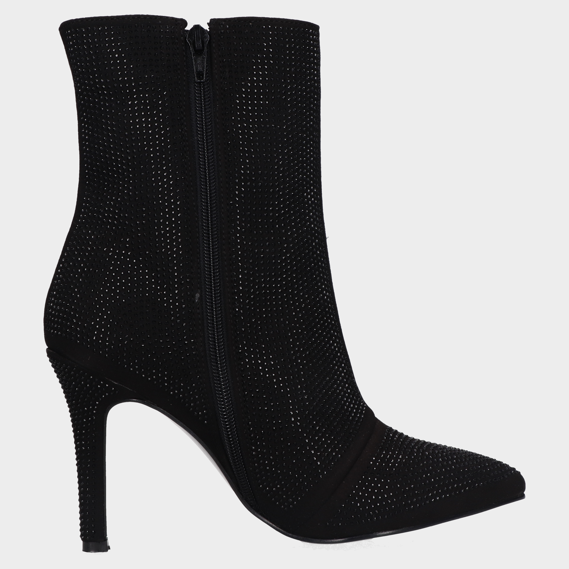 Botin Dama 108-W611206 Negro ? Botines Negros Con Brillos Y Tacón De Aguja Elegancia Que Deslumbra. Estos Botines Negros De Tacón Alto Combinan Diseño Sofisticado Y Detalles Glam Con Acabado Textil Decorado Con Microbrillos Tipo Pedrería. La Punta Afilada Y El Tacón Tipo Stiletto Estilizan La Silueta, Mientras Que El Cierre Lateral Facilita El Ajuste. Ideales Para Eventos Nocturnos, Atuendos Formales O Como Pieza Protagonista En Looks De Temporada. Un Calzado Que Transmite Seguridad, Estilo Y Presencia. Descubre Más Modelos Que Celebran La Moda Con Carácter Y Brillo.