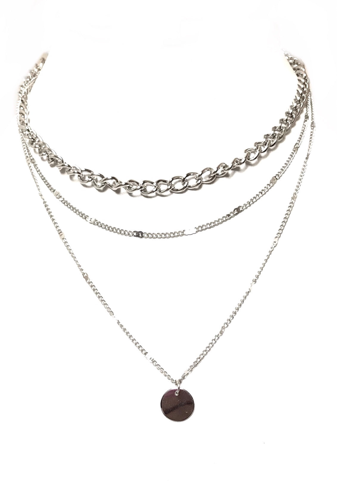 Collar 83-N9741 Plata Collar De Tres Cadenas Color Plata