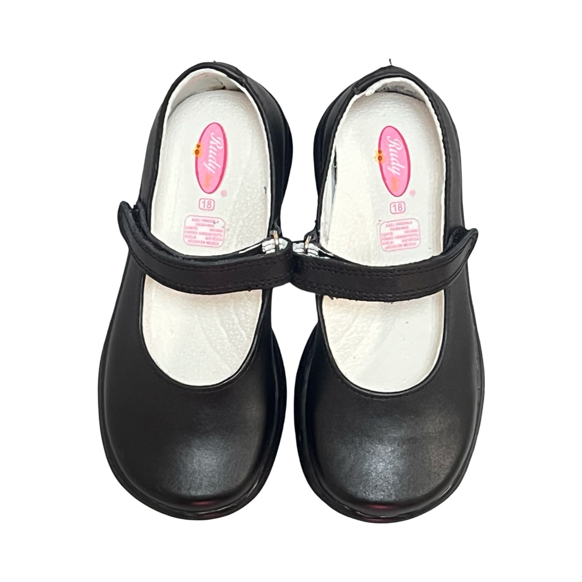 Escolar 102-R-200-1 Negro Calzado Escolar Para Niña, En Color Negro, Tipo Balerina Con Ajuste Al Frente En Velcro, Suela Antiderrapante Marca Ruditos