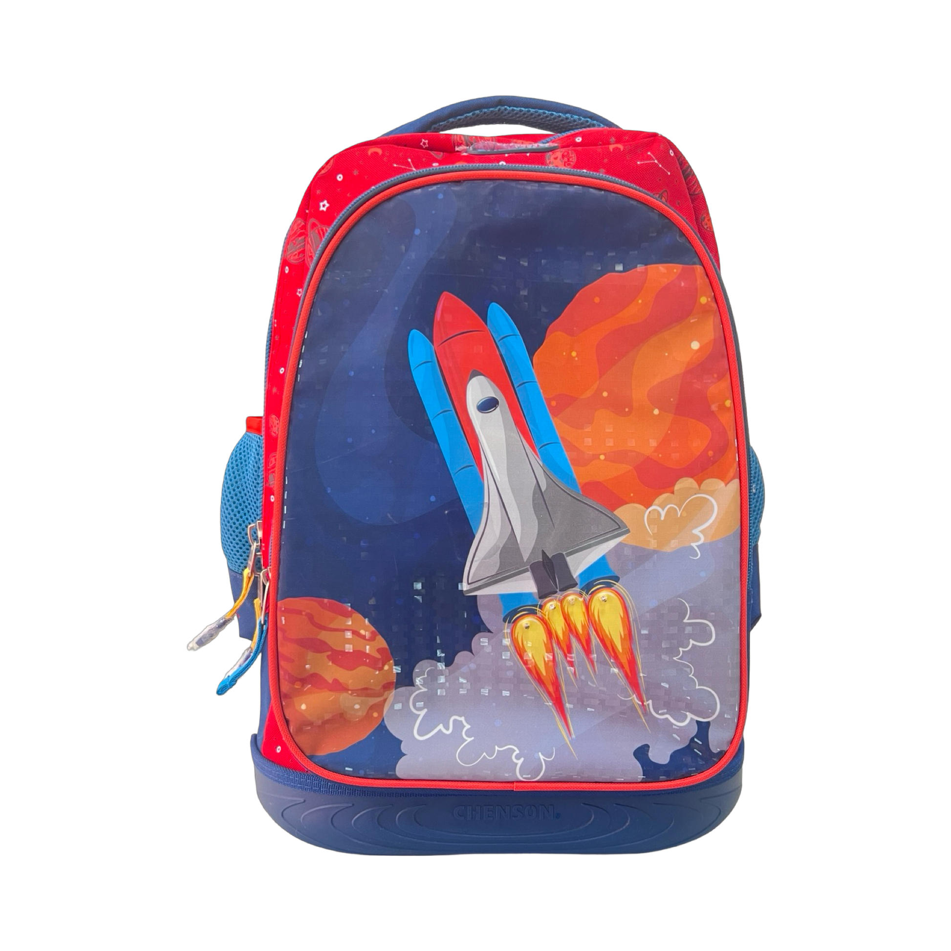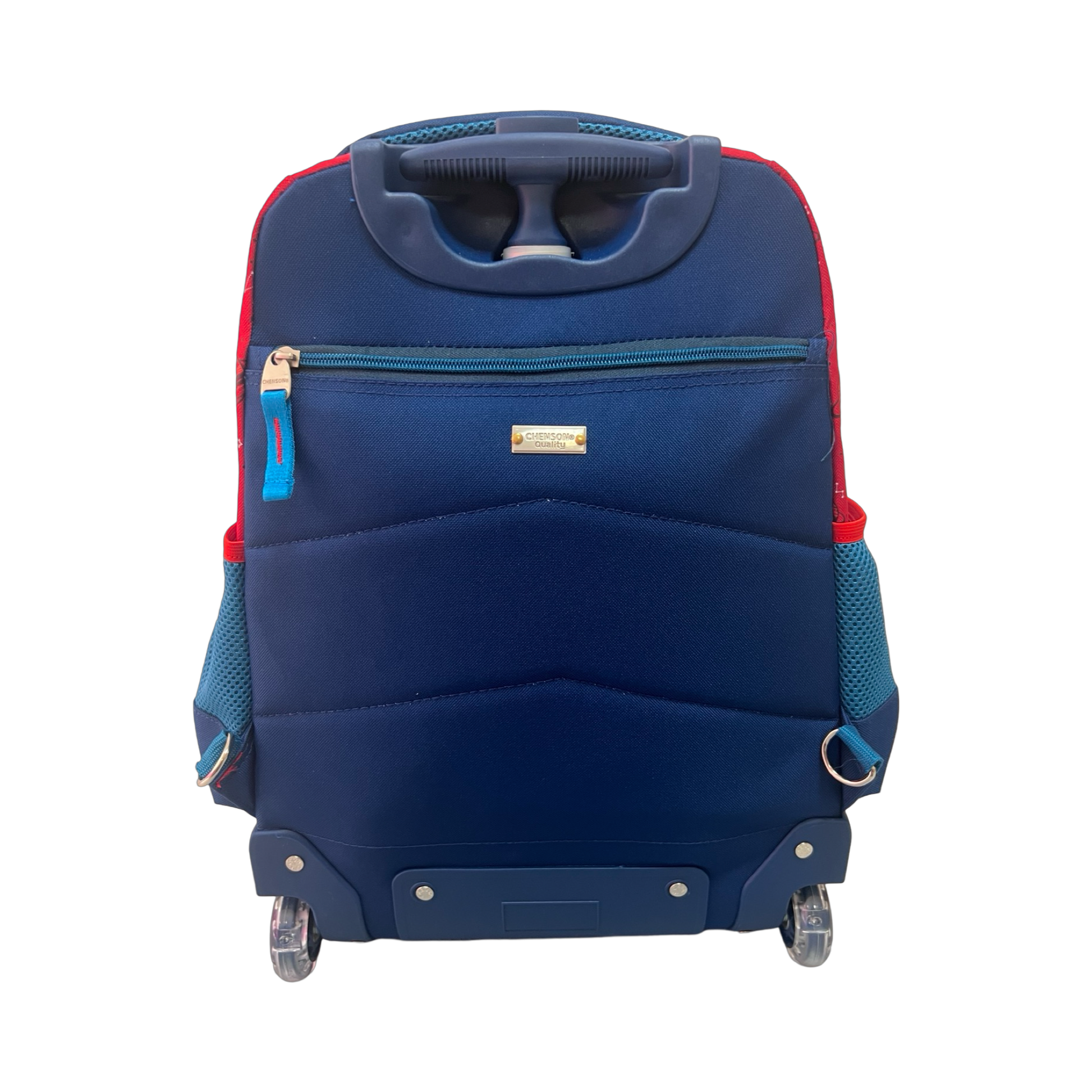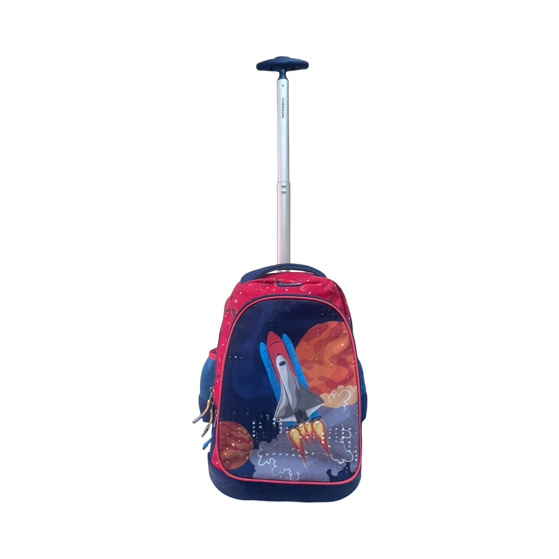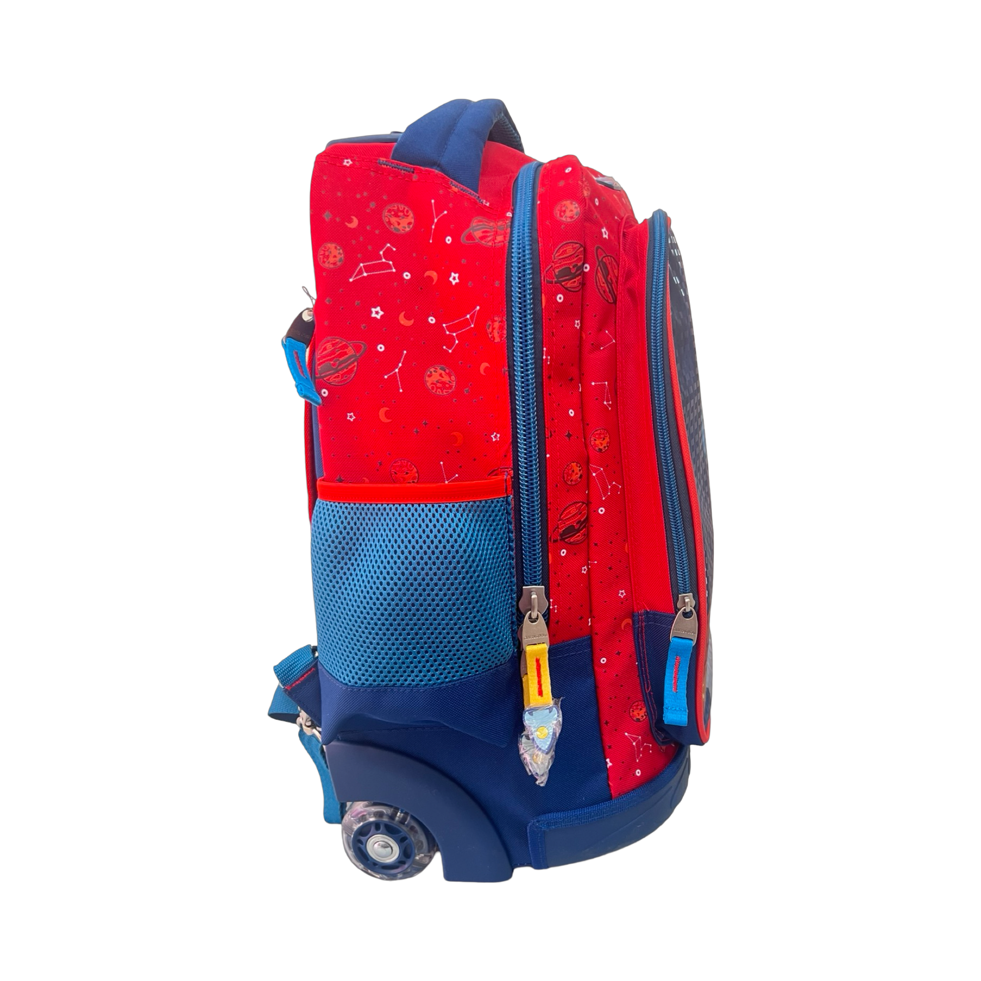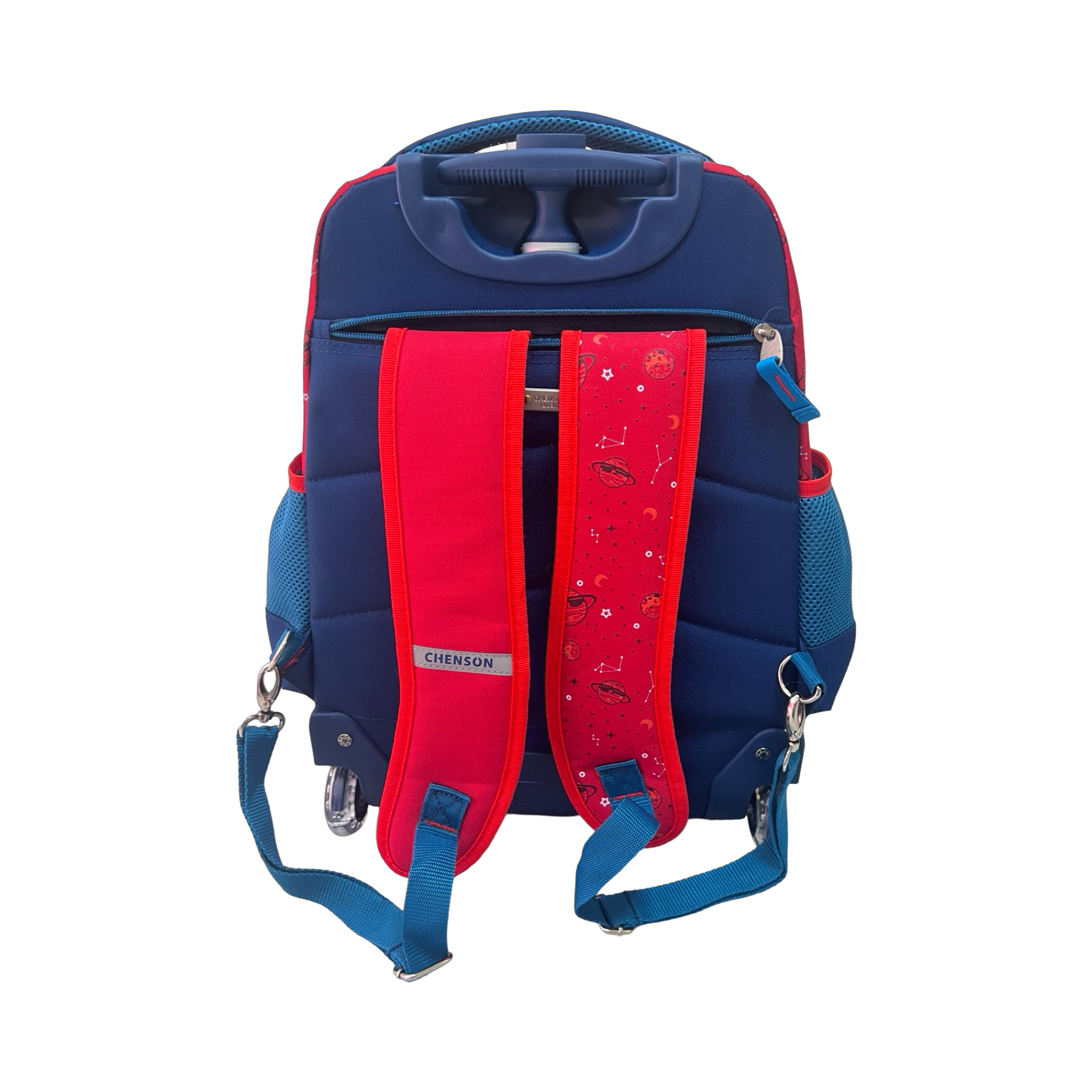 Mochila 109-Ch-Co66205-M Varios Backpack Tamaño Grande Con Baston Y Ruedas, Diseño Espacial, En Color Azul Con Rojo, Con Bolso Extra Con Cierre Al Frente Para Llevar Tus Utiles Mas Cómodamente A La Escuela Marca Chenson