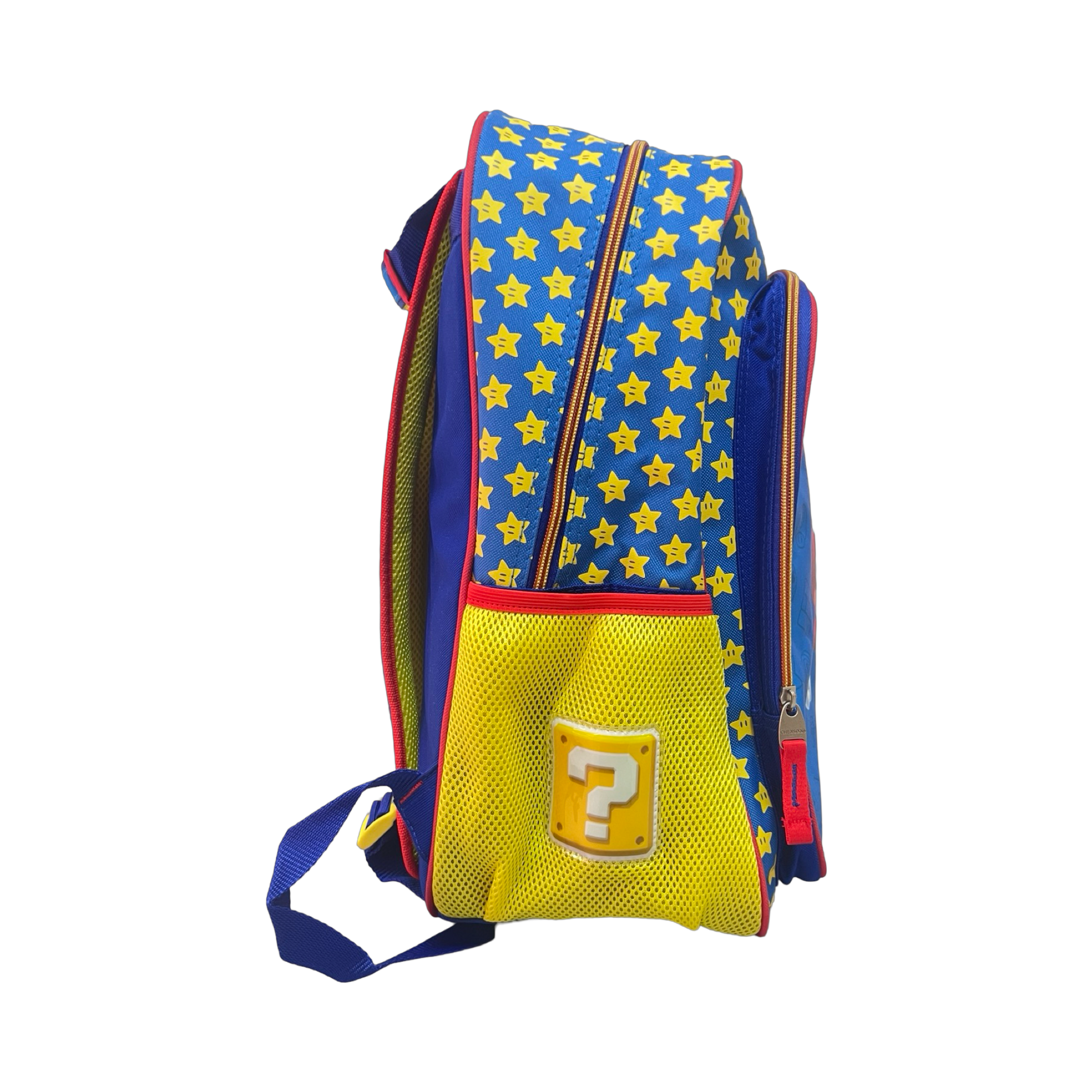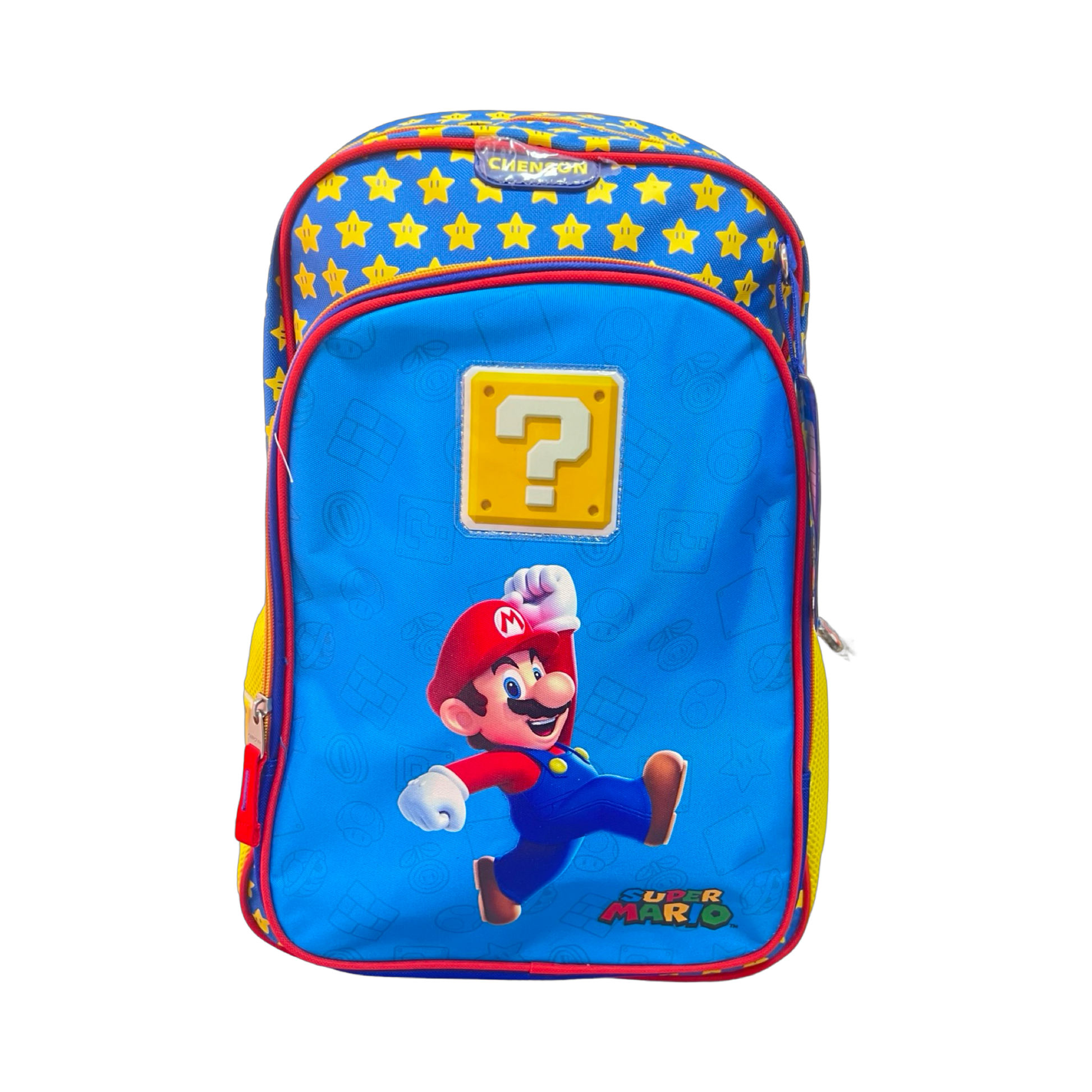 Mochila 109-Ch-Mb66306-9 Varios Backpack Tamaño Grande, Diseño Super Mario, En Color Azul Con Amarillo, Con Bolso Extra Con Cierre Al Frente Marca Chenson