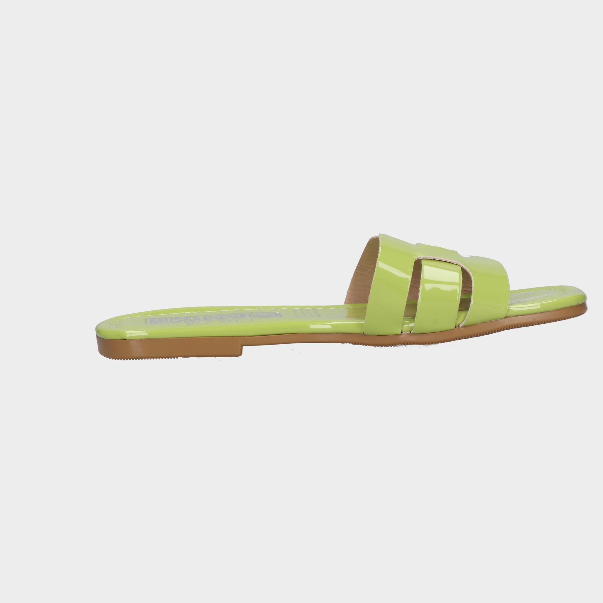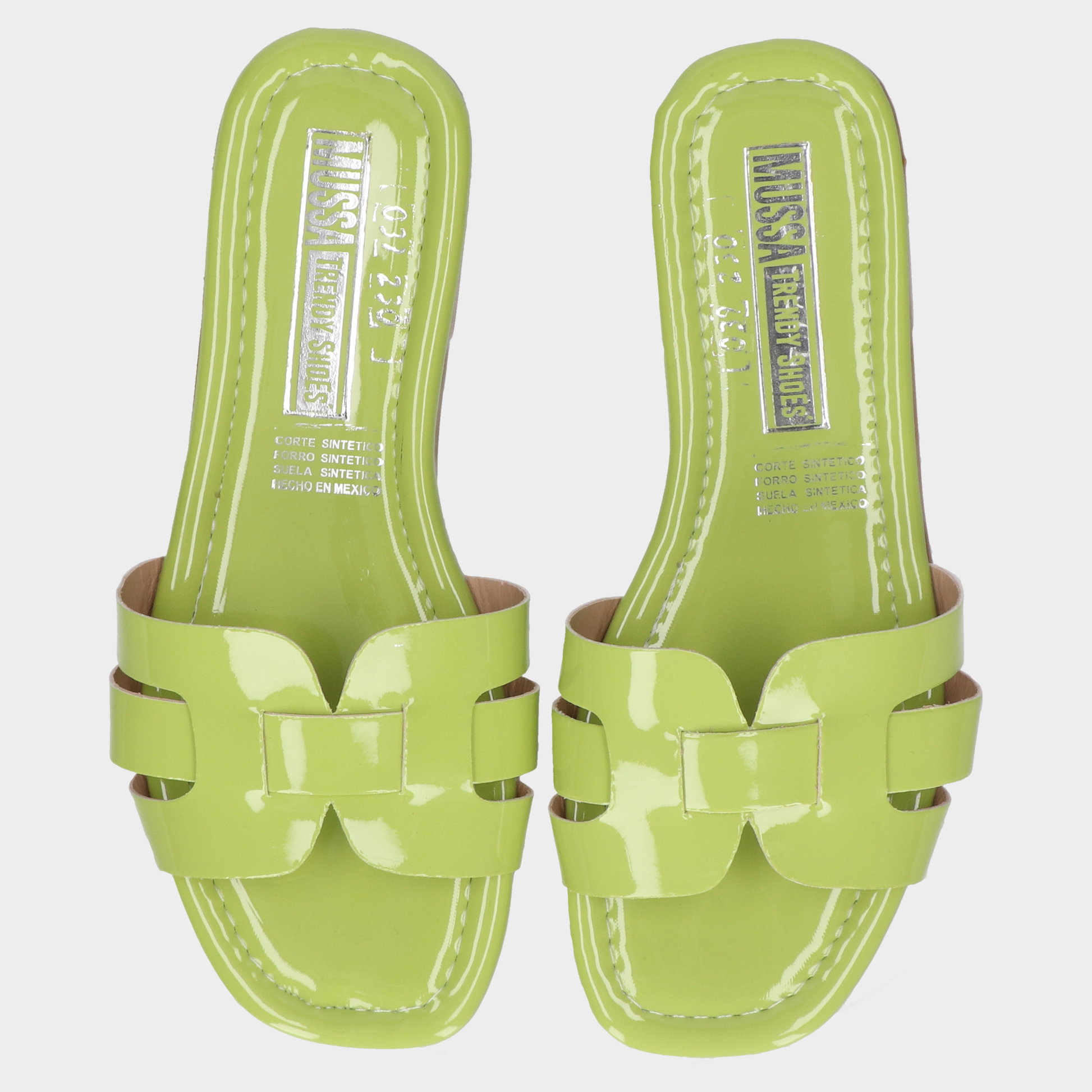Sandalia Dama 65-Muss-39 Chverd ?? Sandalias Verde Lima Con Diseño Entrelazado Y Acabado Brillante Diseño Atrevido Con Acento Contemporáneo. Estas Sandalias Slip-On En Tono Verde Lima Brillante Combinan Punta Abierta, Suela Plana Con Ligero Realce Y Tiras Superiores Entrelazadas. Su Estética Llamativa Y Estructura Cómoda Las Convierten En Pieza Versátil Para Atuendos Urbanos, Looks Casuales Chic O Conjuntos Veraniegos Con Estilo Editorial. Un Calzado Que Transmite Frescura, Personalidad Y Sofisticación. Descubre Más Modelos Que Celebran El Diseño Femenino Con Acabados Premium Y Colores Vibrantes.