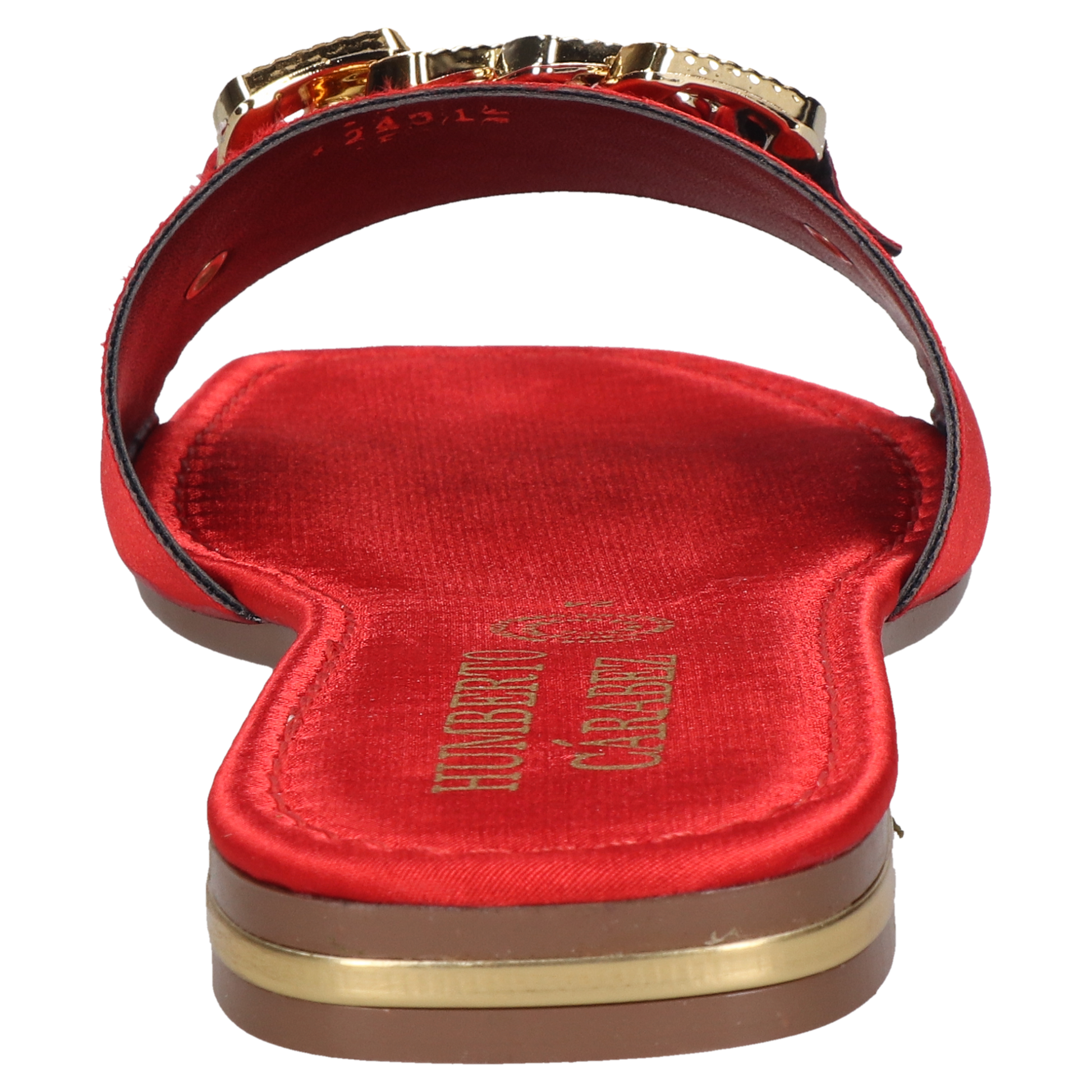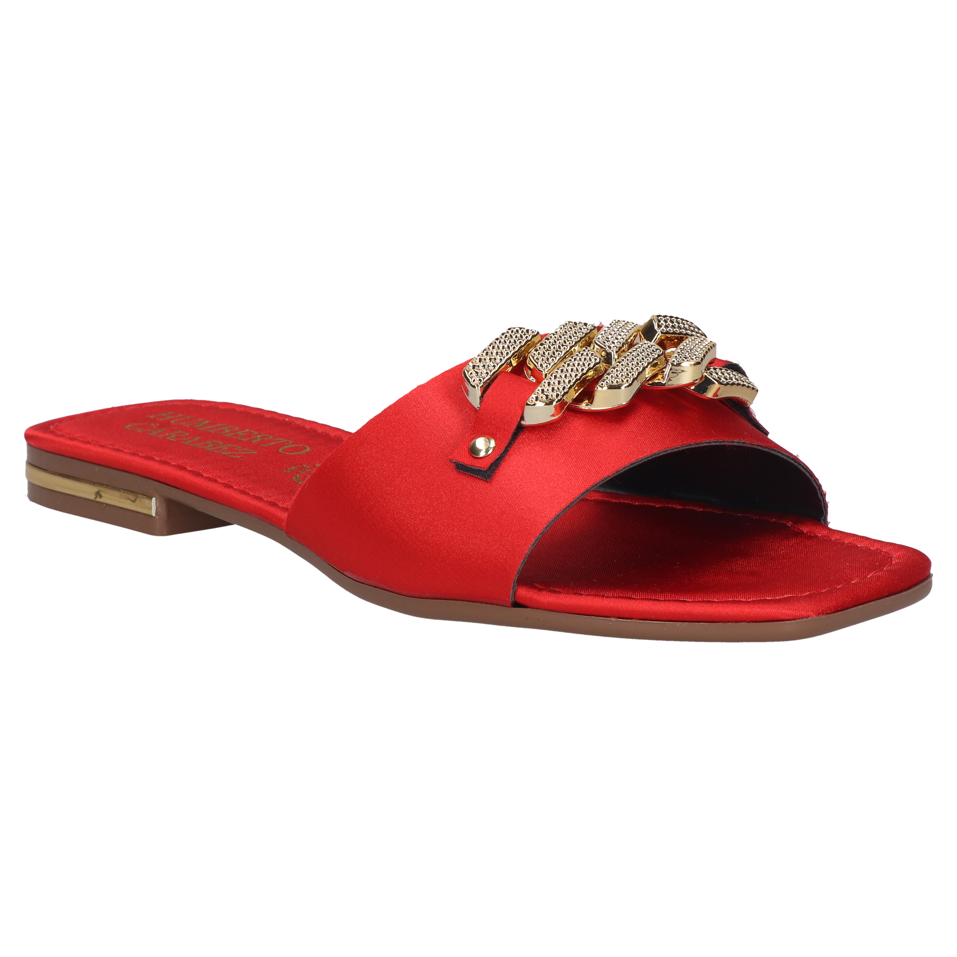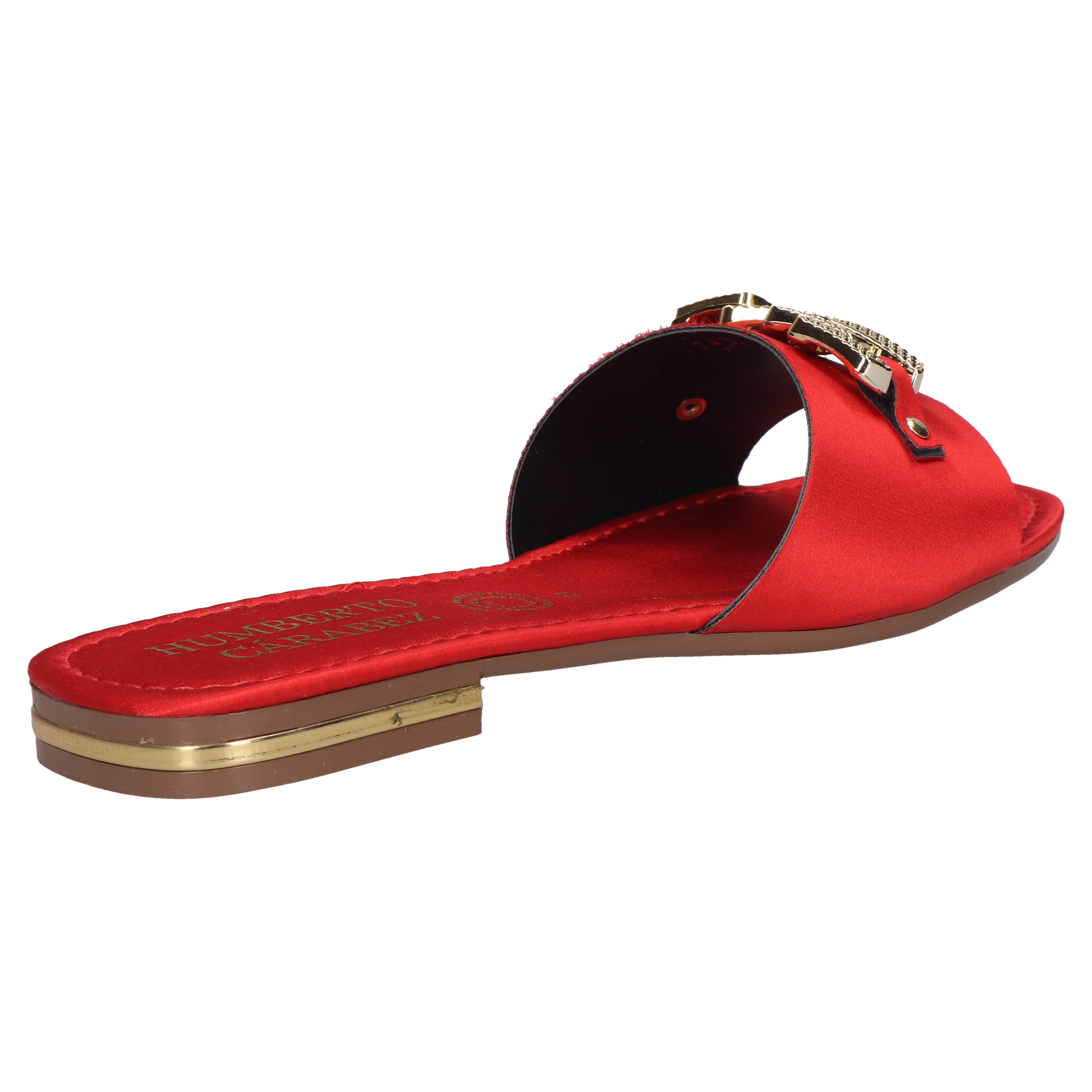 Sandalia De Piso Dama 08-O-2431 Rojo Hermosas Sandalias En Color Rojo, Con Diseño Al Frente En Tira Con Cadena En Color Oro Con Brillos Ideal Para Un Look Casual Marca Humberto Carabez