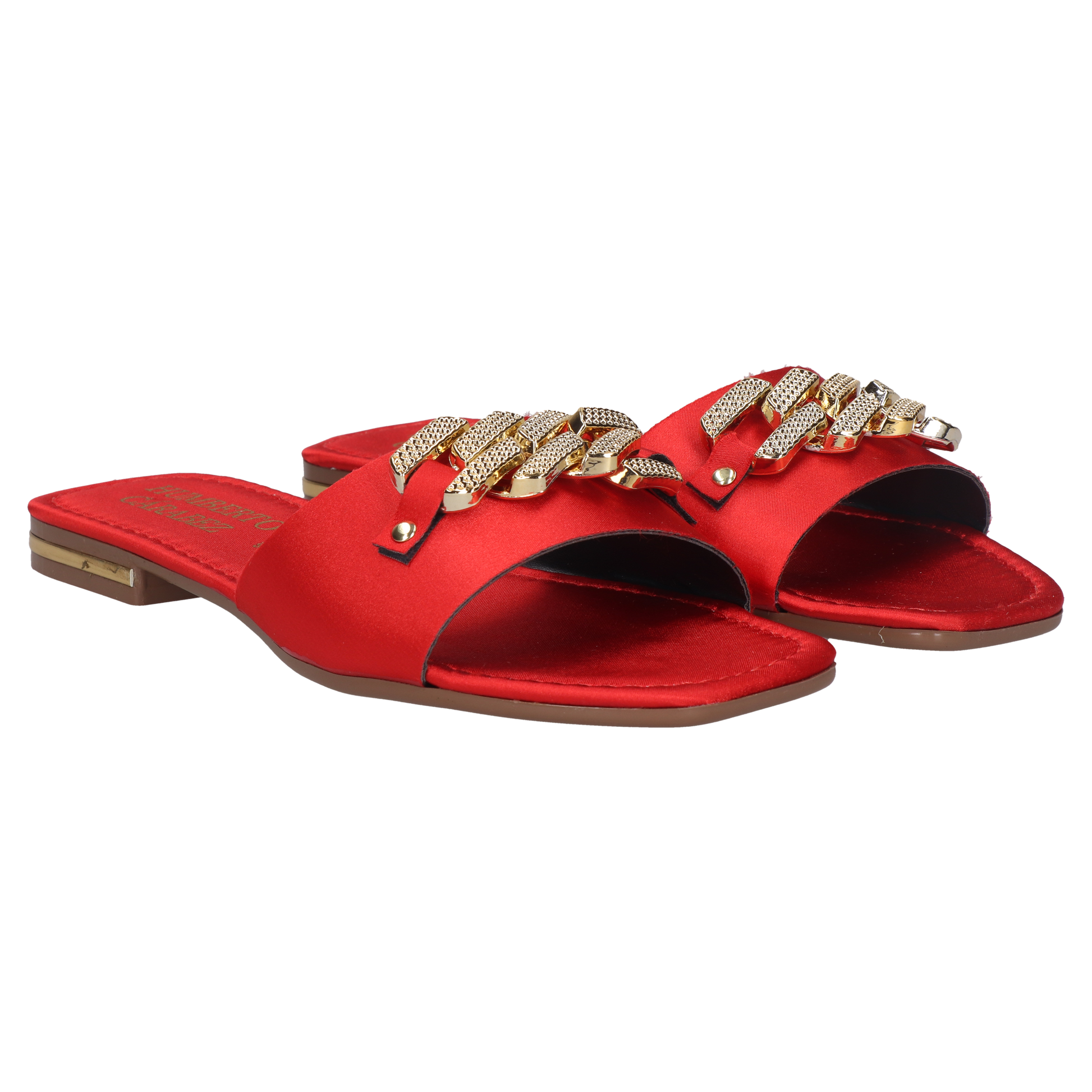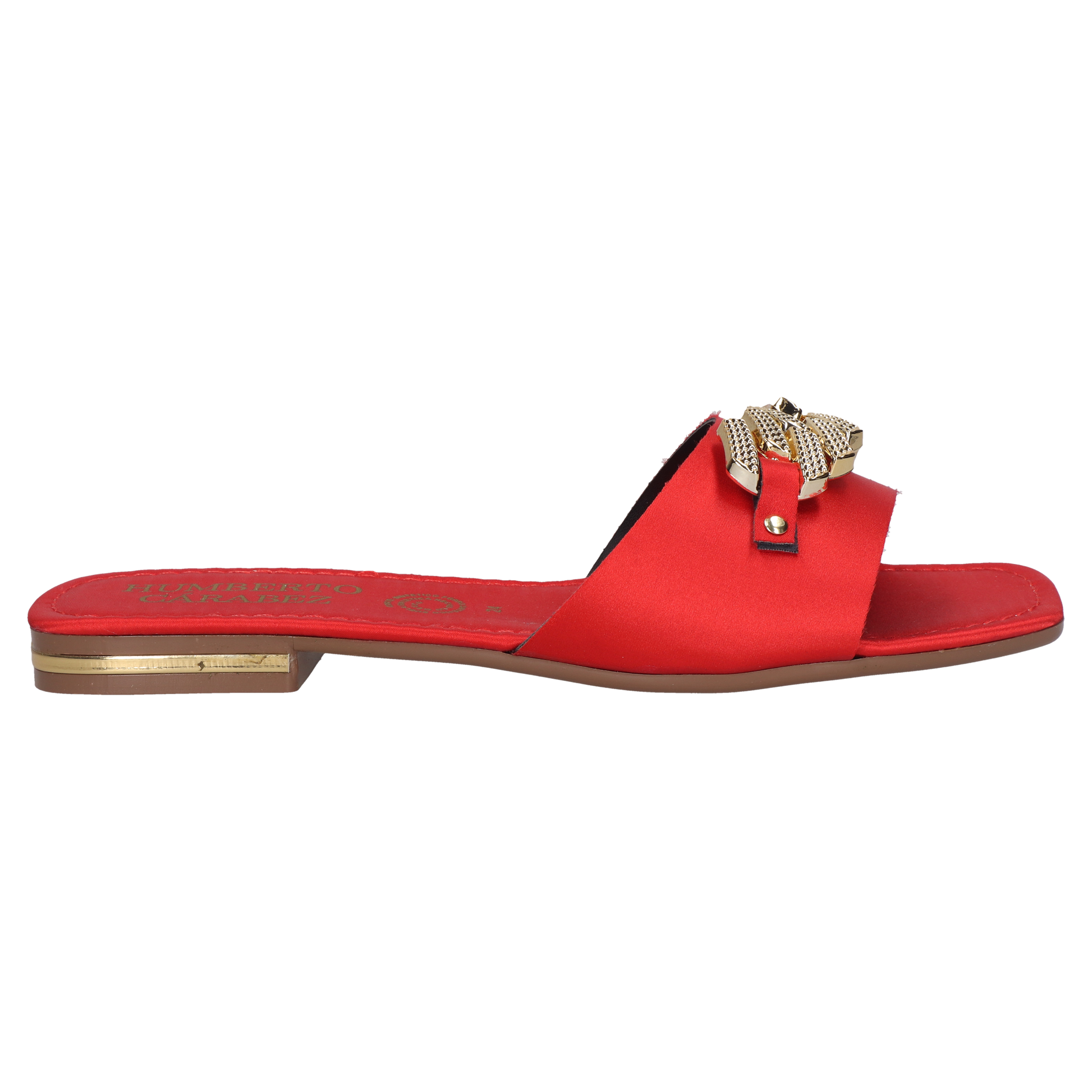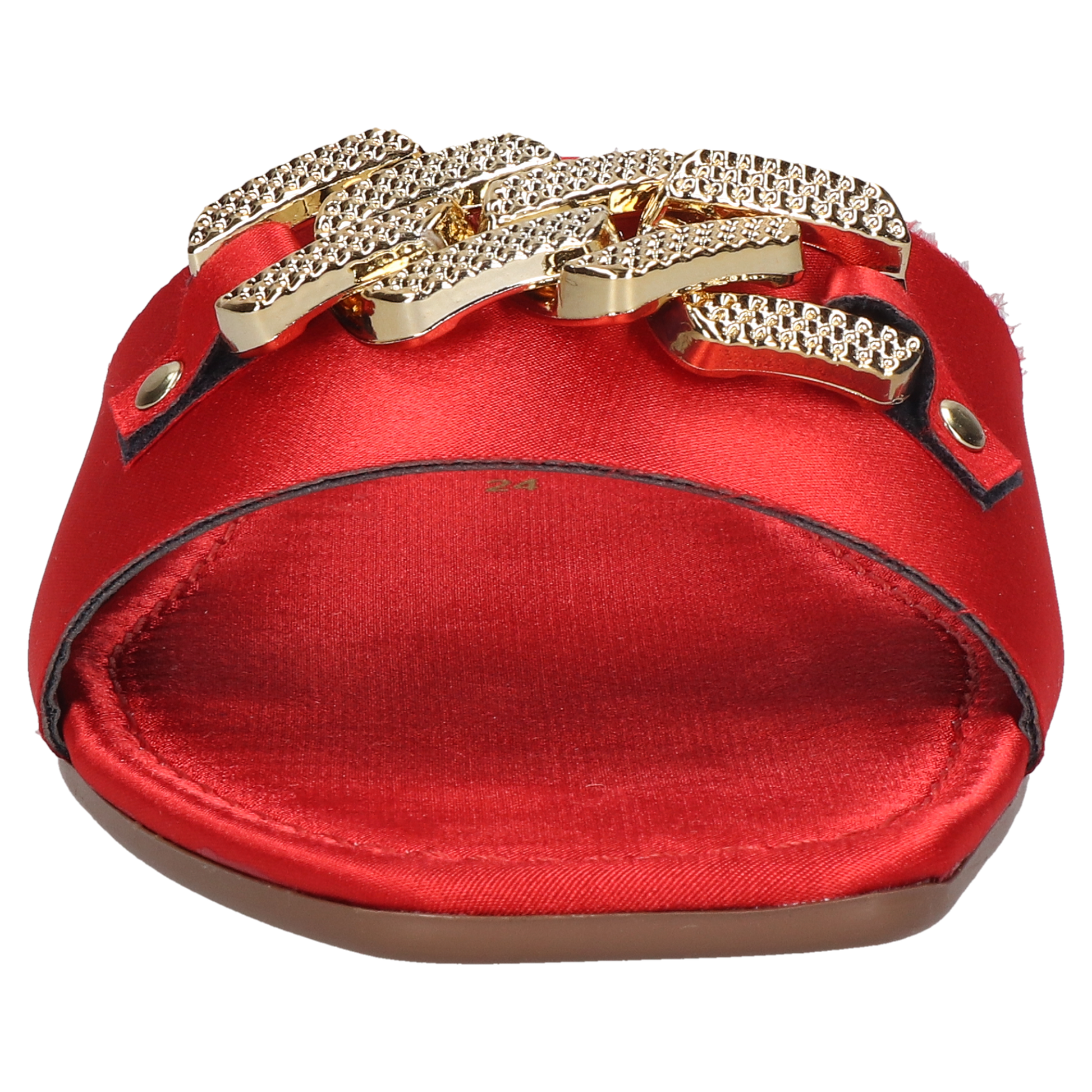 Sandalia De Piso Dama 08-O-2431 Rojo Hermosas Sandalias En Color Rojo, Con Diseño Al Frente En Tira Con Cadena En Color Oro Con Brillos Ideal Para Un Look Casual Marca Humberto Carabez