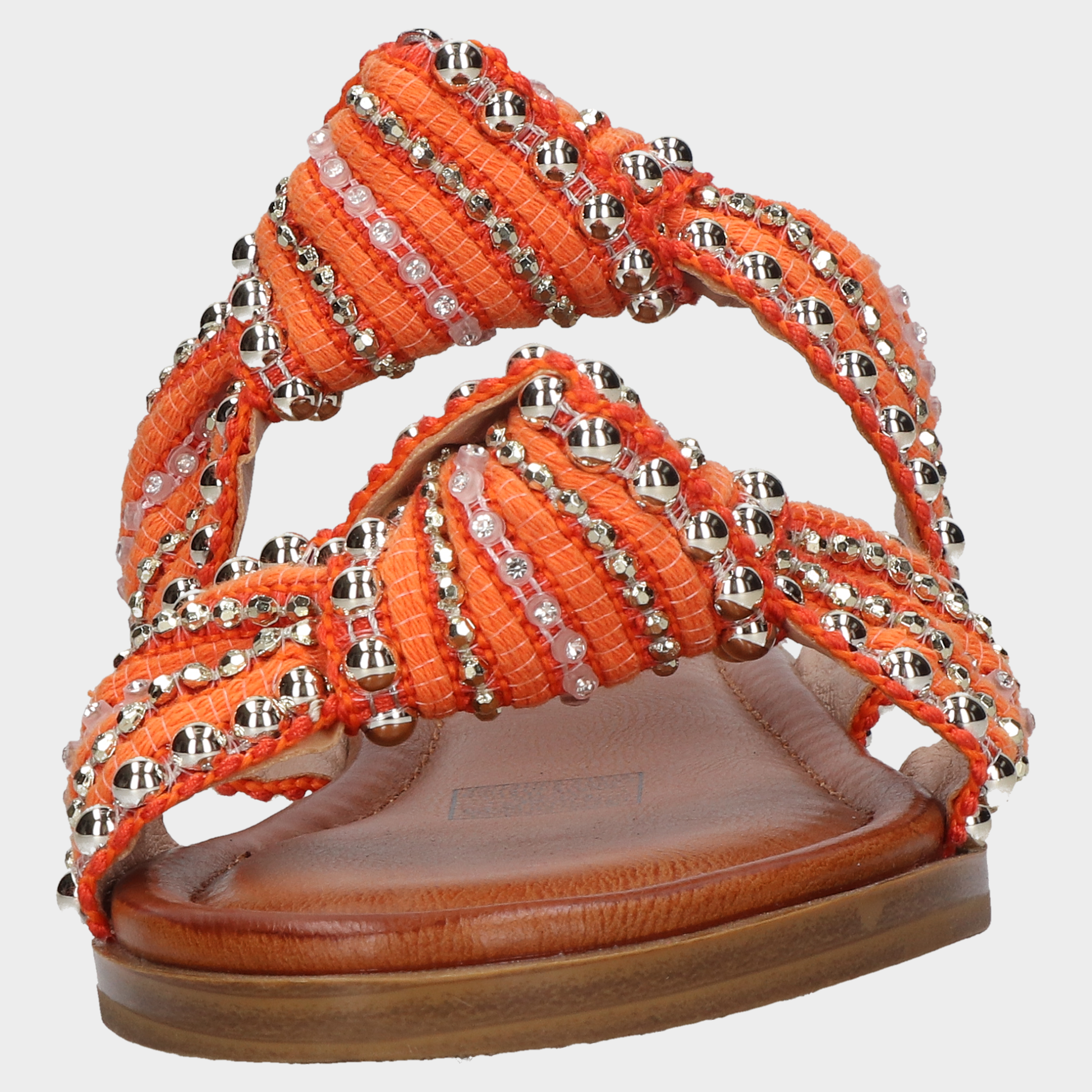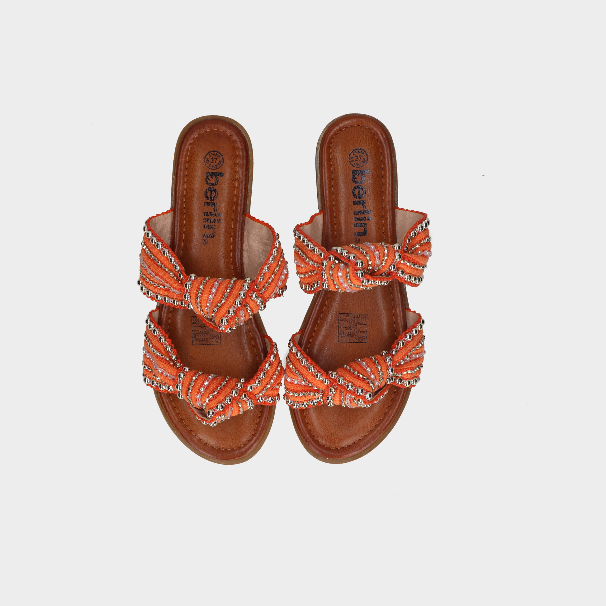 Sandalia De Piso Dama 50-B805303 Naranja ?? Sandalias Étnicas Con Bordado Naranja Y Tacón Bajo Diseño Artesanal Con Acento Festivo. Estas Sandalias Combinan Suela Café, Plantilla Acolchada Y Doble Tira Frontal Con Tejido Naranja Vibrante, Decorado Con Cuentas Plateadas Y Blancas En Patrón Geométrico. La Estructura Abierta Y El Contraste De Texturas Las Convierten En Pieza Ideal Para Atuendos Bohemios, Looks Resort O Conjuntos Casuales Con Estética Visual Rica Y Alegre. Un Calzado Que Transmite Color, Comodidad Y Estilo Artesanal. Descubre Más Modelos Que Celebran El Diseño Femenino Con Acabados Decorativos Y Presencia Visual Única.