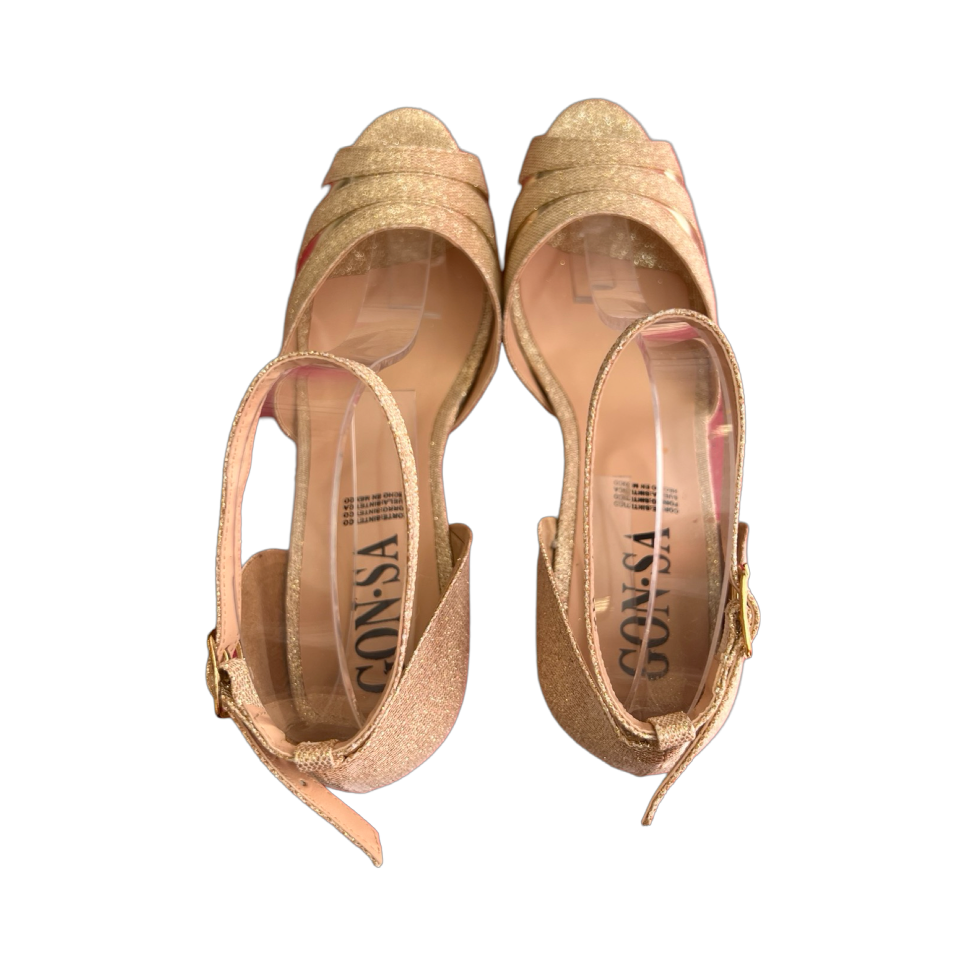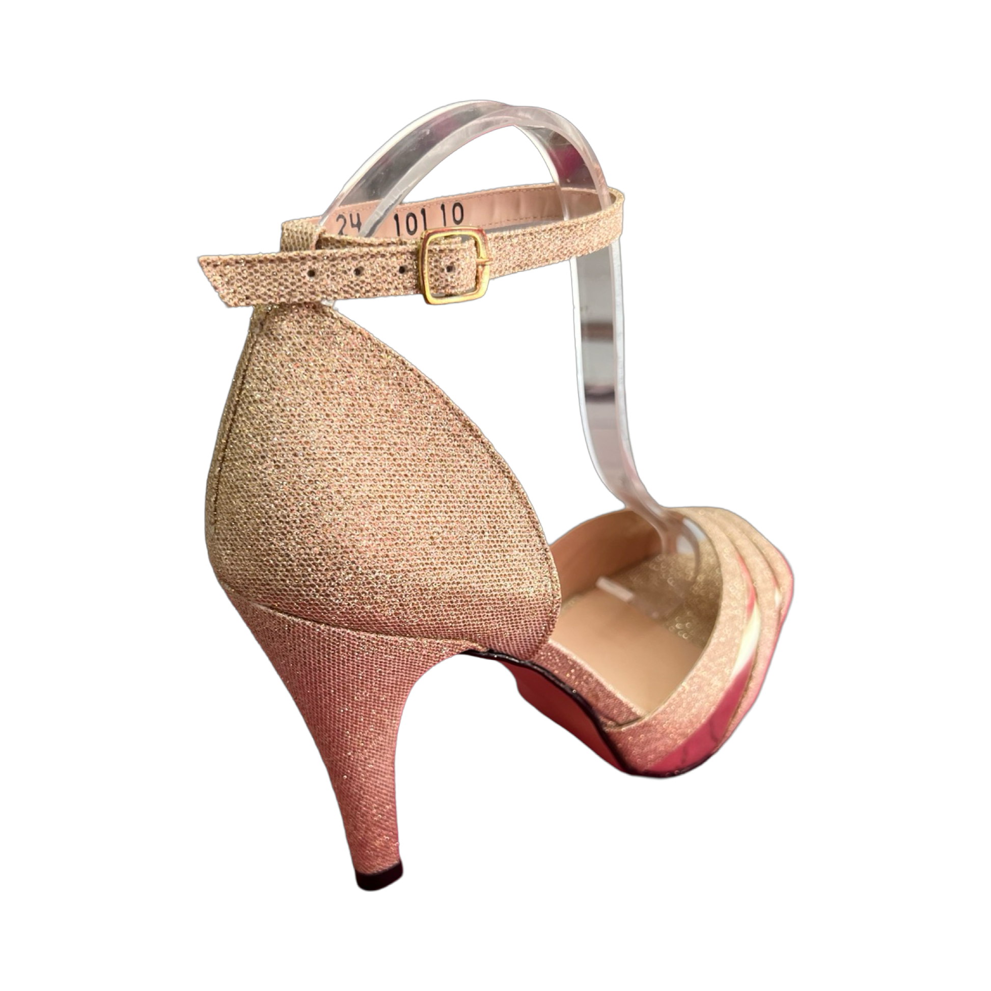 Sandalia de tacón Dama 65-N10110 Oro Tacones En Color Dorado, Con Hebilla Al Tobillo Para Lucir Hermosa En Un Evento Formal Marca Gonsa
