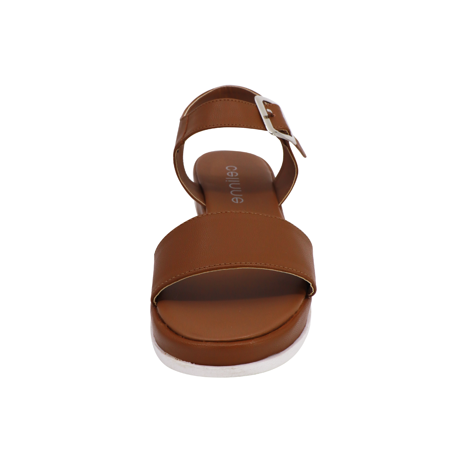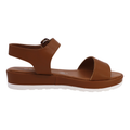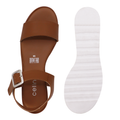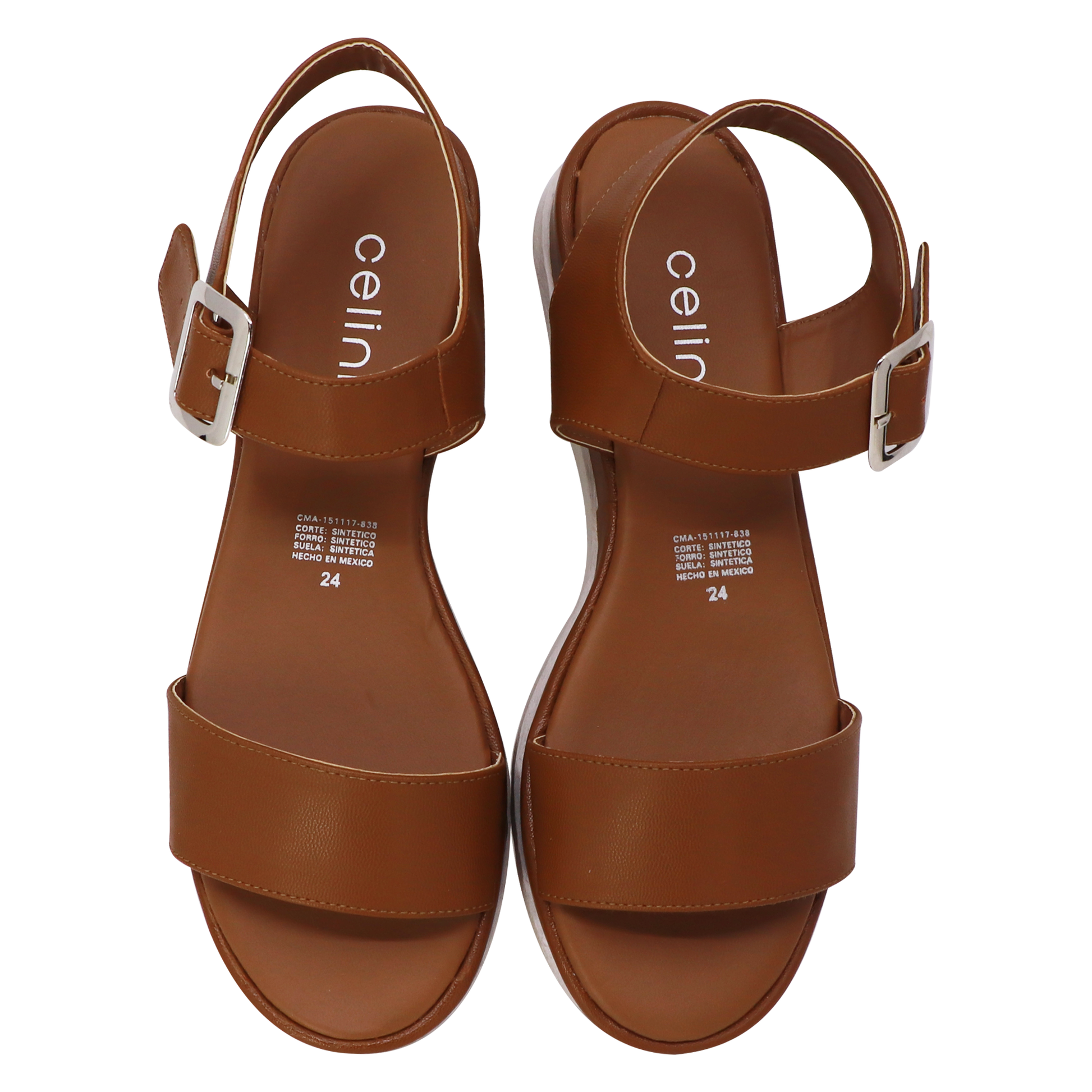 Sandalia Piso Dama 116-4902 Camel Sandalias En Color Café, Con Tira Ancha Al Frente, Ajuste En Hebilla Al Tobillo. Ideal Para Un Look Casual. Marca Celinne.