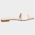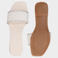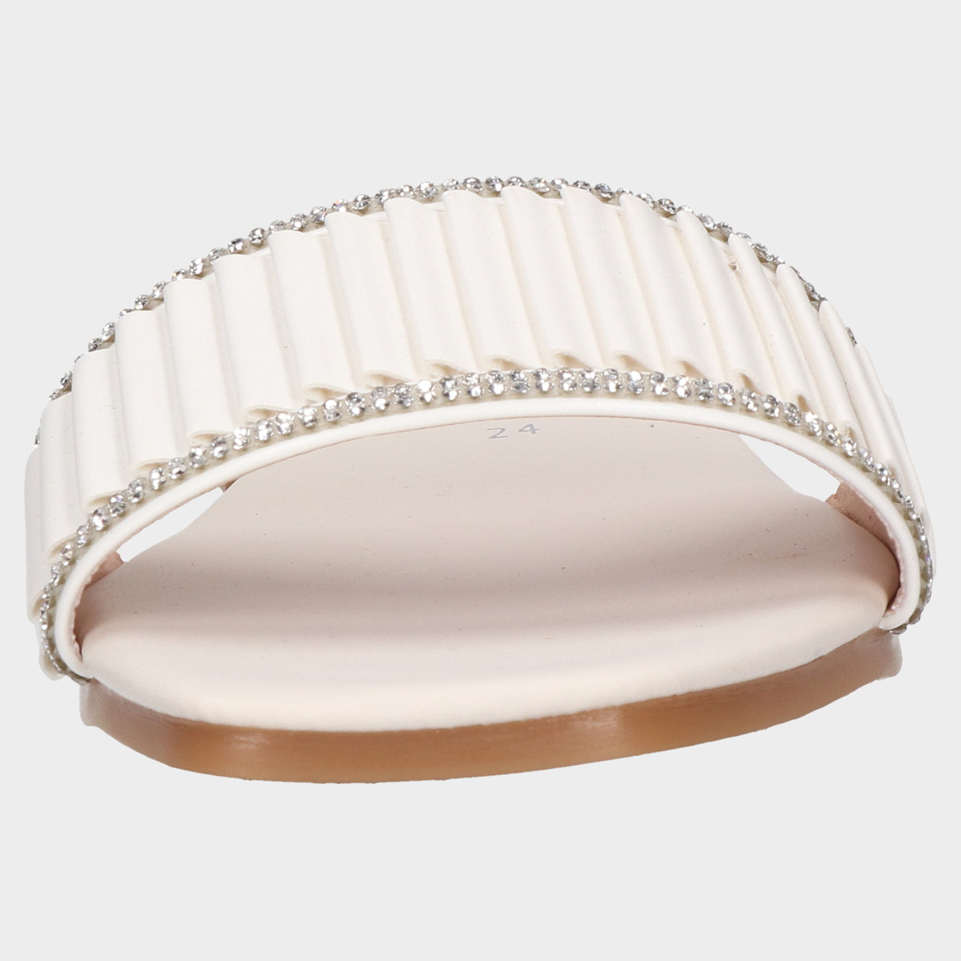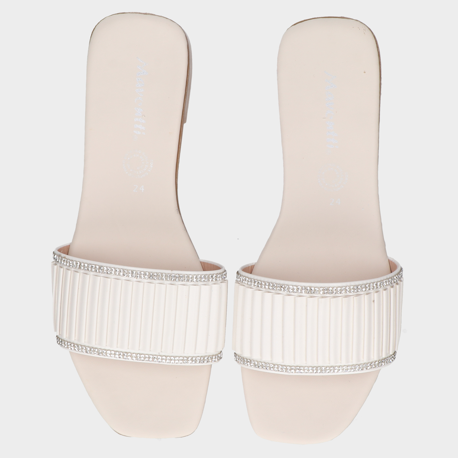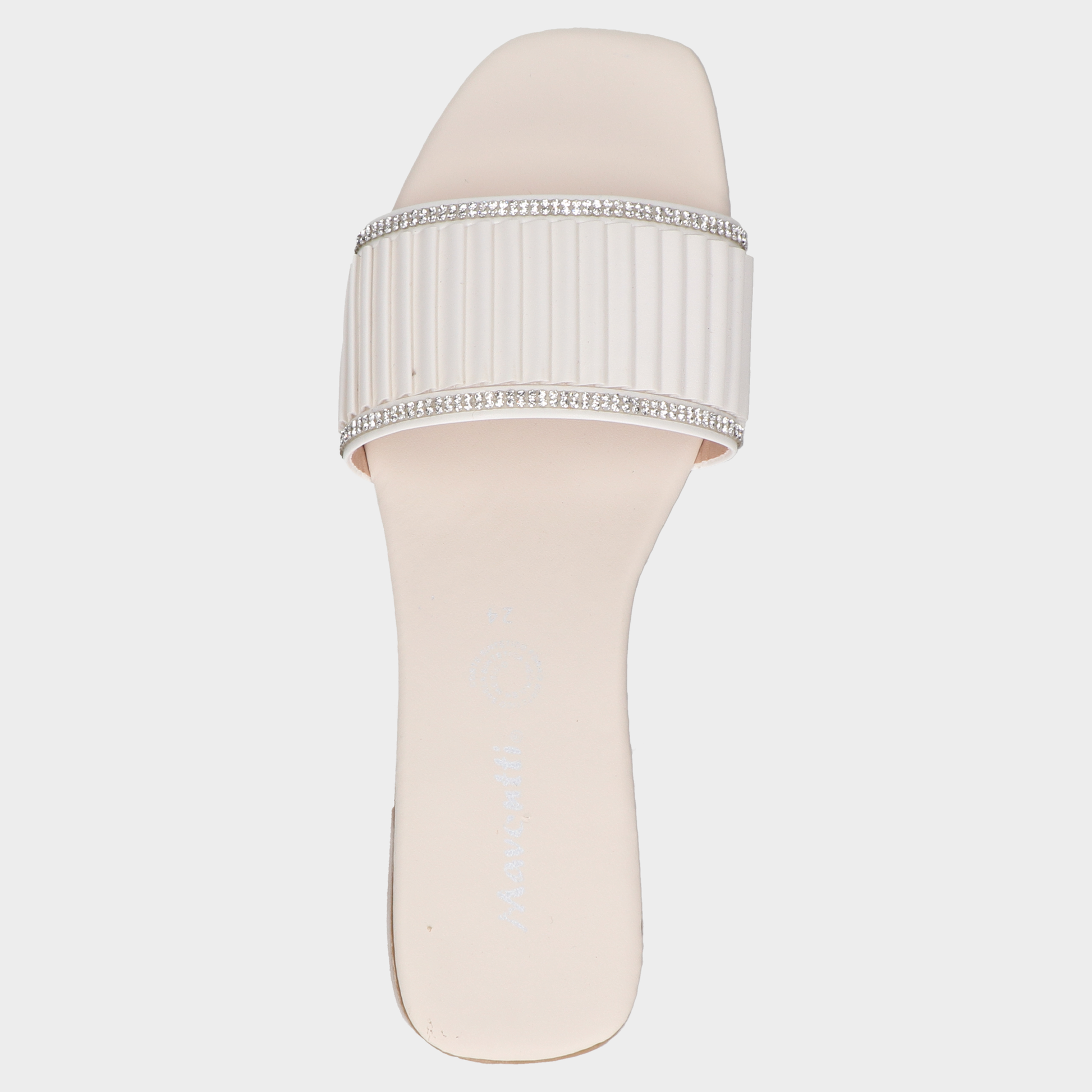 Sandalia Piso Dama 30-J520 Blanco ??? Sandalias Planas Jacquemus Con Tira Plisada Y Brillos Diseño Minimalista Con Acento Glam. Estas Sandalias Planas Combinan Suela Café Clara, Tira Superior Color Crema Con Pliegues Verticales Y Decoración Brillante Tipo Cristal Para Un Look Fresco Y Sofisticado. El Diseño Abierto Y La Plantilla Con Logo Jacquemus Las Convierten En Pieza Versátil Para Atuendos Casuales, Looks Resort O Eventos Diurnos Con Elegancia Relajada. Un Calzado Que Transmite Estilo, Comodidad Y Distinción. Descubre Más Modelos Que Celebran El Diseño Contemporáneo Con Acabados Premium Y Estética Visual Bien Definida.