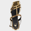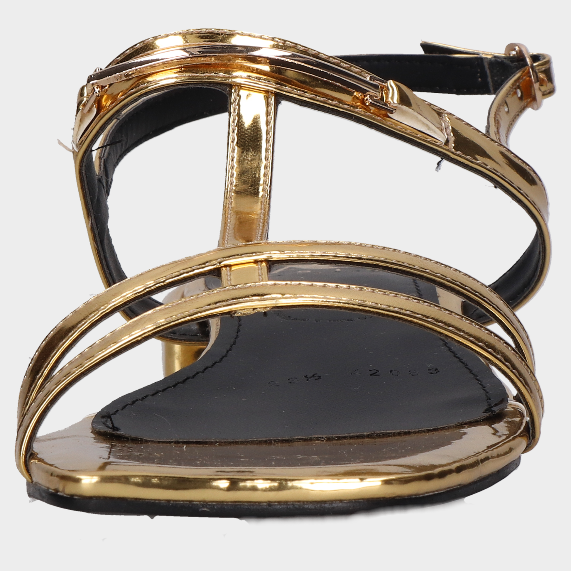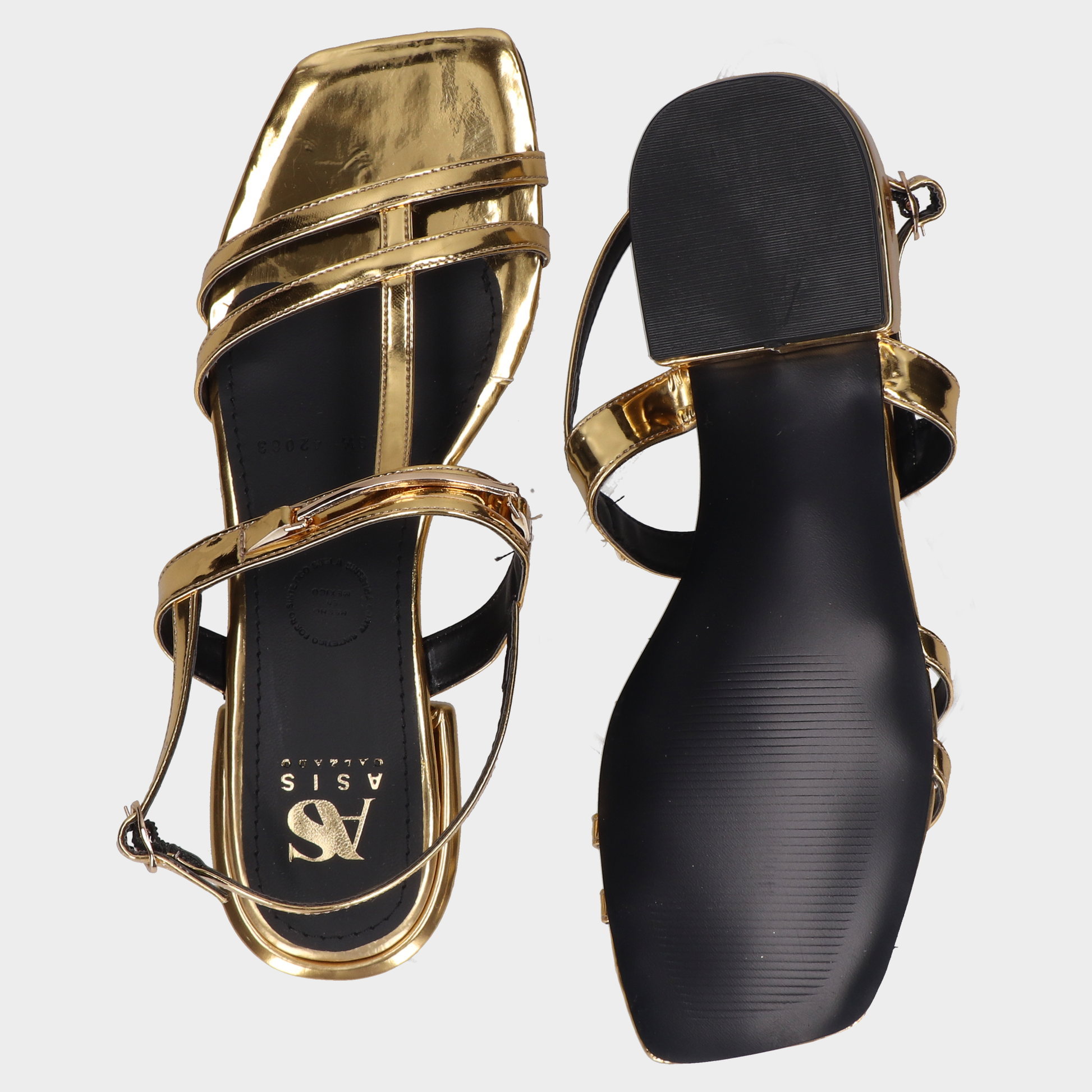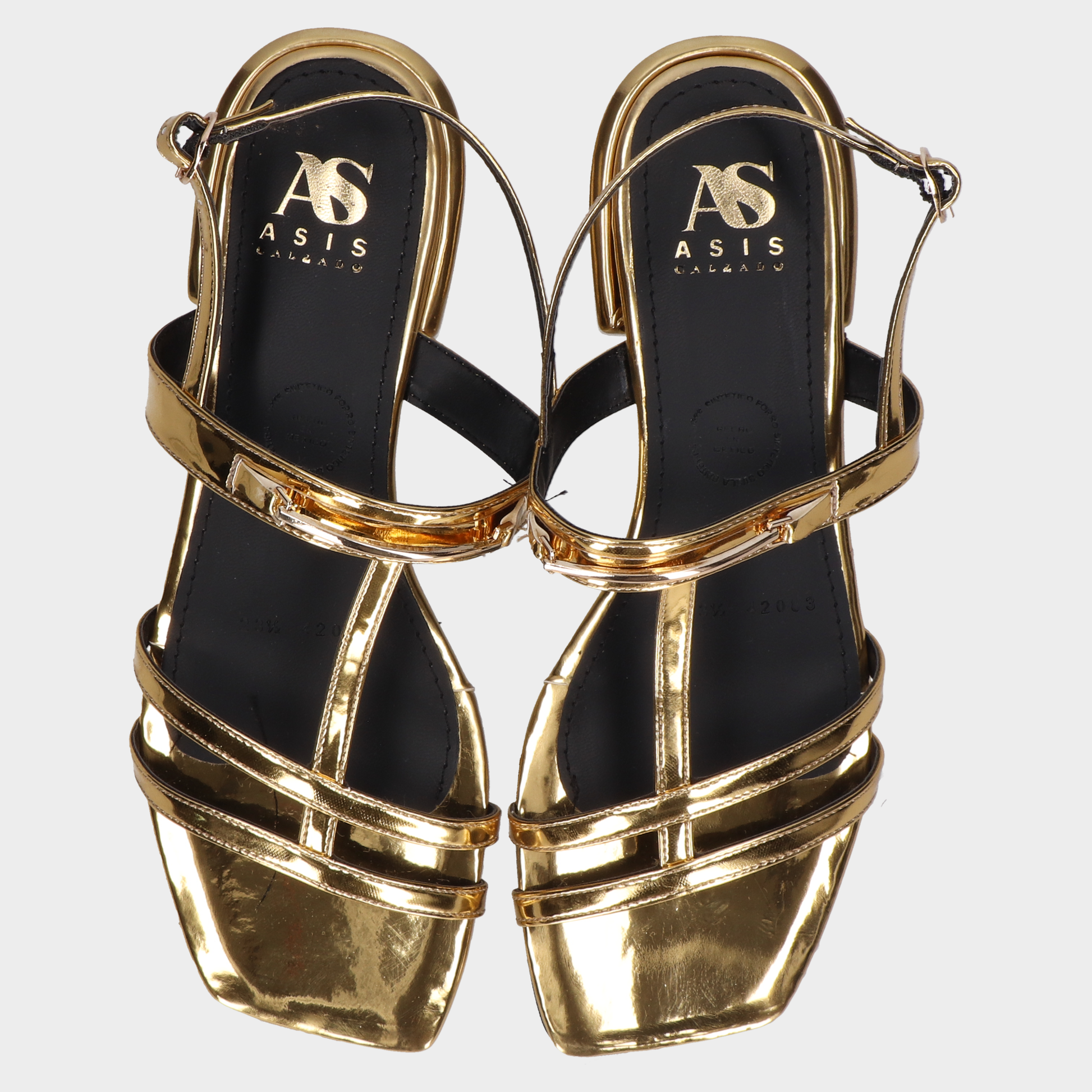 Sandalia Tacon Dama 09-Rl 42083 Oro Sandalias Doradas Con Tacón Bajo Y Tiras Finas Elegancia Que Brilla. Estas Sandalias Doradas Con Acabado Metálico Y Diseño De Tiras Cruzadas Son El Complemento Ideal Para Looks Festivos O Eventos Especiales. Su Tacón Bajo Tipo Bloque Ofrece Estabilidad Y Comodidad, Mientras Que La Hebilla Ajustable En El Tobillo Asegura Un Ajuste Perfecto. El Contraste Con La Plantilla Negra Aporta Sofisticación Y Estilo Moderno. Diseñadas Para Destacar Sin Esfuerzo. Descubre Más Modelos Que Transforman Tu Estilo Desde El Primer Paso.