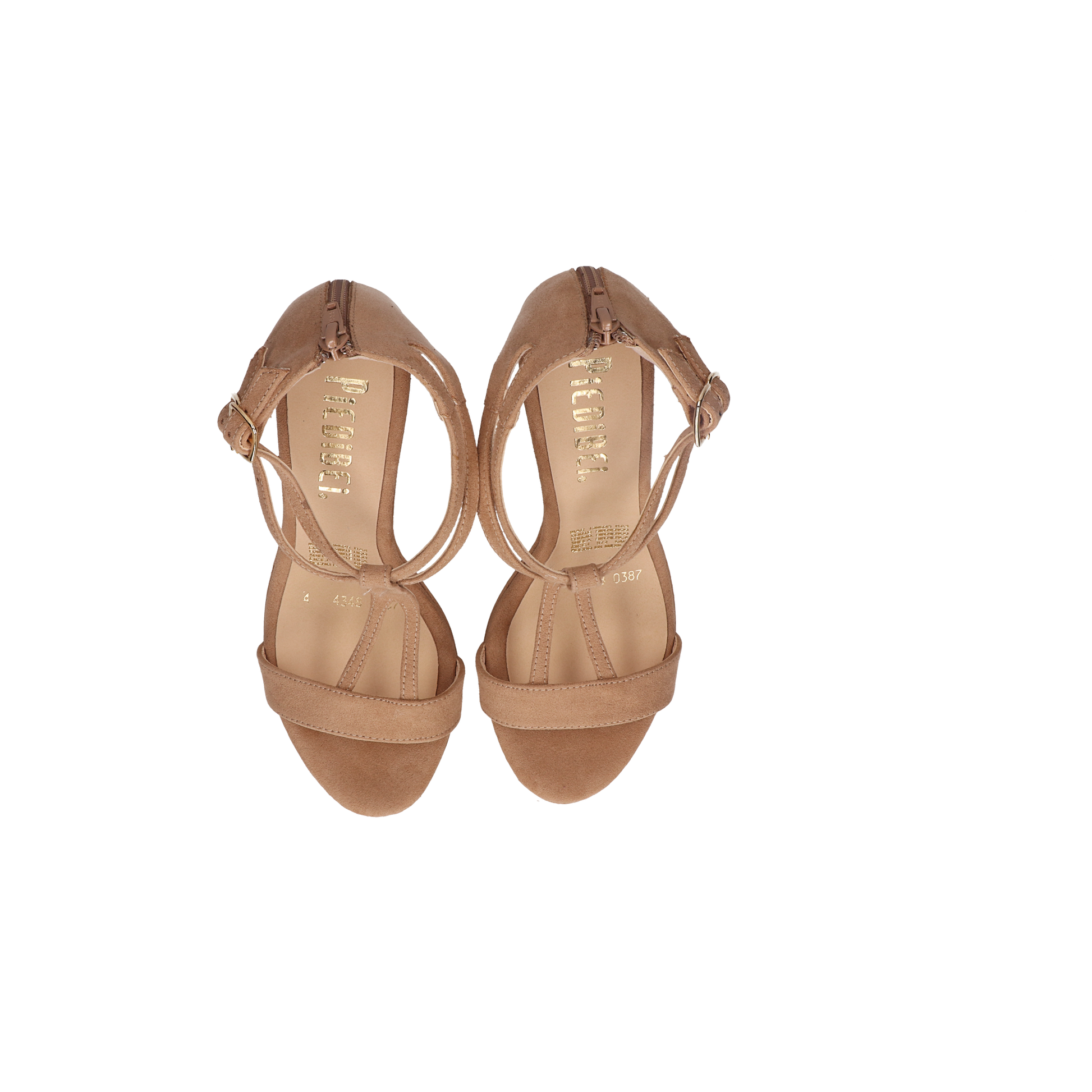 Sandalia Tacon Dama 111-4348Durcam Camel Hermosos Tacones En Color Beige Con Doble Hebilla Al Tobillo Ideal Para Un Evento Formal Marca Piedibei