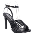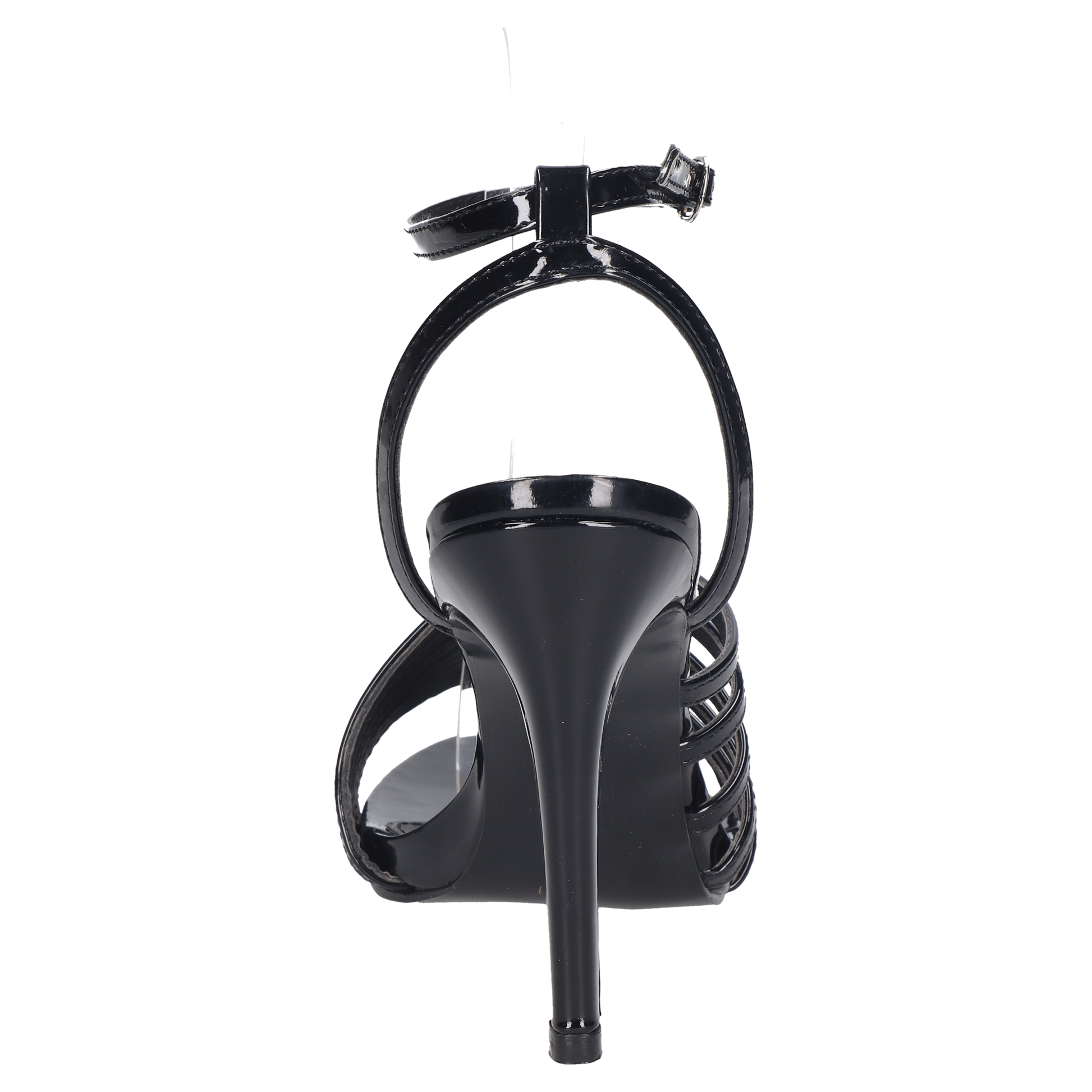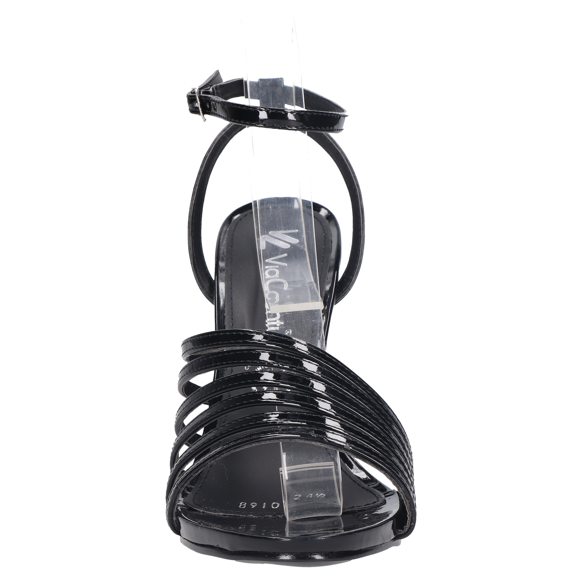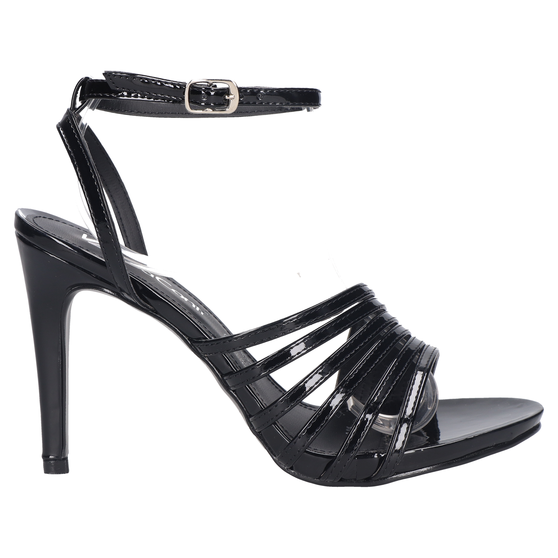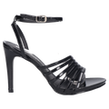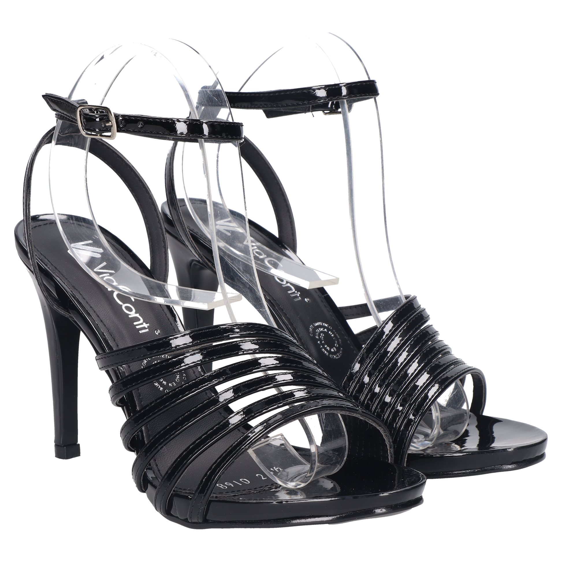 Sandalia Tacon Dama 117- 8910 Ch.Negro Tacones Altos En Color Charol Negro, Cinta Con Hebilla Al Tobillo Para Un Mejor Ajuste, Tacón Delgado Diseño En Tiras Al Frente Para Lucir Tus Lindos Pies Ideal Para Un Evento Formal Marca Via Conti