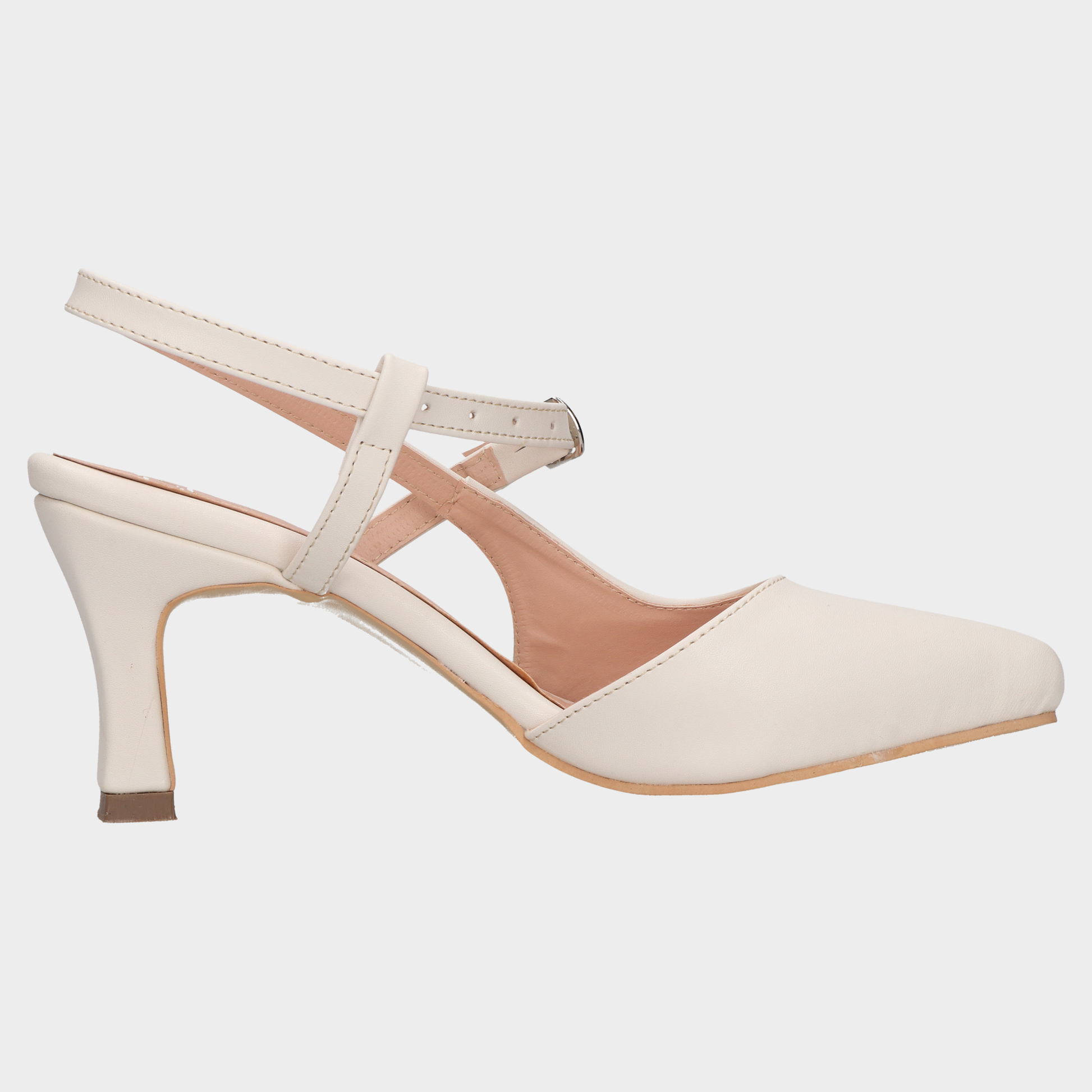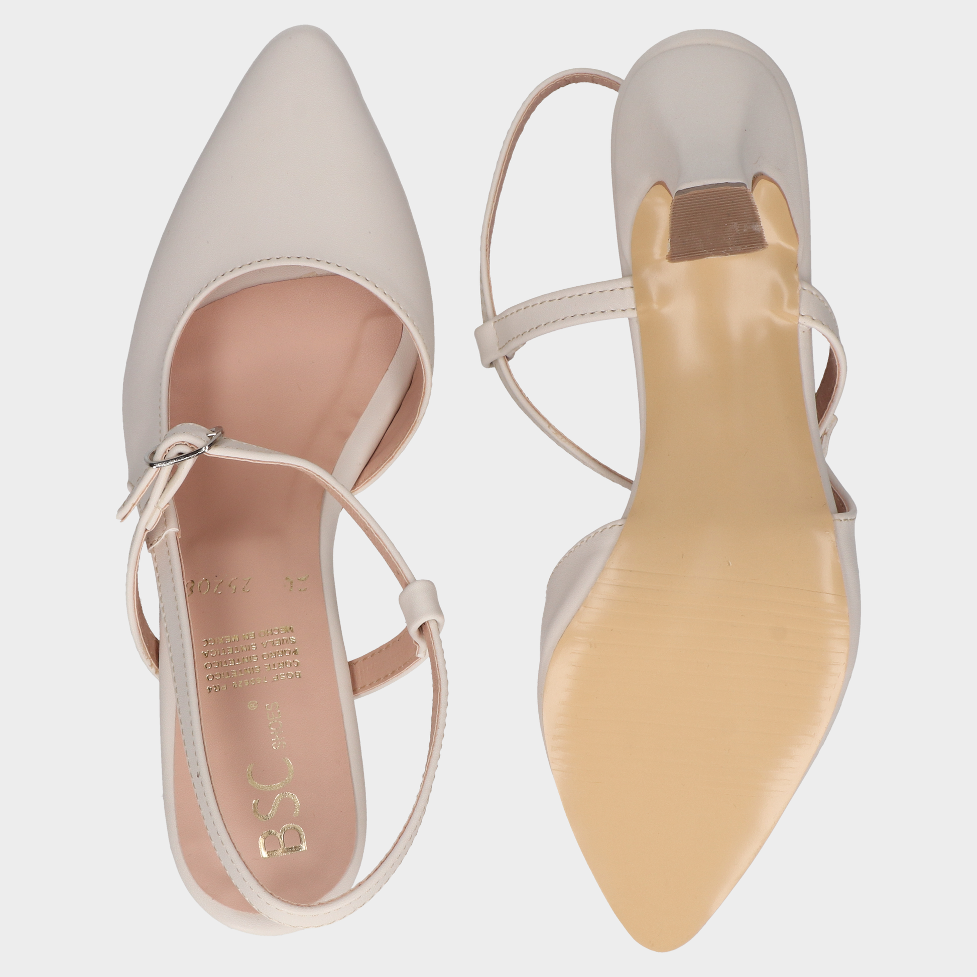 Sandalia Tacon Dama 118-Bsc-251208 Late ?? Tacones Beige Con Punta Fina Y Tira Slingback Diseño Clásico Con Silueta Refinada. Estos Tacones En Tono Beige Claro Combinan Punta Cerrada, Talón Abierto Con Tira Slingback Ajustable Y Tacón Medio Ligeramente Acampanado Para Mayor Estabilidad. El Interior En Tono Rosado Aporta Contraste Suave, Mientras Que El Acabado Neutro Los Convierte En Pieza Versátil Para Atuendos Formales, Looks De Oficina O Eventos Diurnos Con Elegancia Discreta. Un Calzado Que Transmite Sofisticación, Comodidad Y Estilo Atemporal. Descubre Más Modelos Que Celebran El Diseño Femenino Con Líneas Limpias Y Acabados Premium.