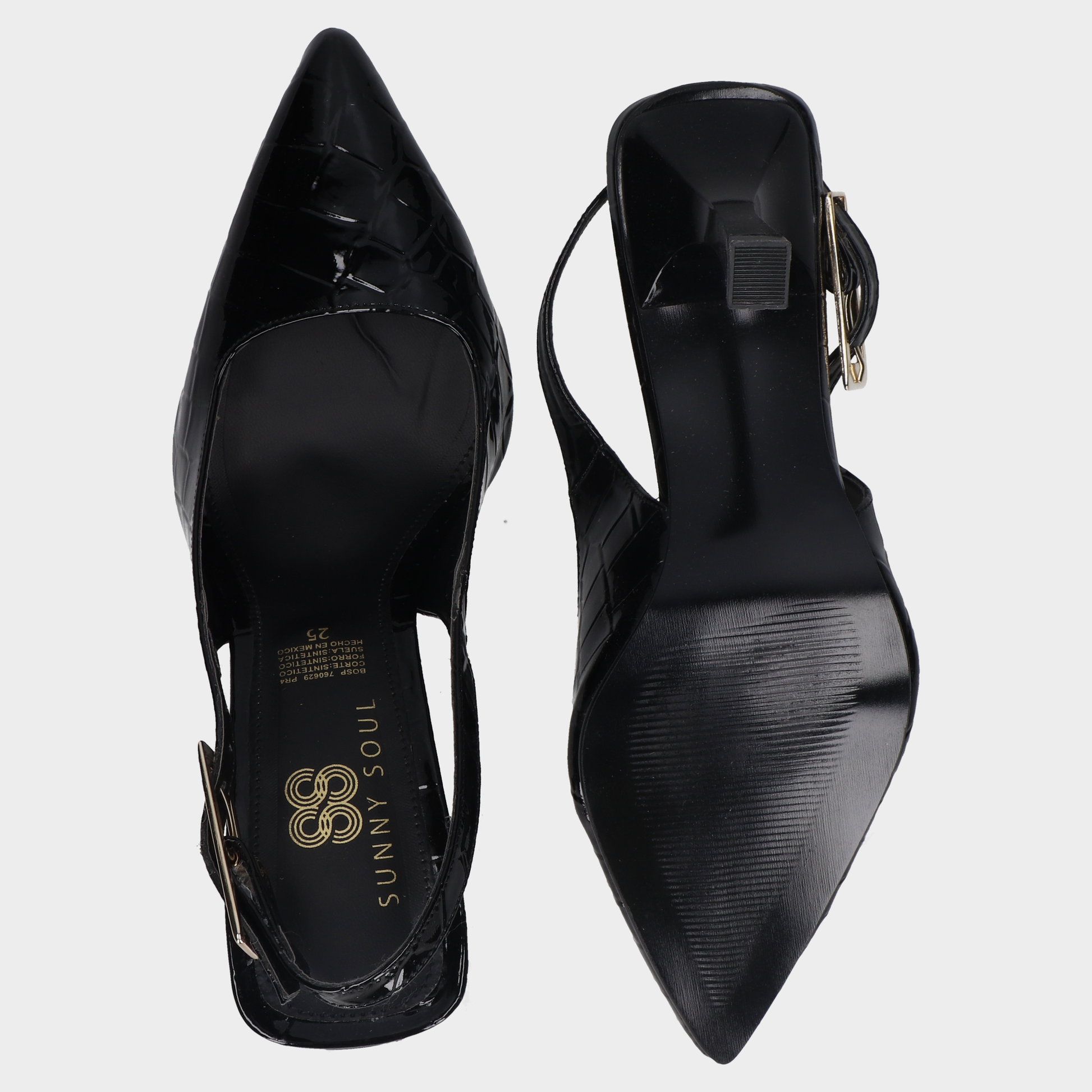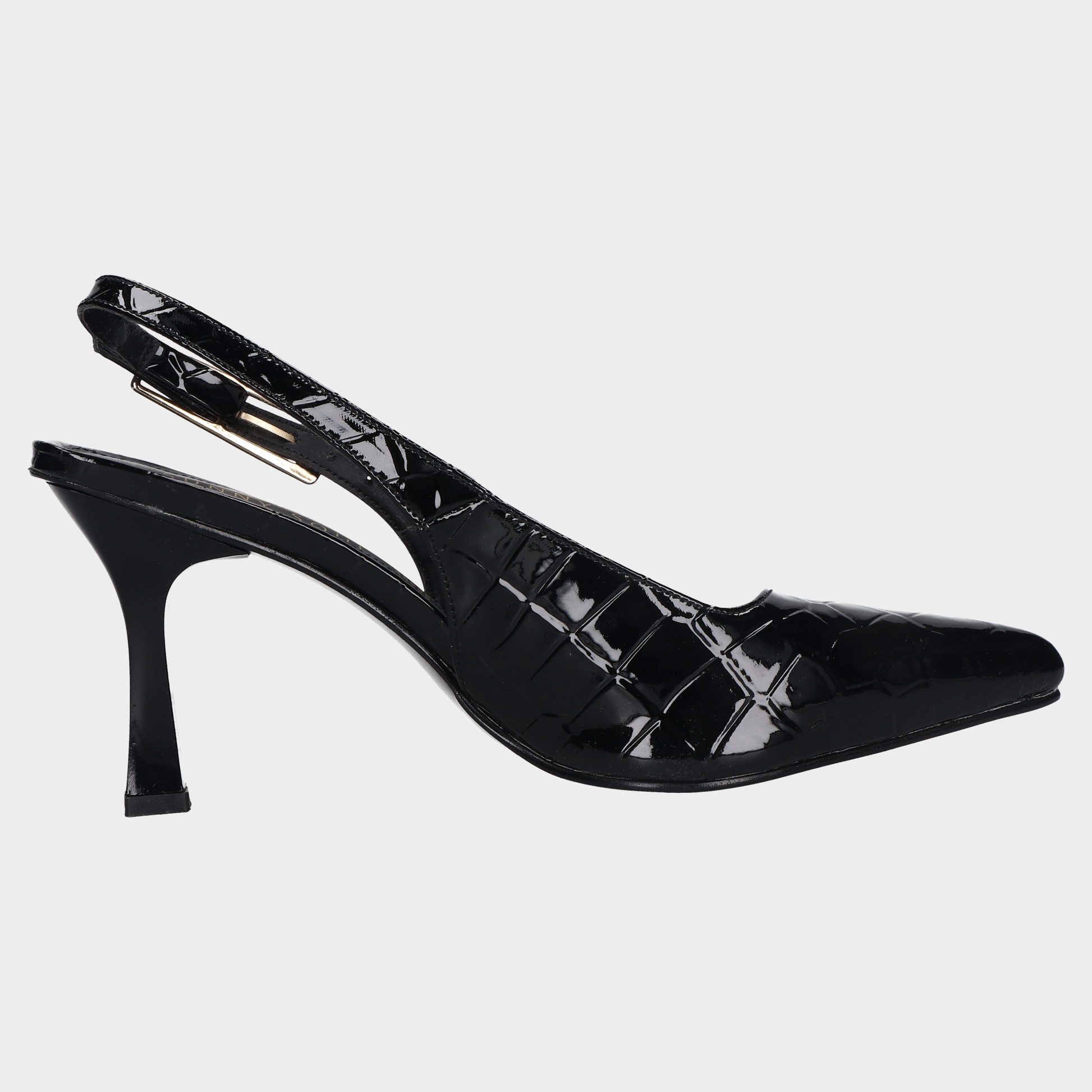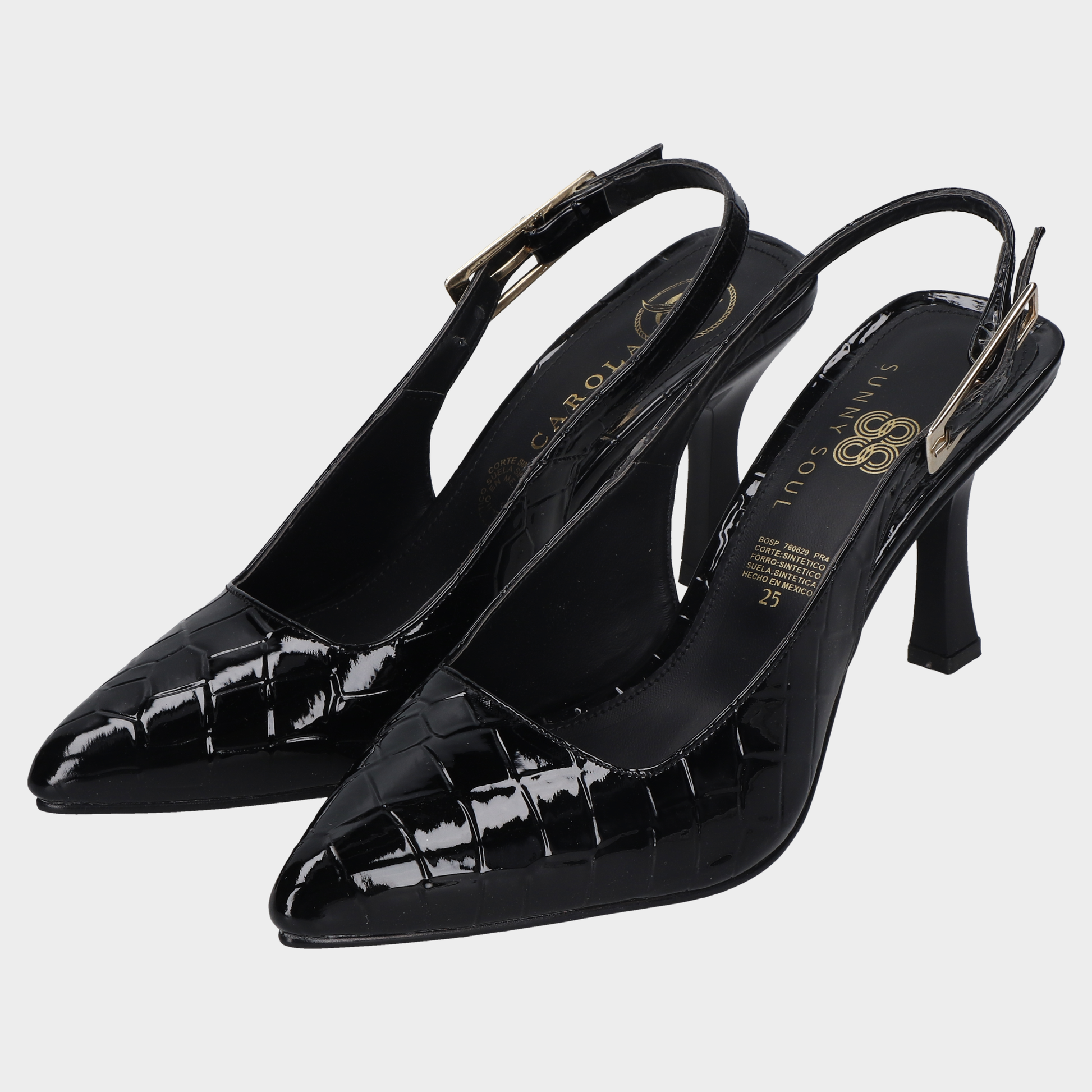 Sandalia Tacon Dama 118-C-760 Conegro ?? Slingbacks Negros Con Textura Cocodrilo Y Tacón Medio Diseño Clásico Con Acabado Exótico. Estos Slingbacks Negros Combinan Punta Fina, Textura Tipo Cocodrilo Brillante Y Tacón Medio Ligeramente Acampanado Para Mayor Estabilidad. El Interior Claro Y Las Marcas Visibles Refuerzan Su Carácter Sofisticado, Ideales Para Atuendos Formales, Looks Ejecutivos O Eventos Nocturnos Con Presencia Visual. Un Calzado Que Transmite Elegancia, Seguridad Y Estilo Atemporal. Descubre Más Modelos Que Celebran El Diseño Femenino Con Acabados Premium Y Siluetas Refinadas.