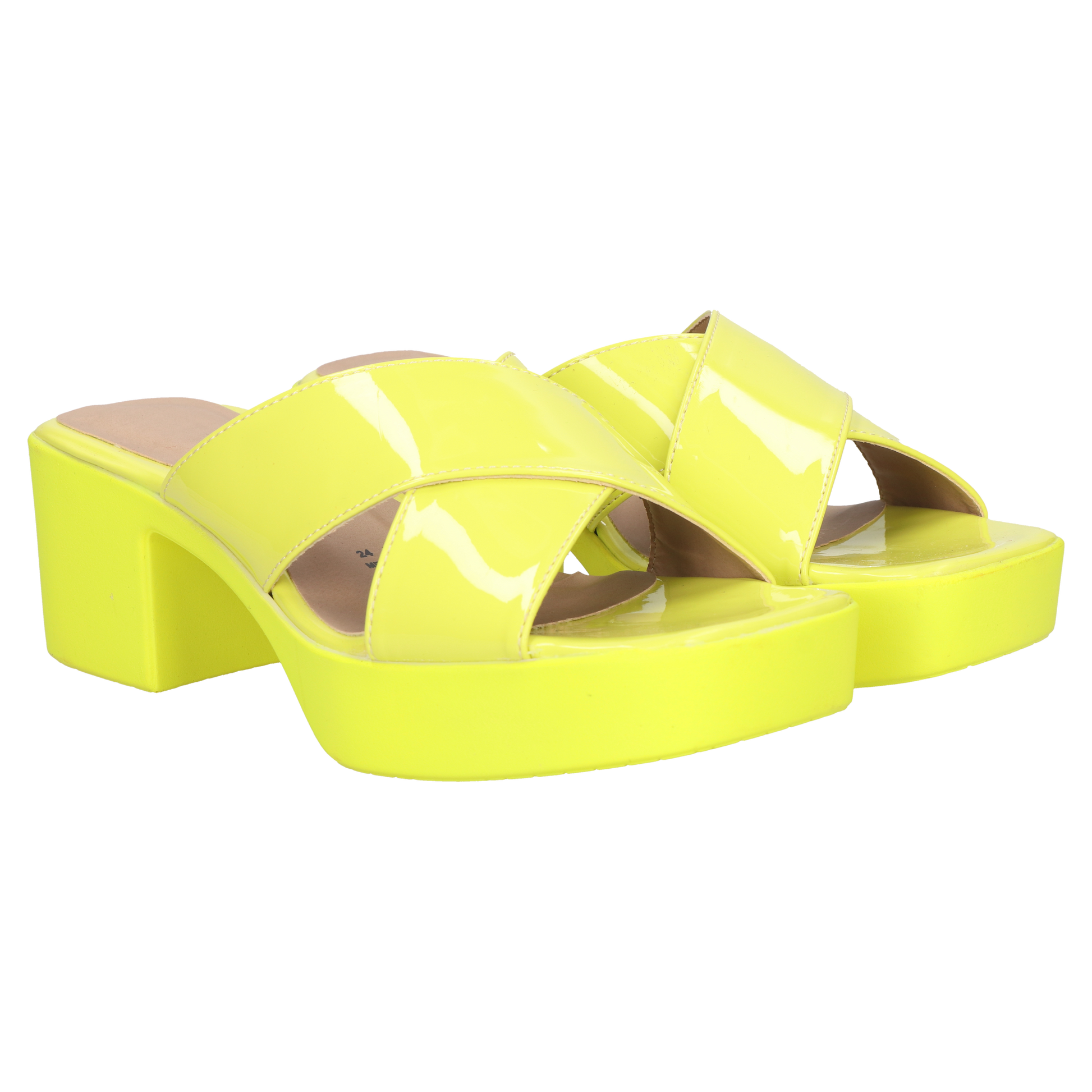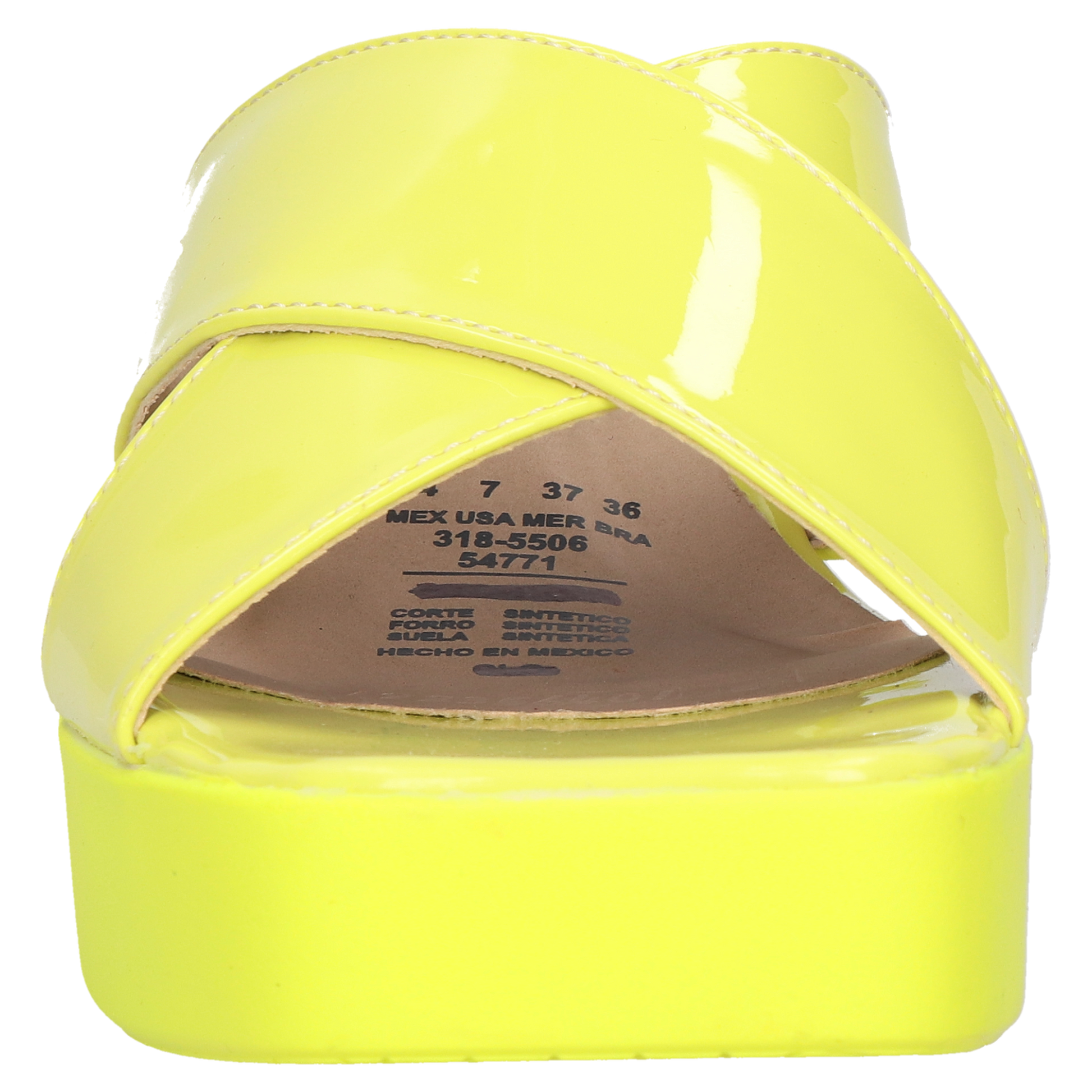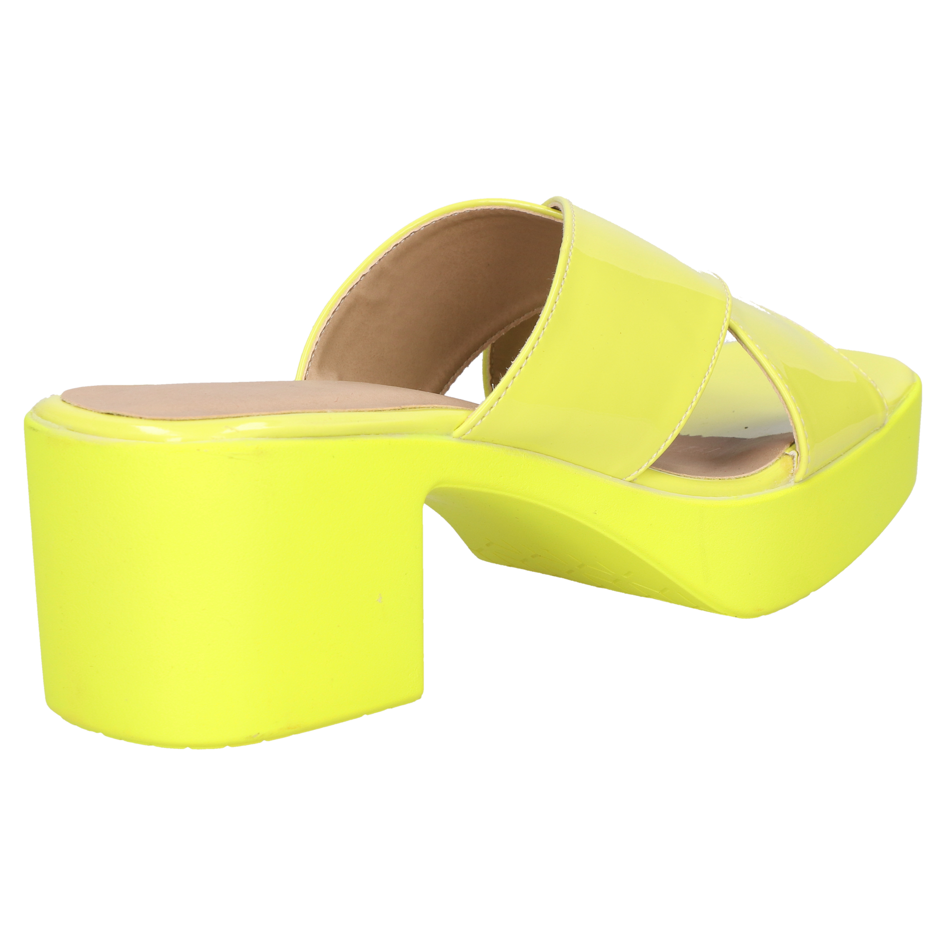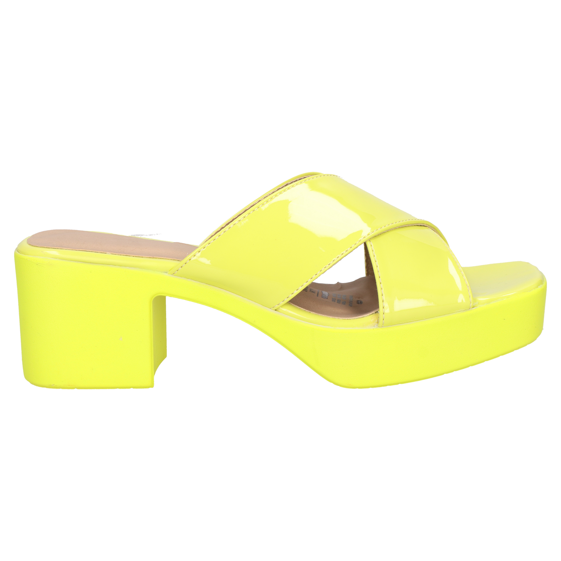 Sandalia Tacon Dama 23-54771 Amarillo Si Te Gustan Las Plataformas Y Los Suecos, Estos Son Para Ti Tacones En Color Amarillo, Con Diseño Al Frente En Tiras Cruzadas Anchas, Sin Hebilla Ideal Para Un Super Look Locochón Y Divertido Marca Only Sandals