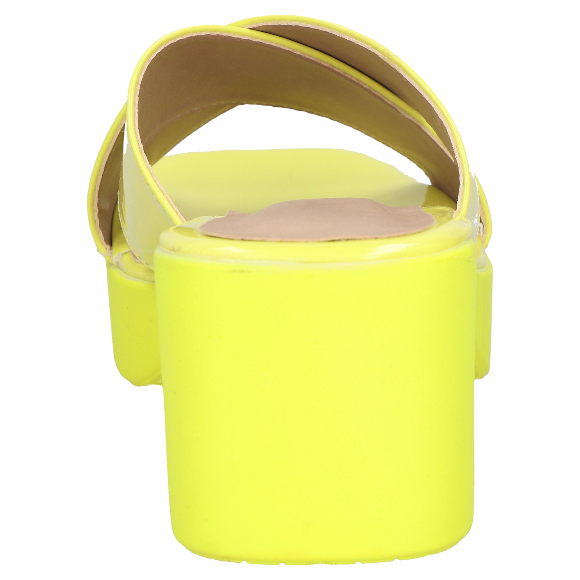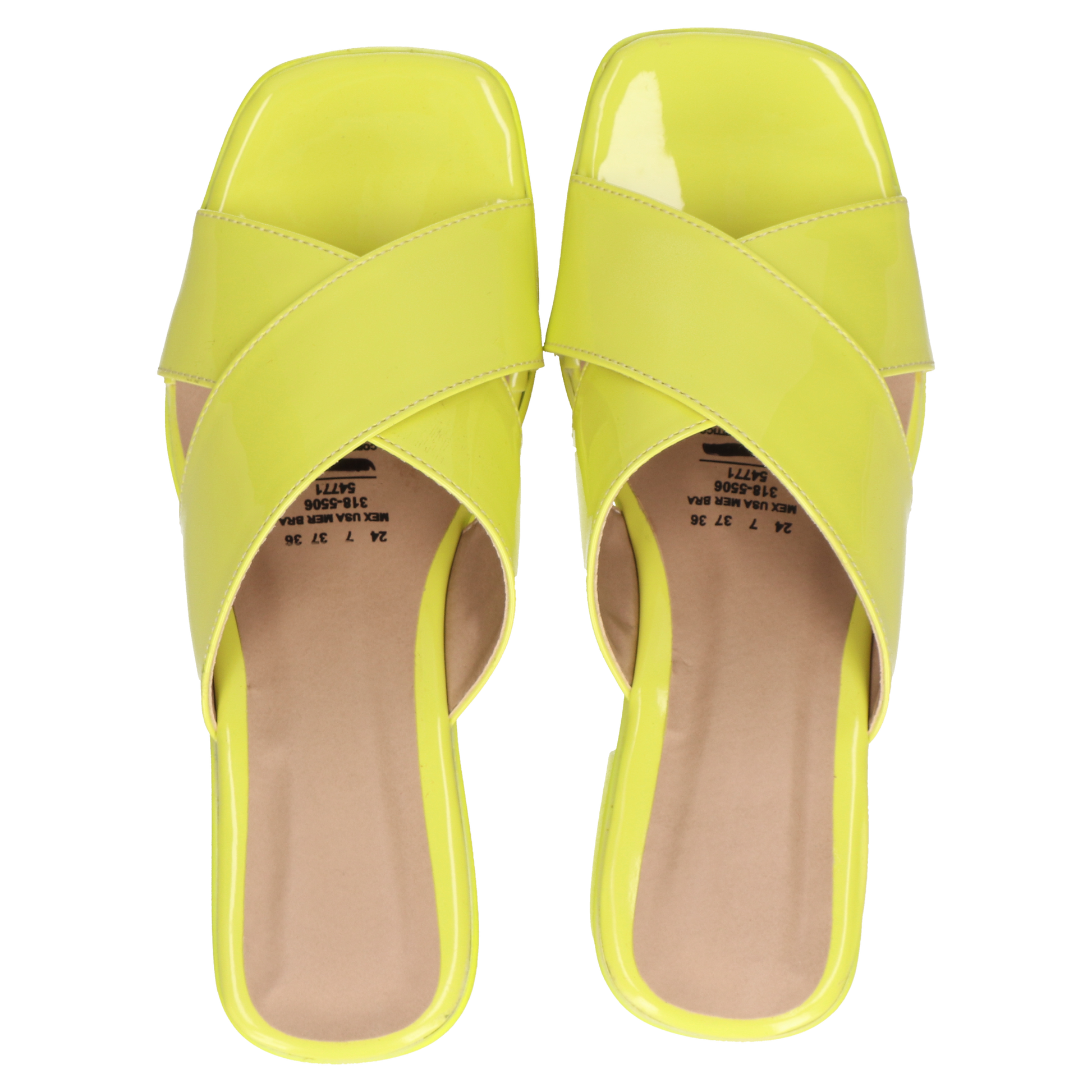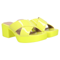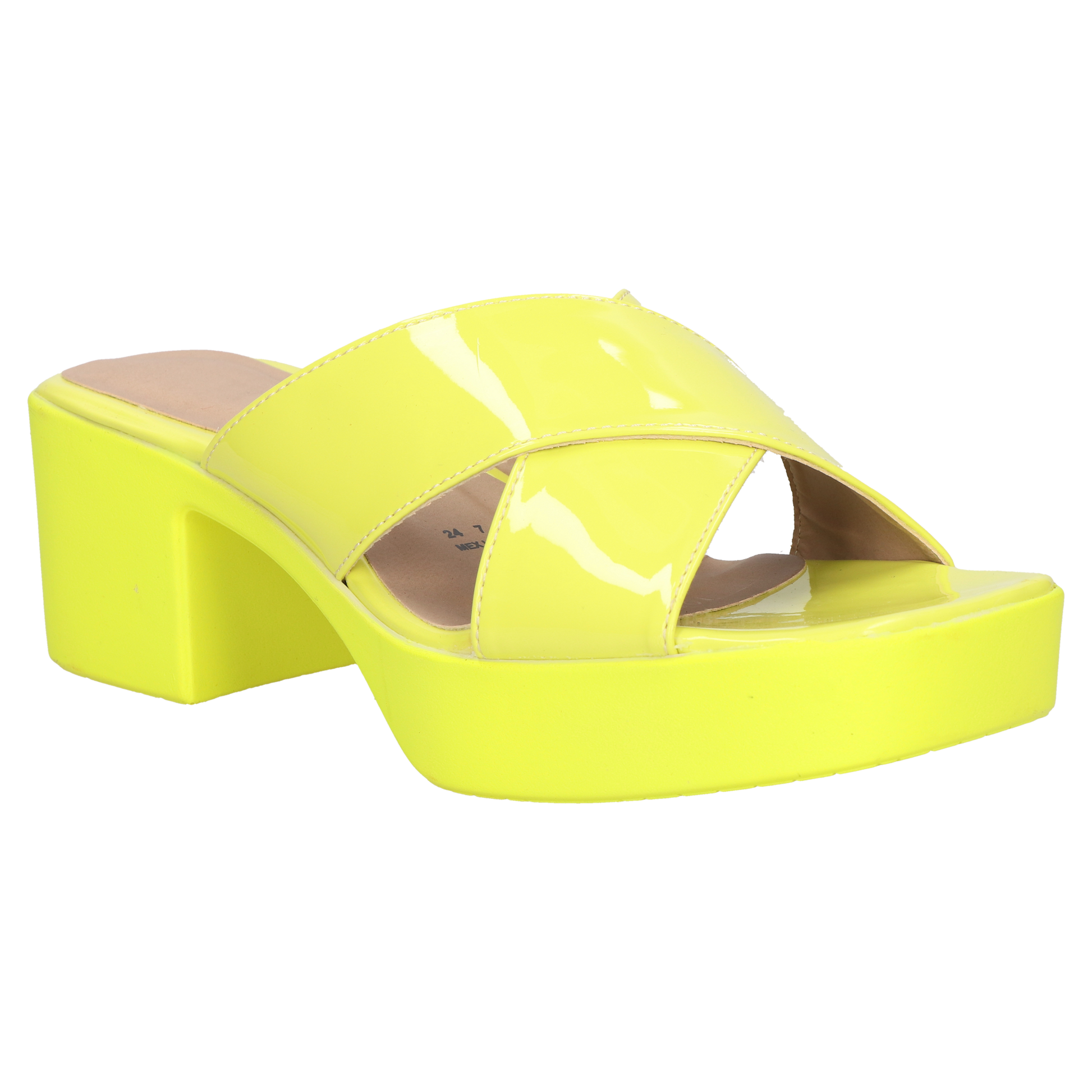 Sandalia Tacon Dama 23-54771 Amarillo Si Te Gustan Las Plataformas Y Los Suecos, Estos Son Para Ti Tacones En Color Amarillo, Con Diseño Al Frente En Tiras Cruzadas Anchas, Sin Hebilla Ideal Para Un Super Look Locochón Y Divertido Marca Only Sandals