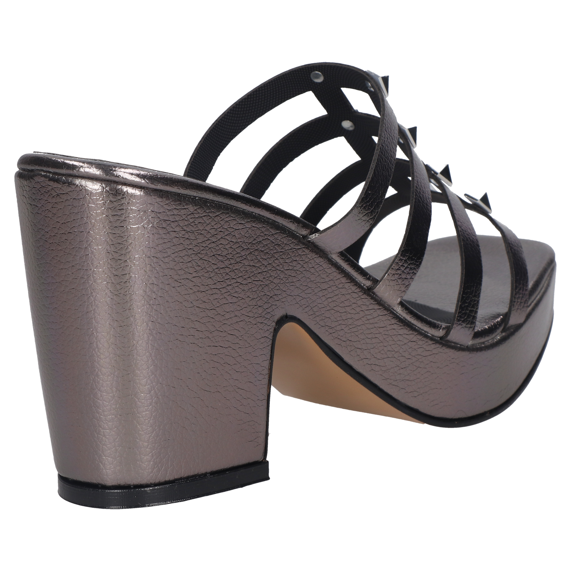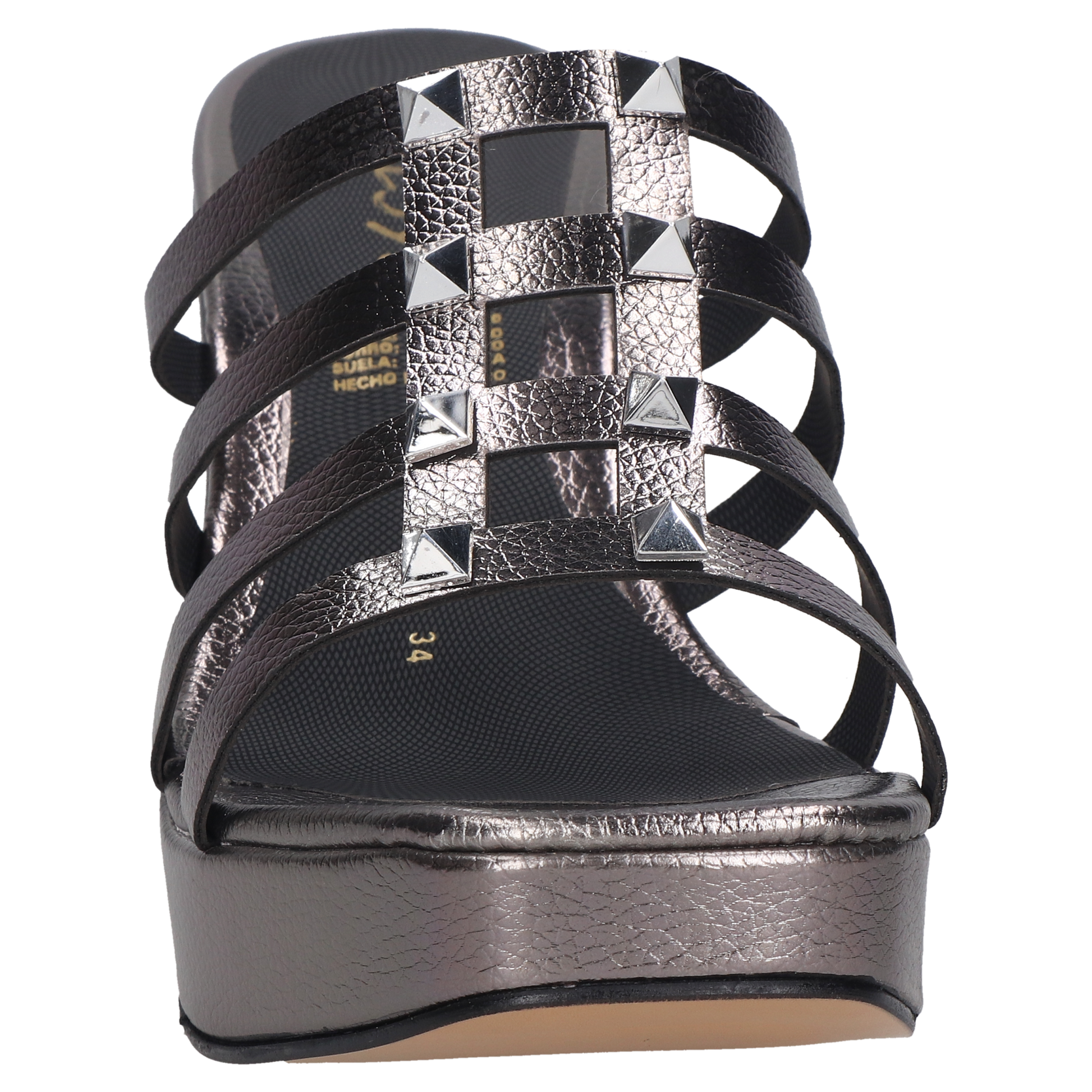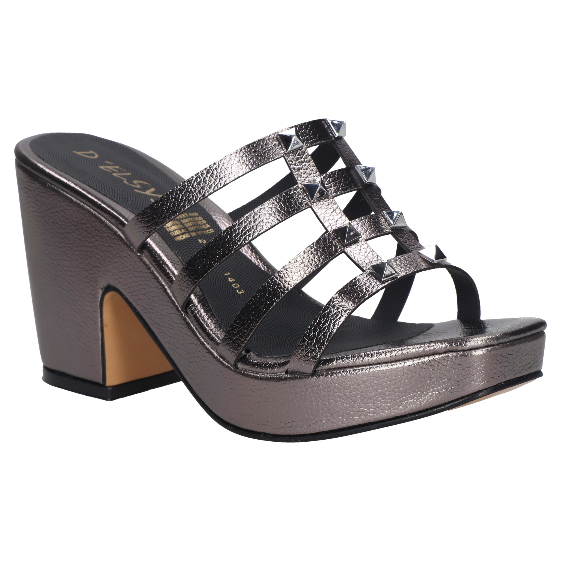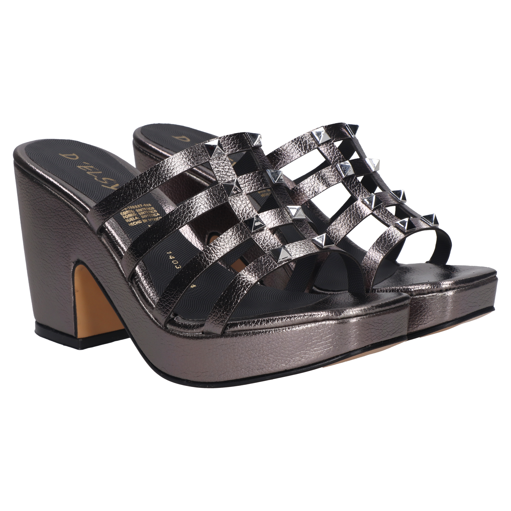 Sandalia Tacon Dama 58-1403 Inox Hermosos Suecos En Color Metálico, Con Tacón Y Plataforma Ancha, Diseño En Tiras Con Adornos En Metal Ideal Para Un Evento Casual Marca Delsys