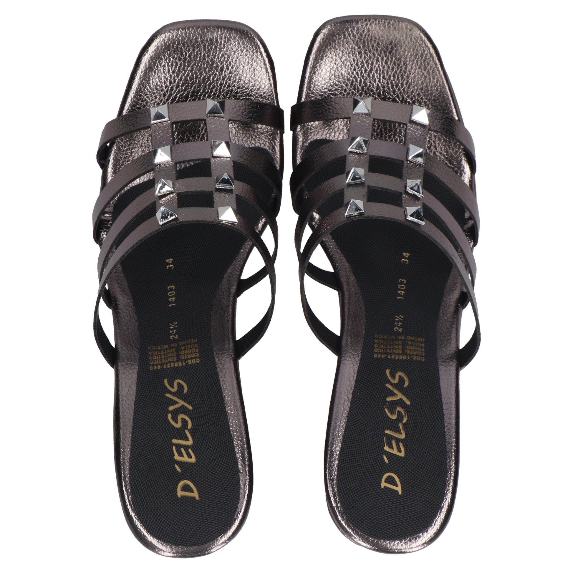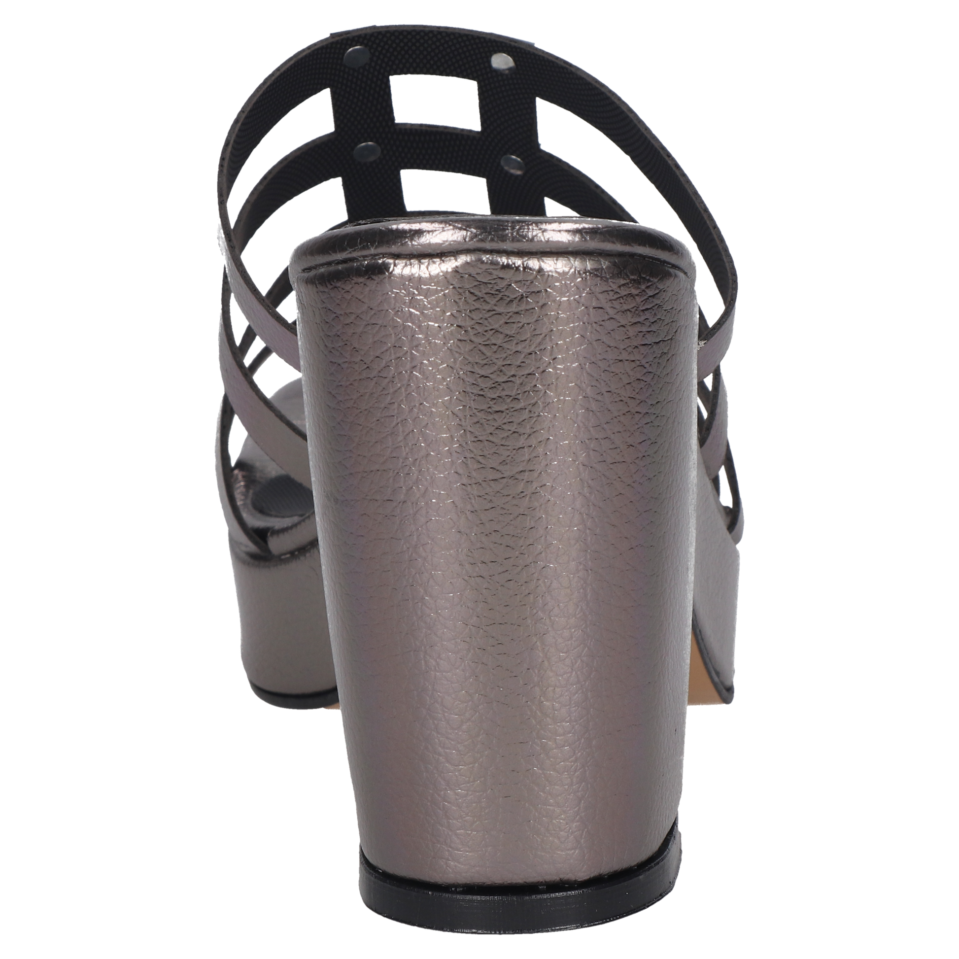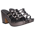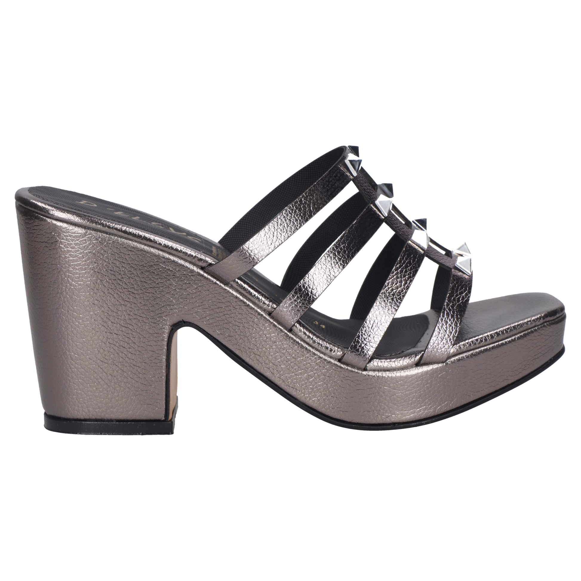 Sandalia Tacon Dama 58-1403 Inox Hermosos Suecos En Color Metálico, Con Tacón Y Plataforma Ancha, Diseño En Tiras Con Adornos En Metal Ideal Para Un Evento Casual Marca Delsys